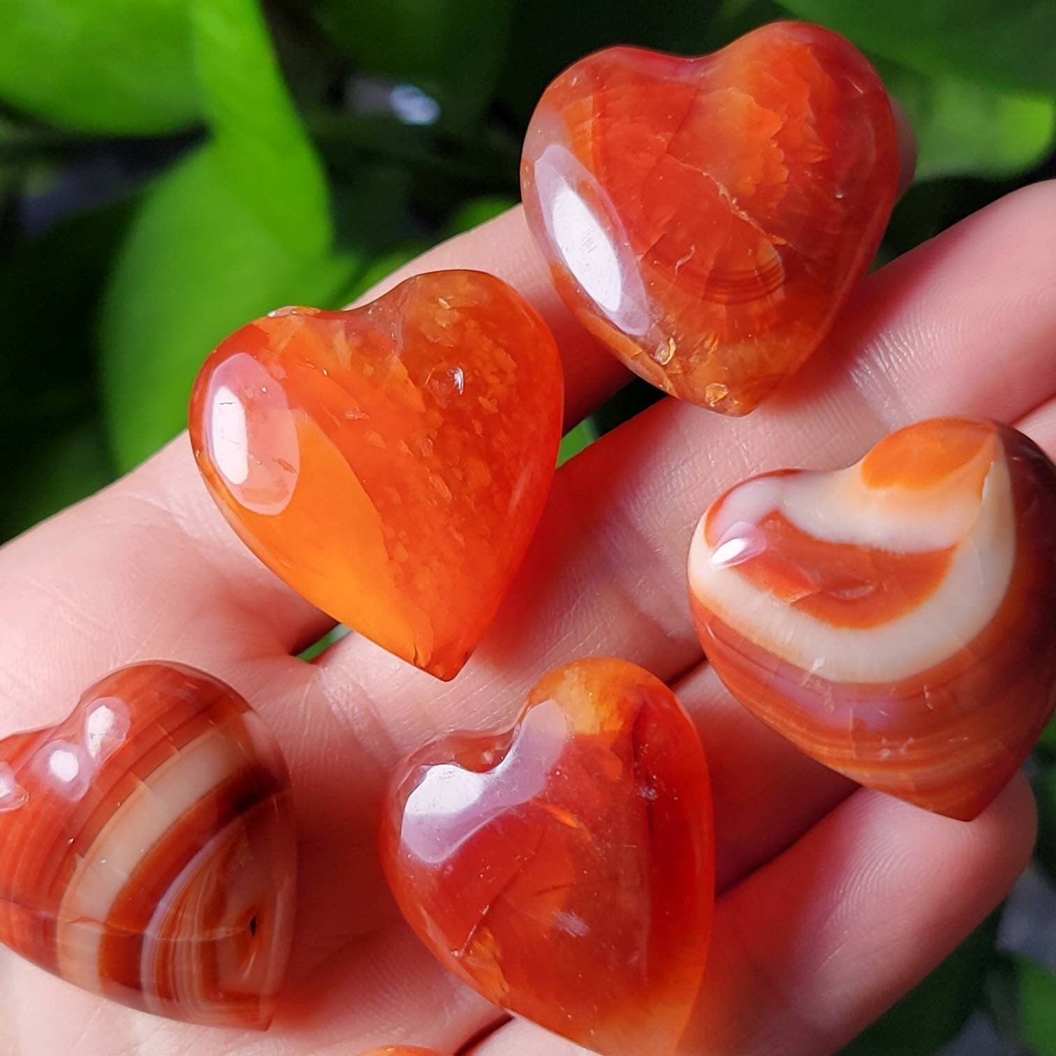 These Carnelian heart carvings are the BEST quality available and have a gorgeous deep red-orange glow to them. These are the highest quality material available from Madagascar as of 2022 and their energy is saturated and full of vitality!