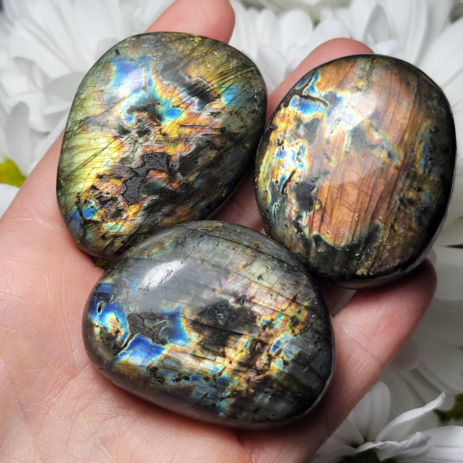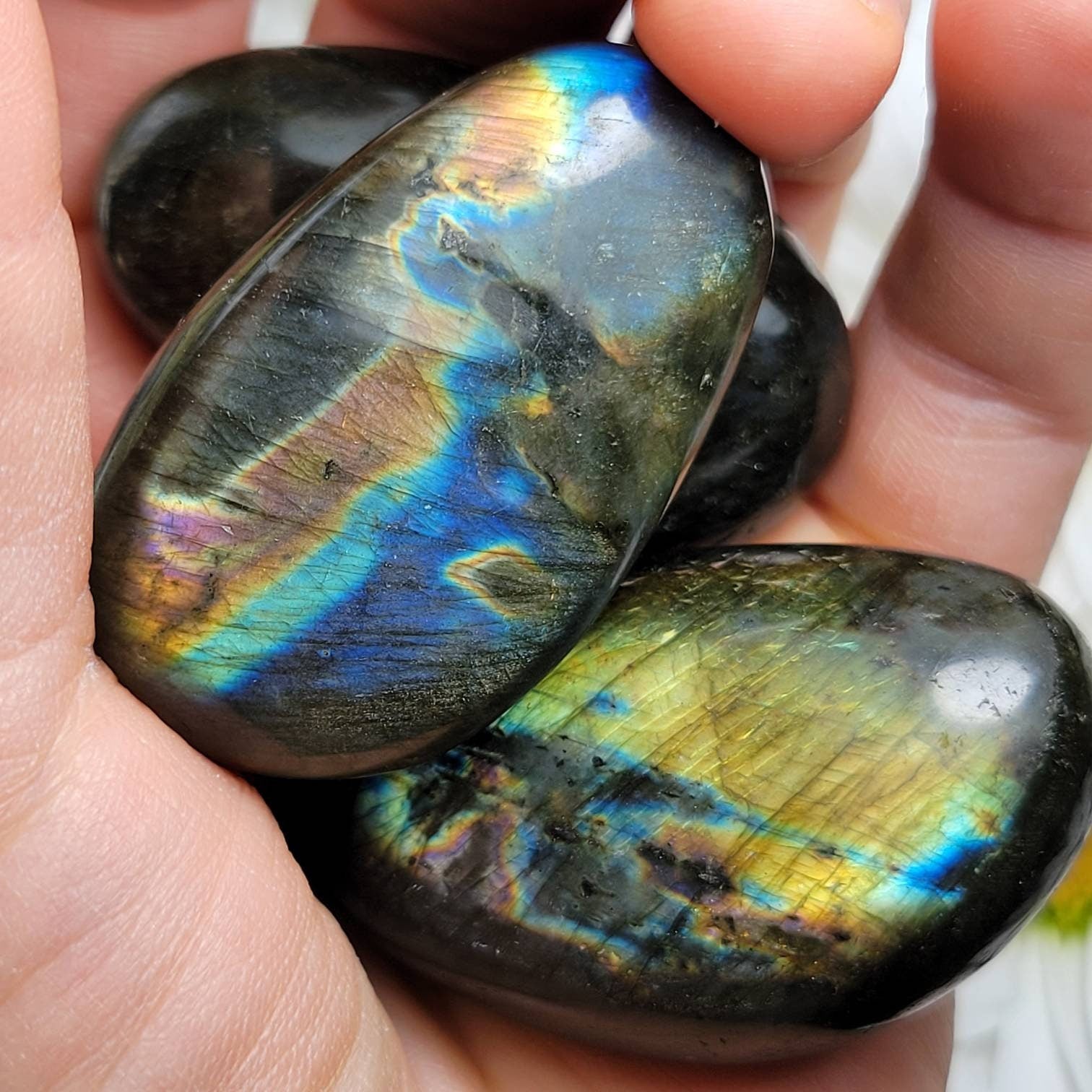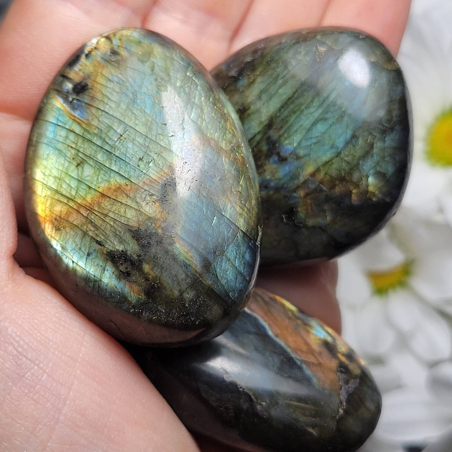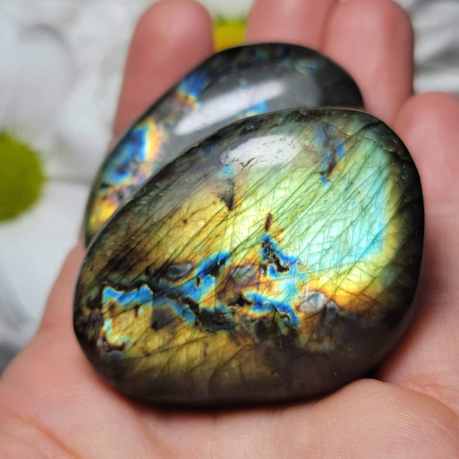 These two (2) AAA High Quality Labradorite Palmstones are Beautiful and as described -- they are cute little Allies that are so easy to carry around and enjoy! InfiniteSpiral always delivers the best gemstones! Thank you, Carli L.