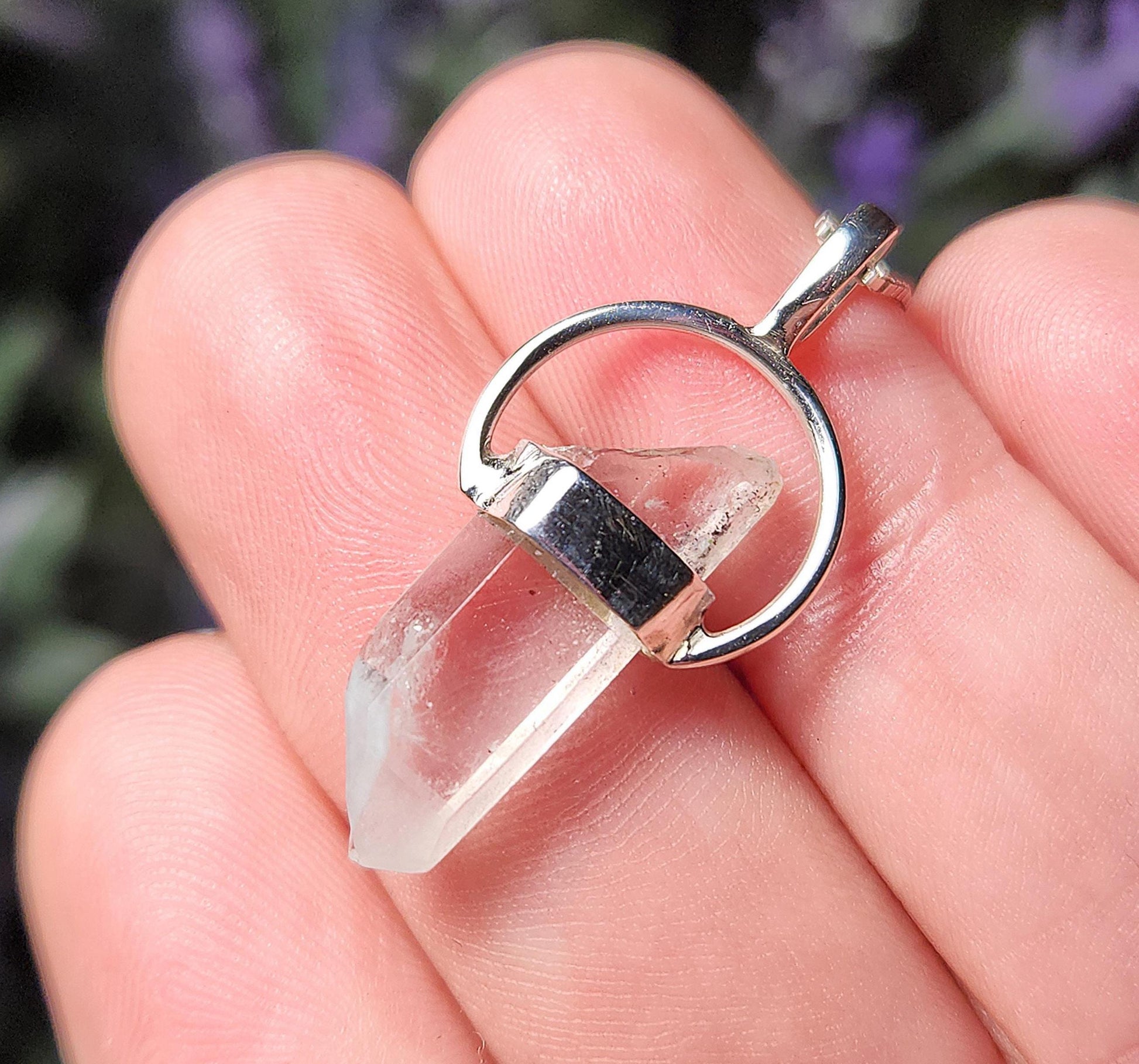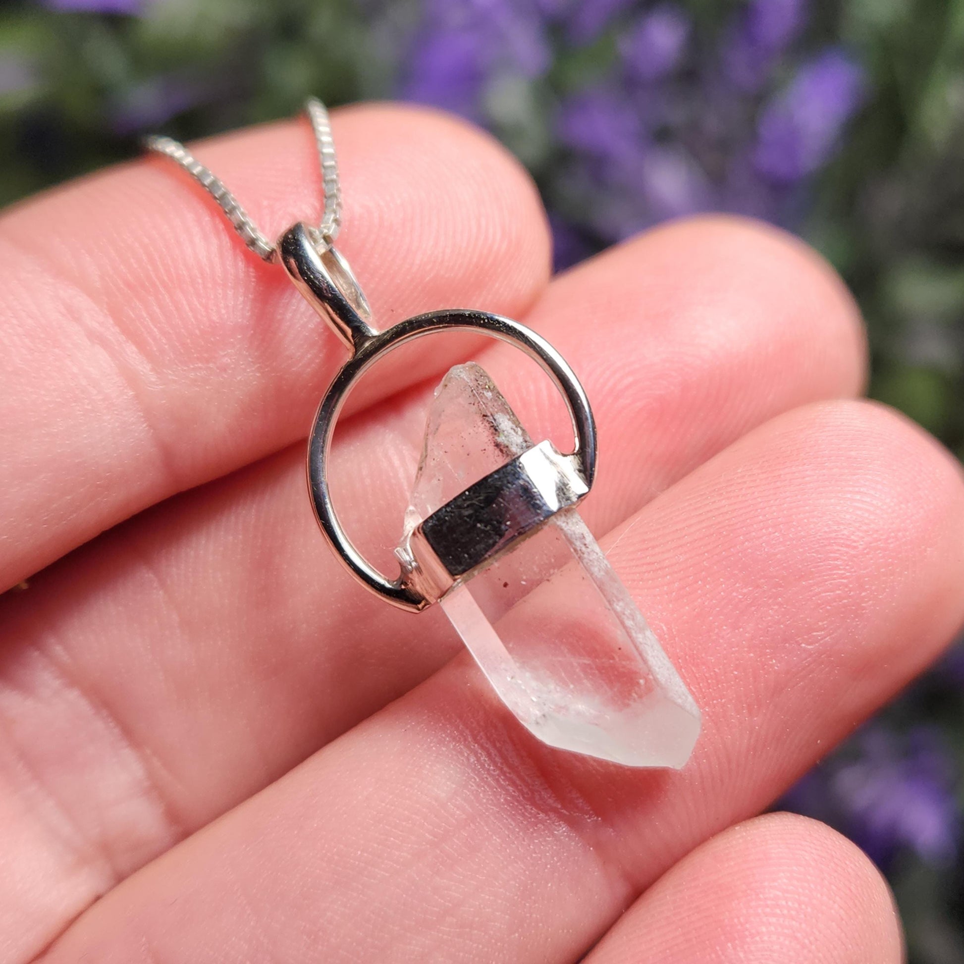 Mined from the Messina Mine in South Africa, this raw Quartz crystal has a crisp translucence showcasing a blue Ajoite inclusion within its naturally terminated tip. This crystal has been handpicked and processed into an intentional piece of jewelry using .925 Sterling Silver. This pendant measures approximately 29mm by 13mm. The silver chain used in the photos is to help envision how this pendant will look while adorned but is not included in the listing.