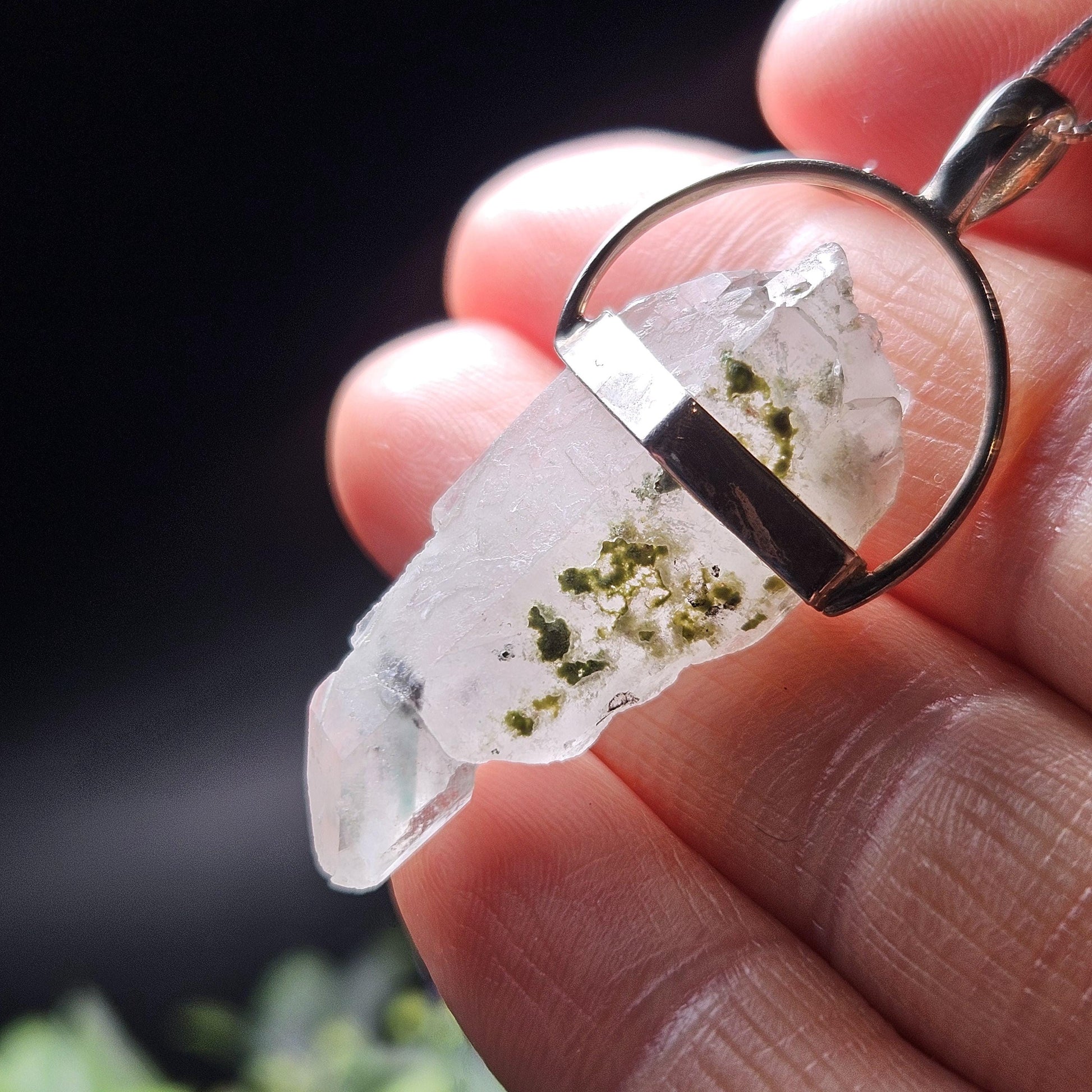 Ajoite Phantom in Quartz Crystal Pendant, Ajoite Sterling Silver Necklace