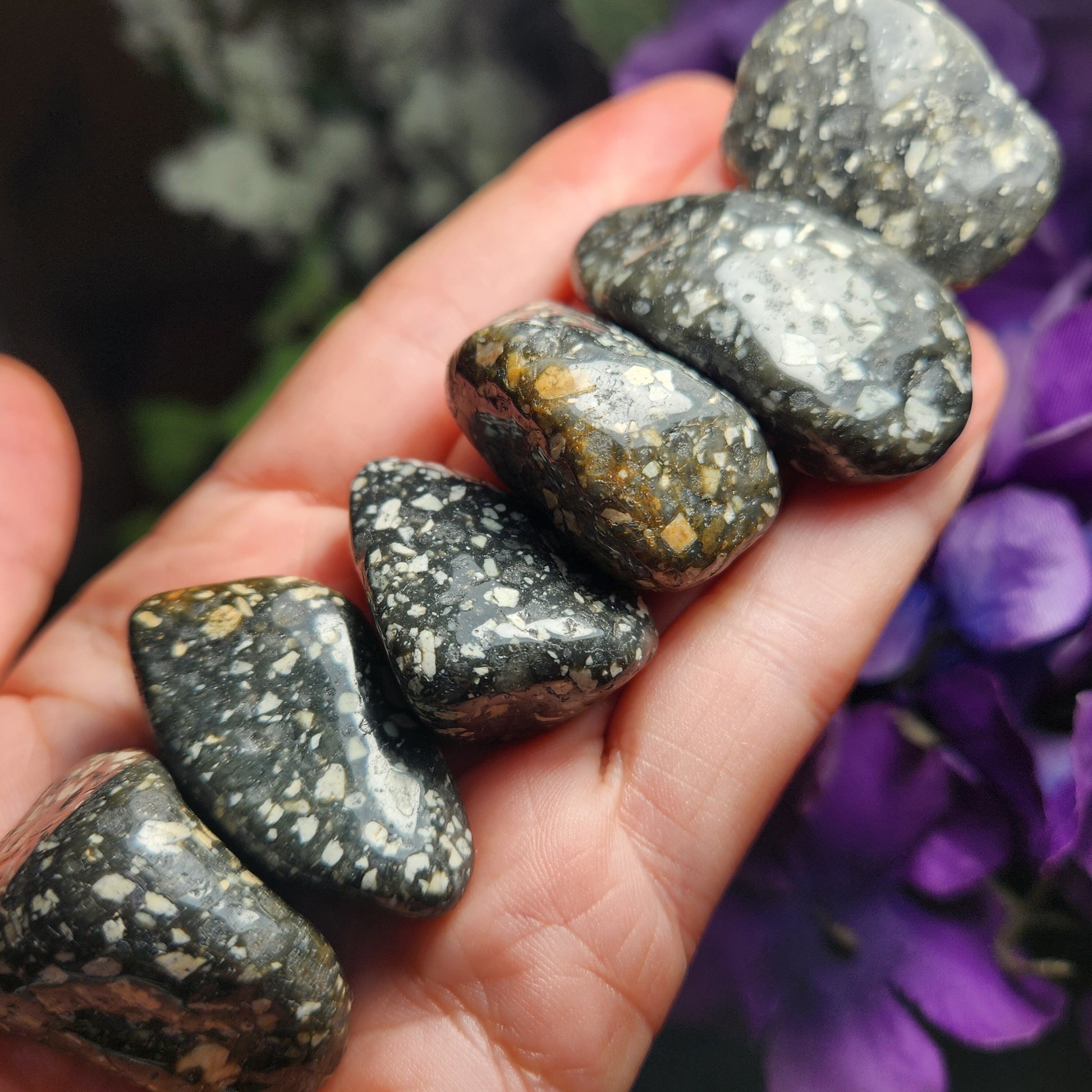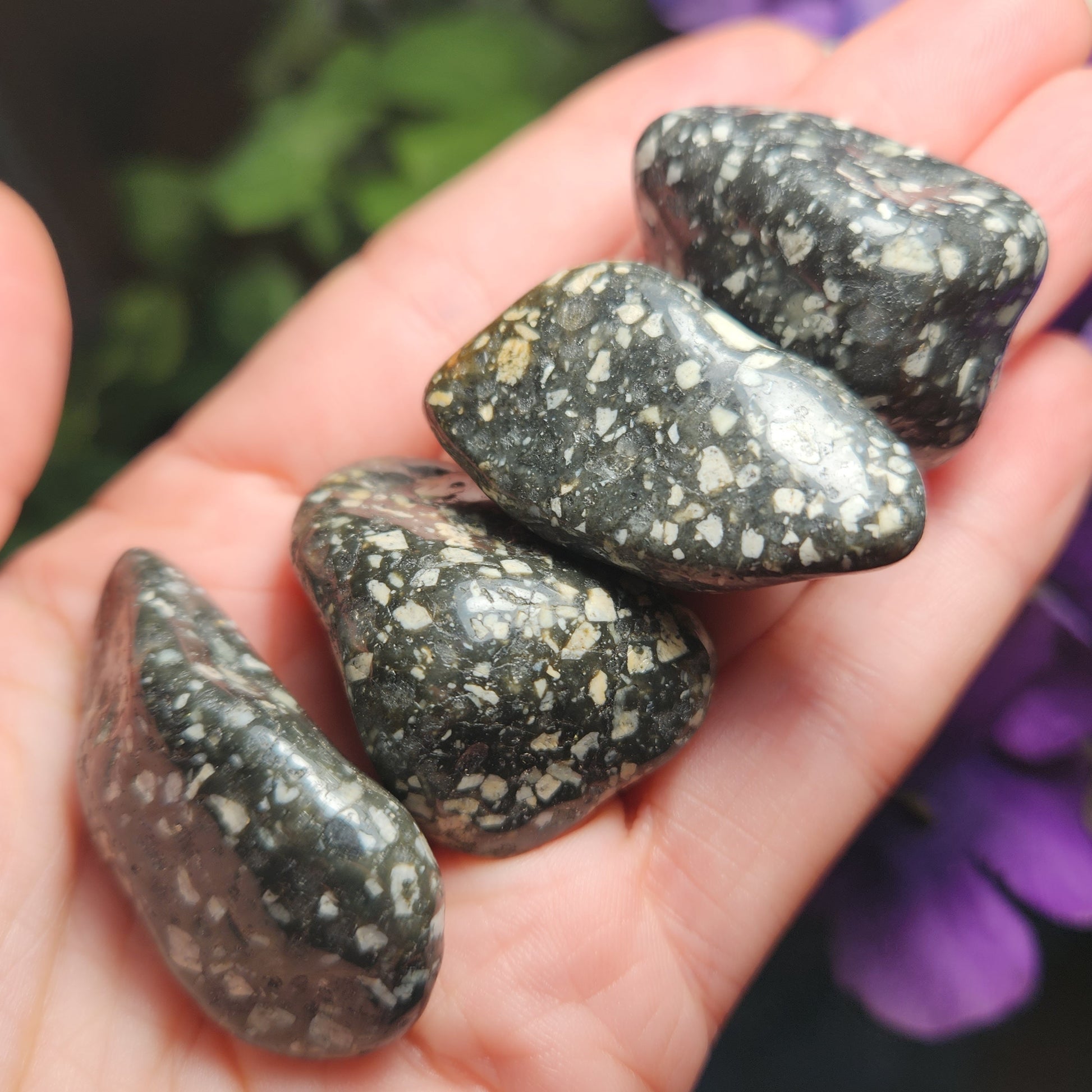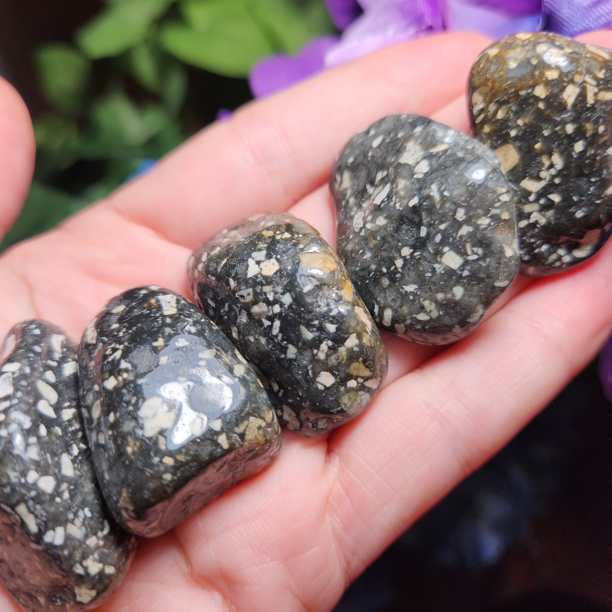 Excellent Guinea Fowl Jasper tumbled stones were carefully packaged and matched its high quality photos. Thanks for the free gift of a small Carnelian tumble.