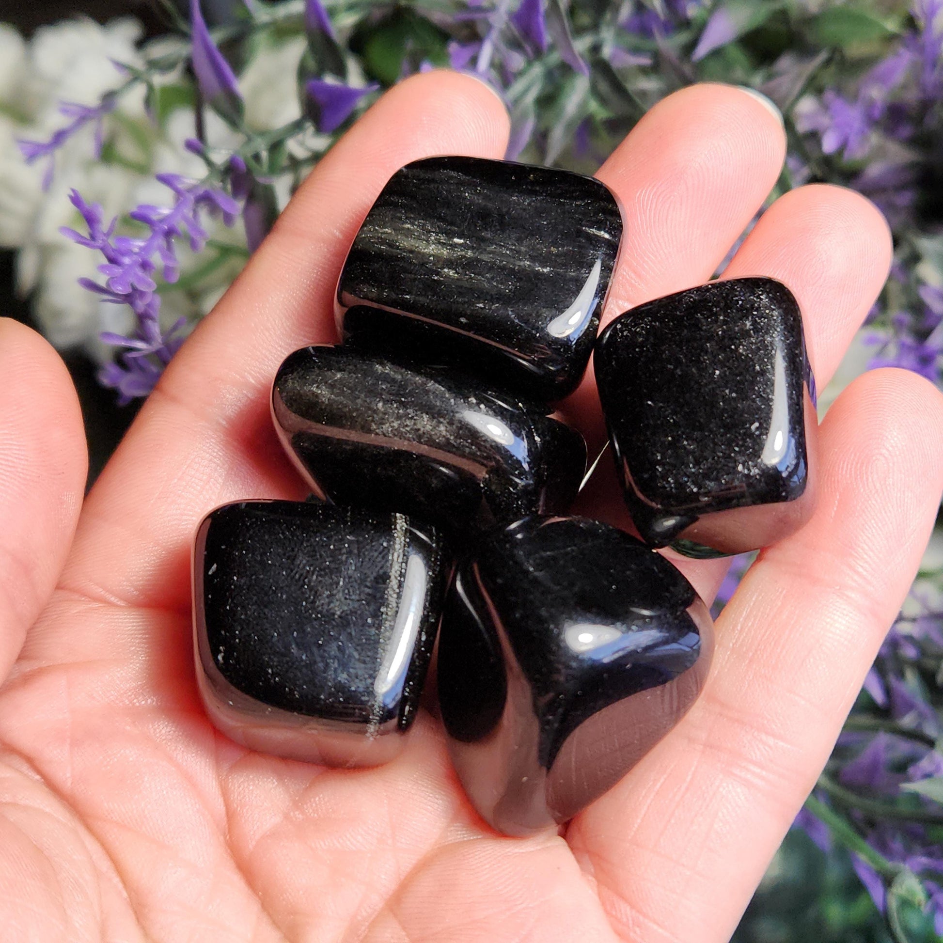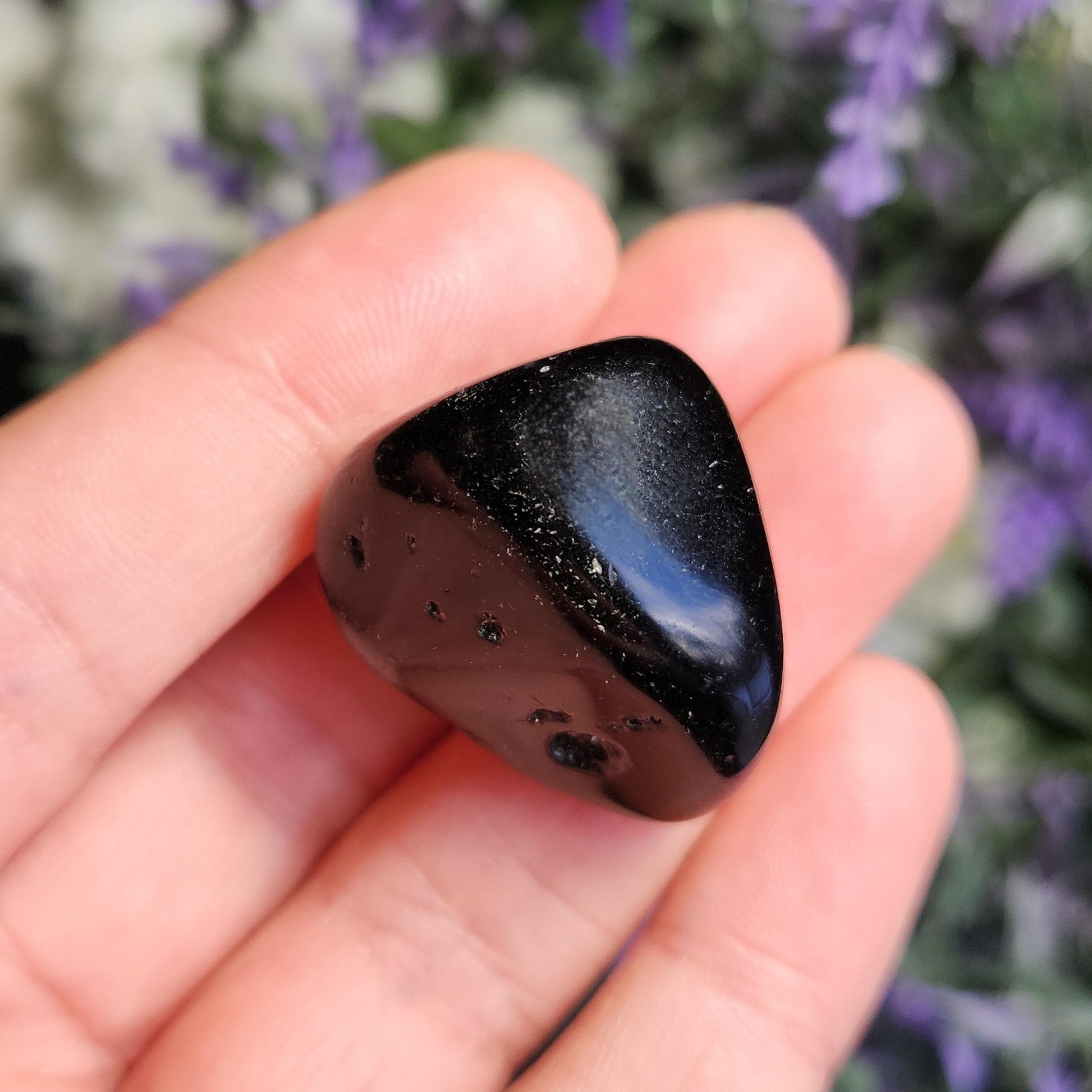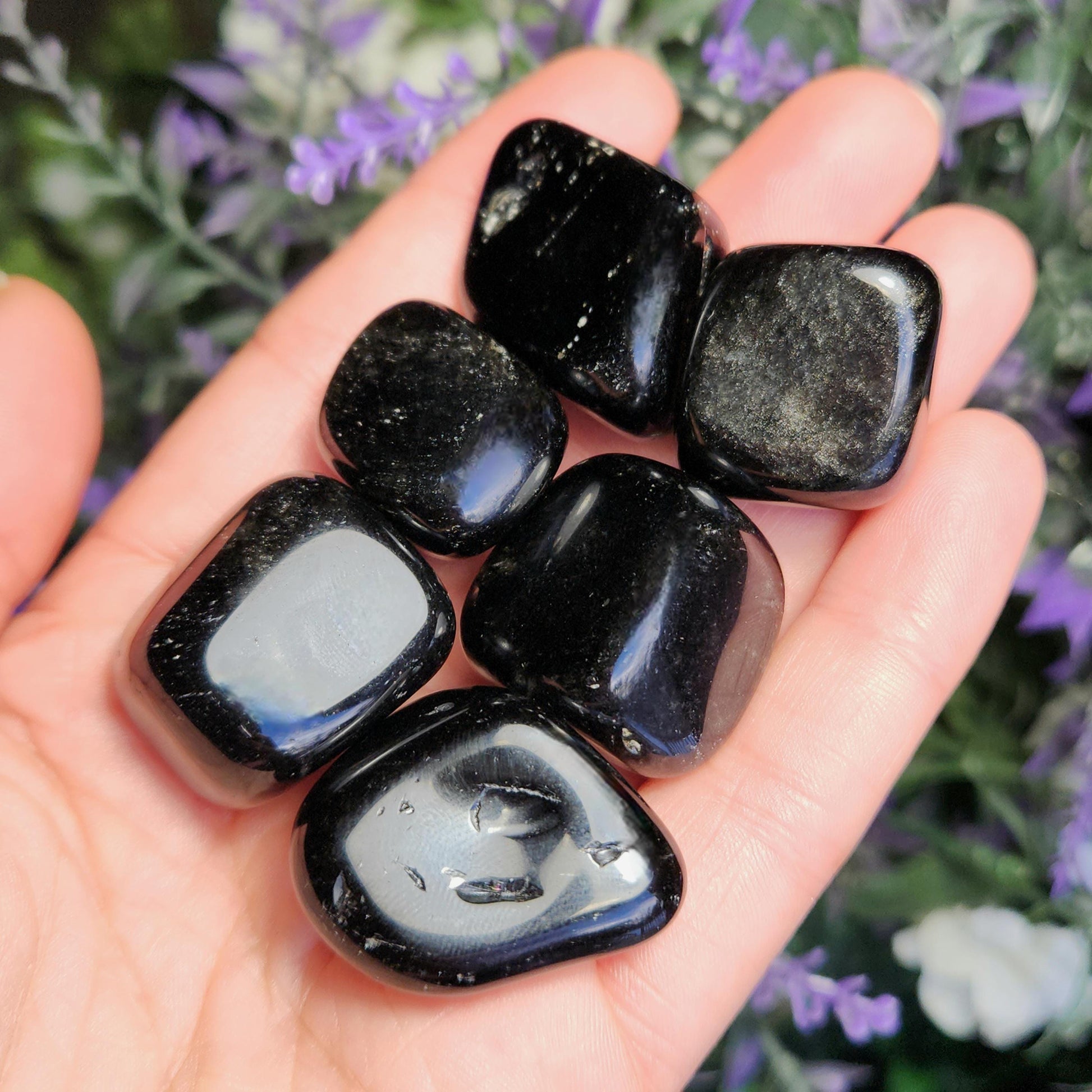 These Black Obsidian stones have been tumbled to a high polish and may exhibit small wispy inclusions or natural sheens. Each specimen measures between .75 inches and 1 inch.