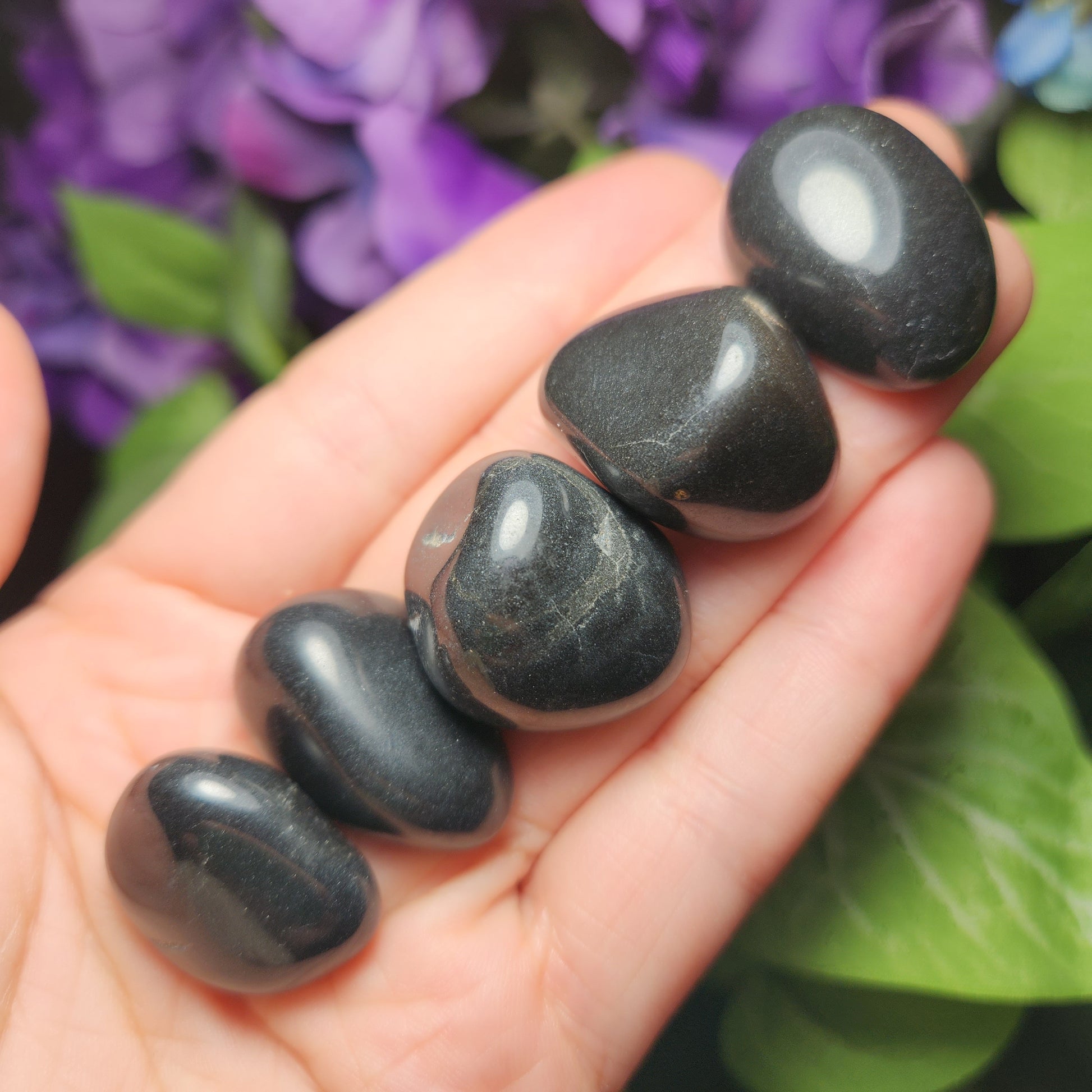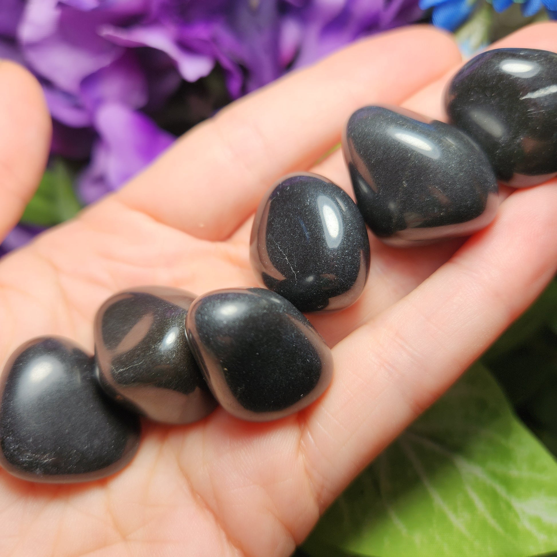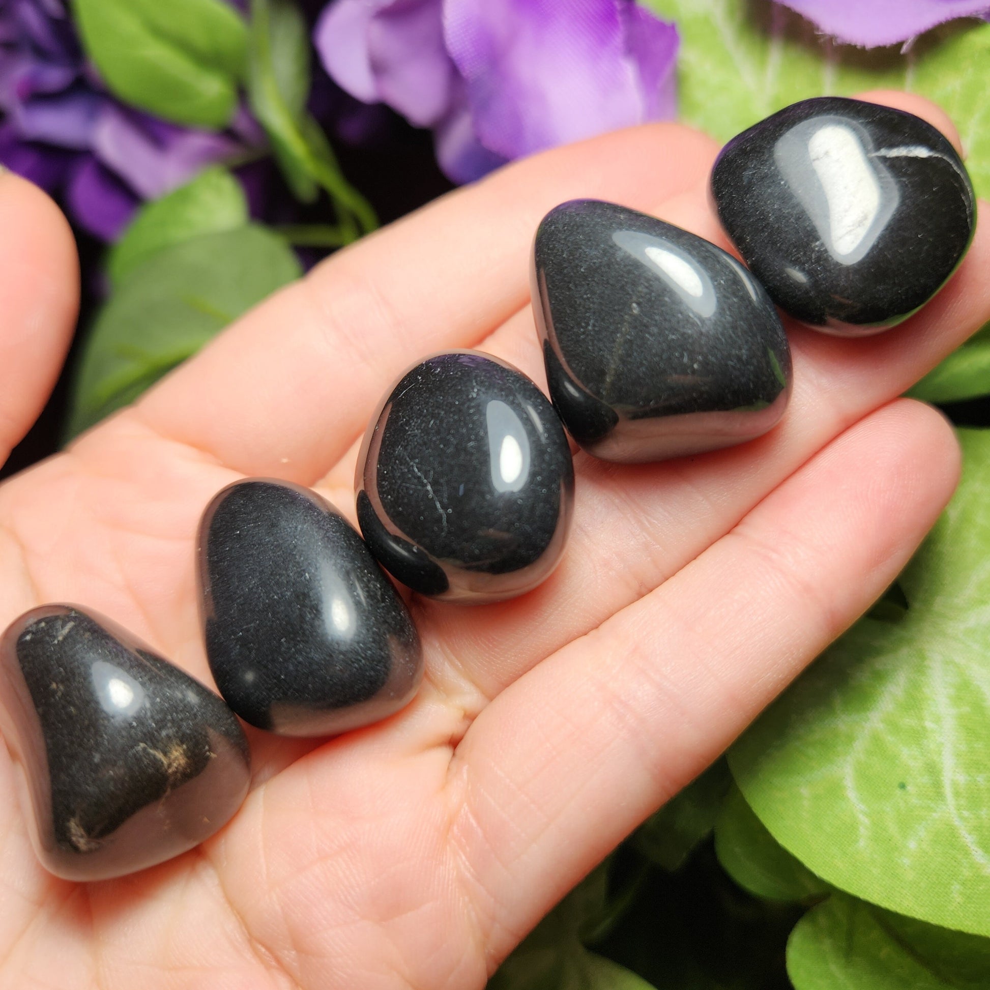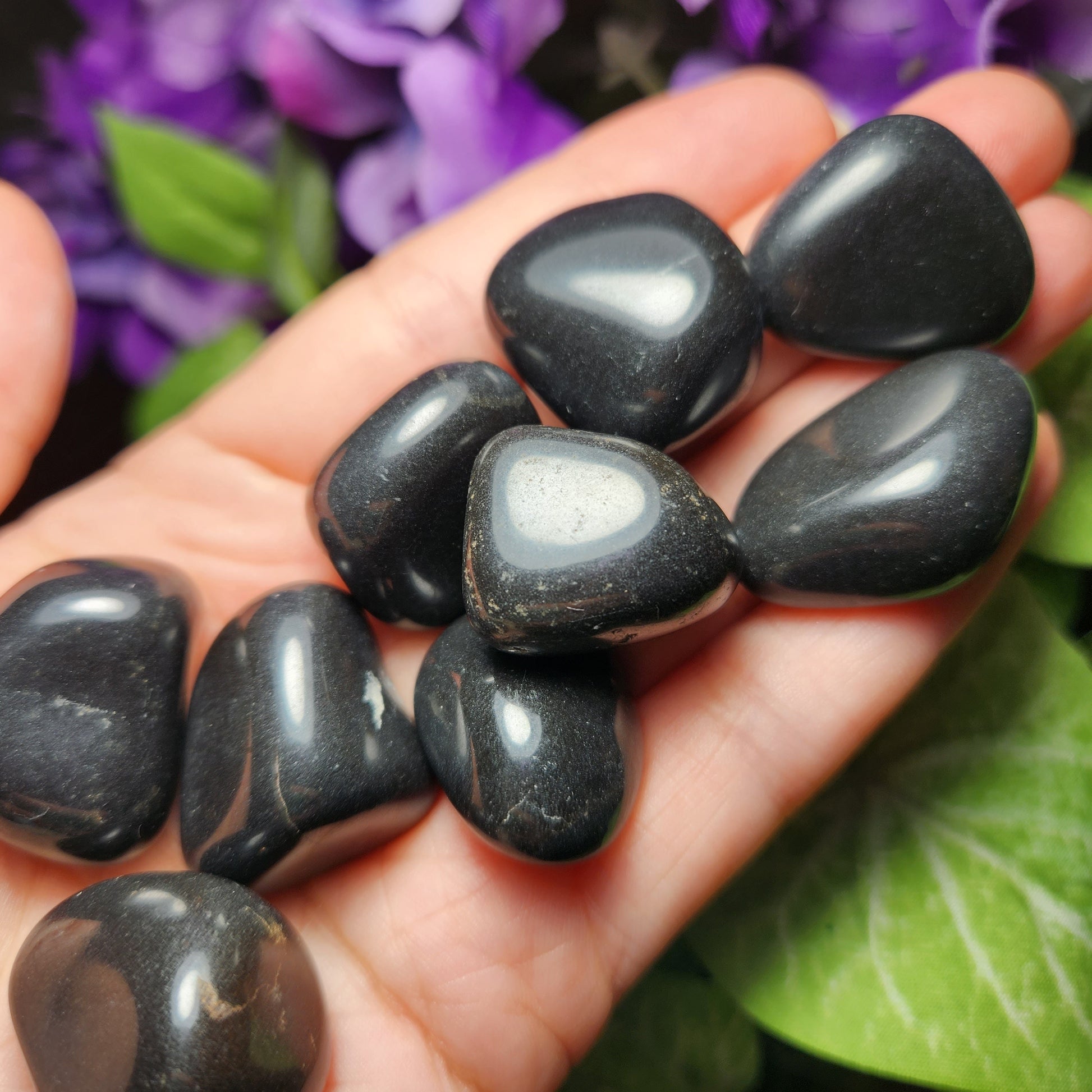 These Black Onyx stones have been tumbled to a smooth polish with a high sheen. Each specimen measures approximately 20mm.