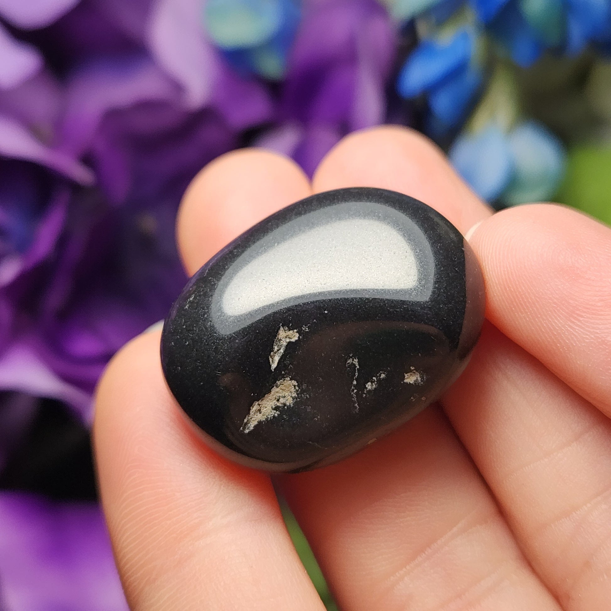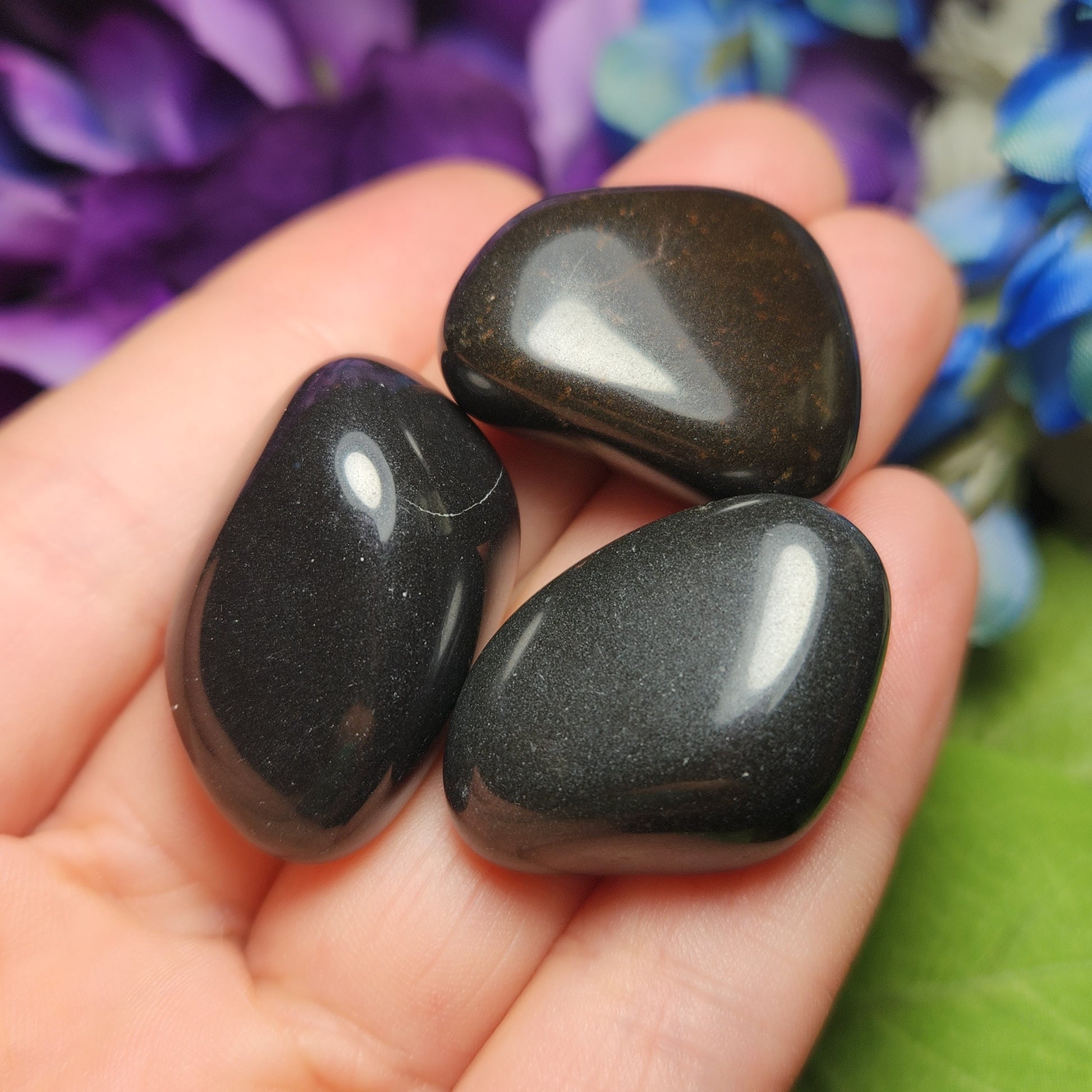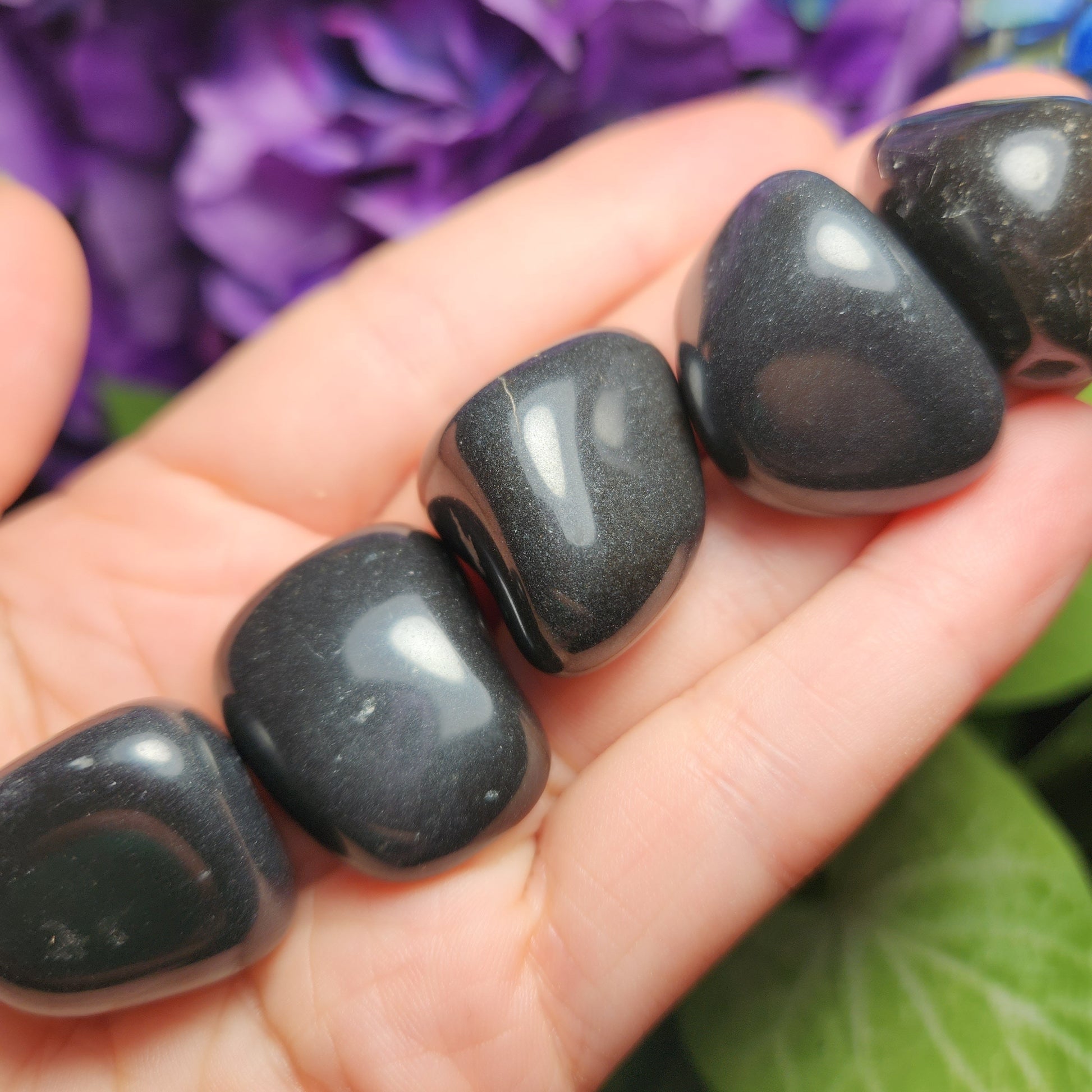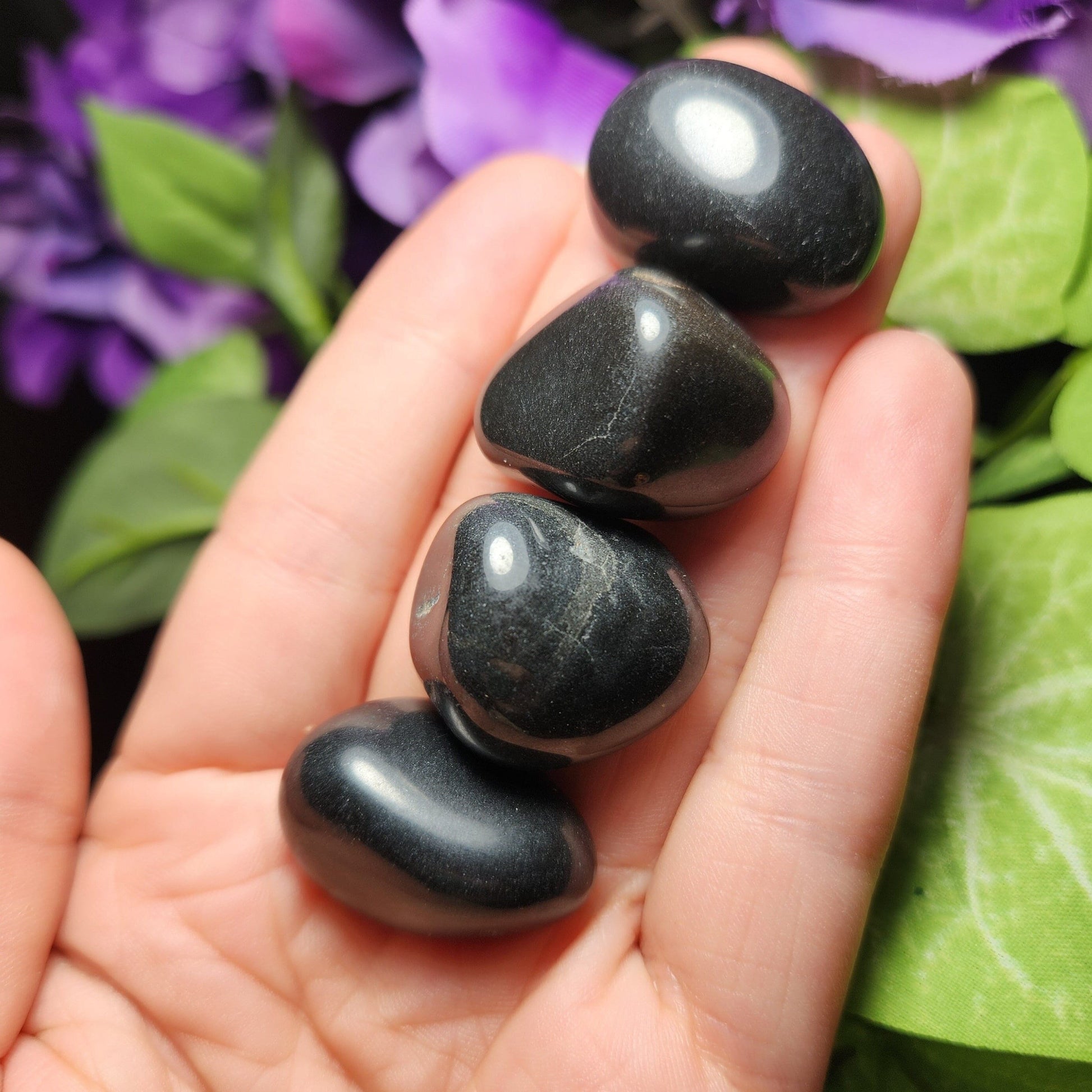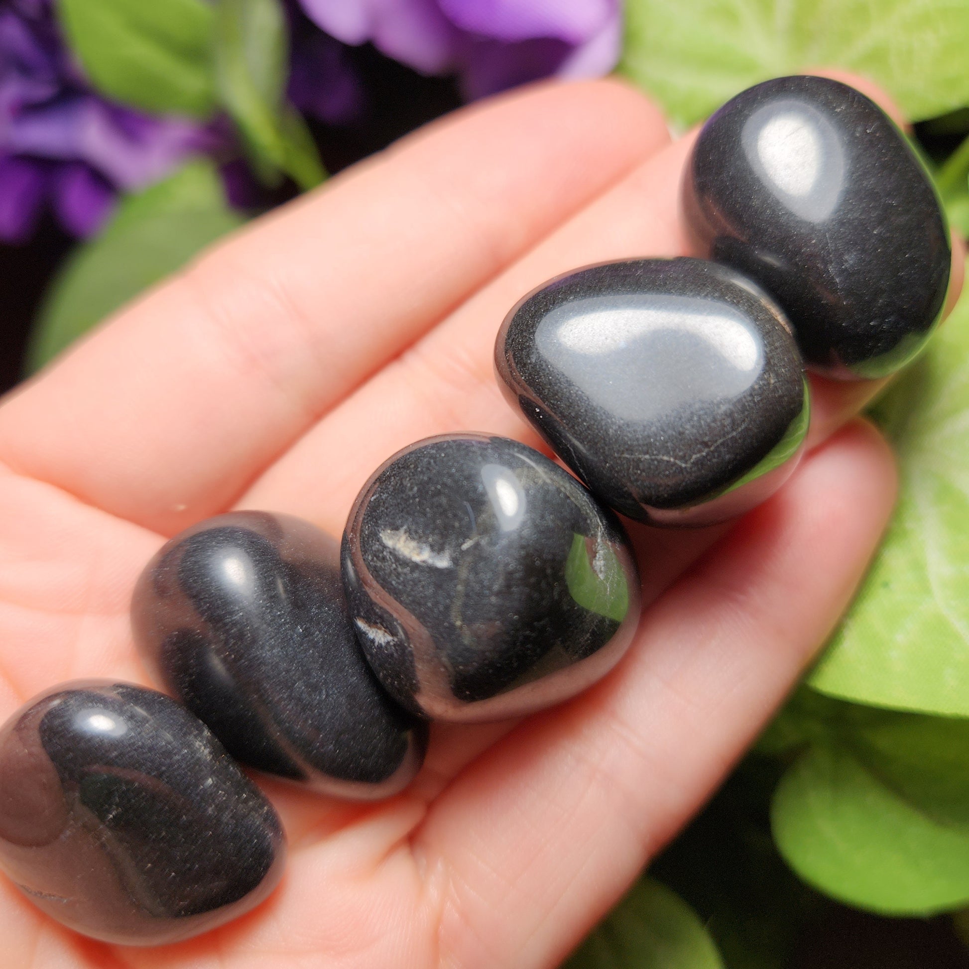 These Black Onyx stones have been tumbled to a smooth polish with a high sheen. Each specimen measures approximately 20mm.