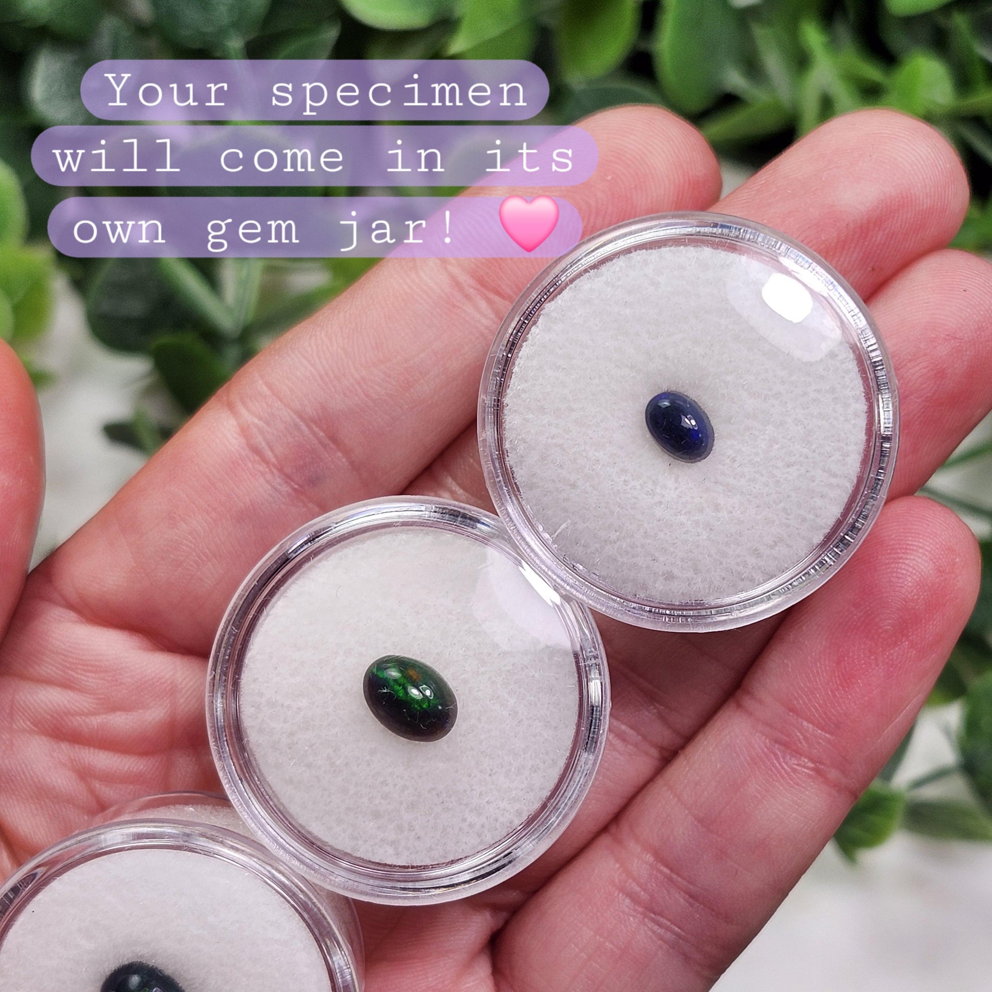 Opals are a magical crystal known for their incredible flash of rainbow colors. An amorphous form of silica, Opals contain water in their structural makeup - this makes them relatively soft, falling at approximately 5.5 on the Mohs scale. Although somewhat fragile, this colorful crystal can withstand being worn and makes striking pieces of jewelry. These petite, oval shaped Opal cabochons have a smooth polish. They exhibit a deep, smoky black coloring and showcase a brilliant flash of various rainbow colors. Your specimen will arrive within a plastic gem jar to ensure its safety. These natural gemstones lend themselves perfectly to the craftsmanship of both artisan and hobbyist jewelry makers or may be treasured on their own for their unique beauty and character.