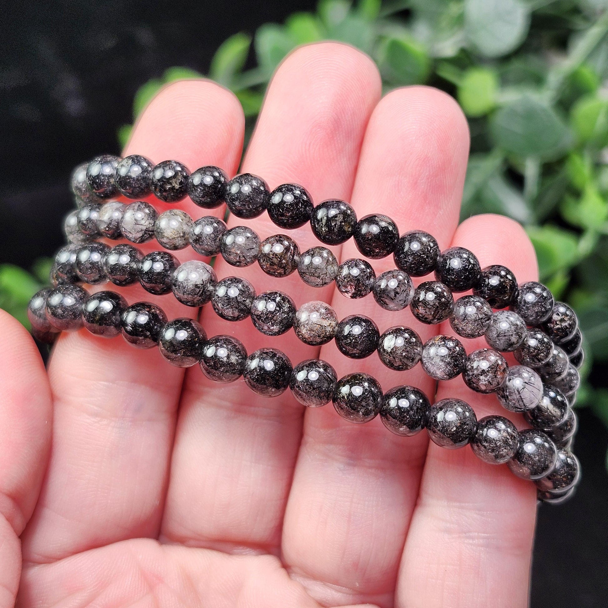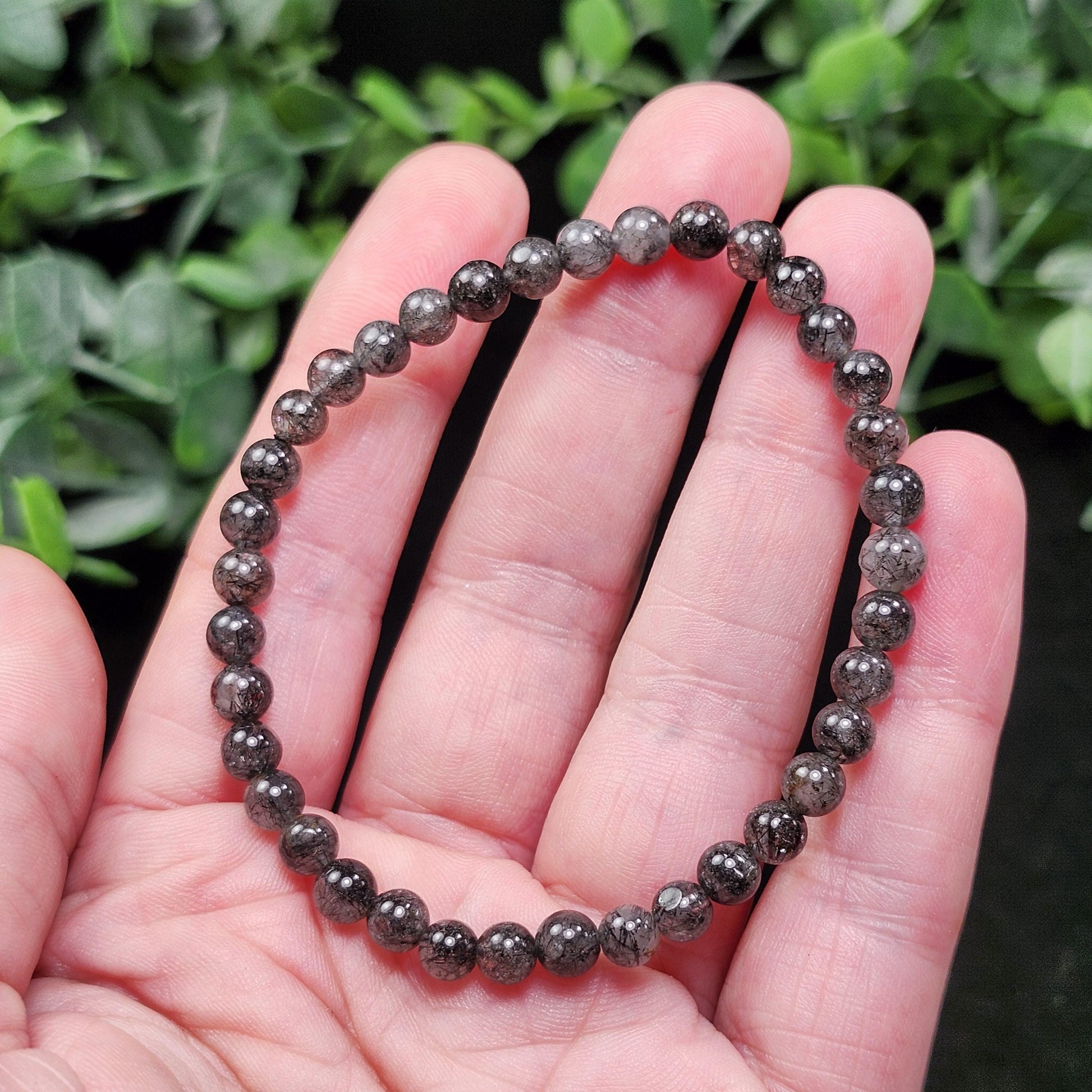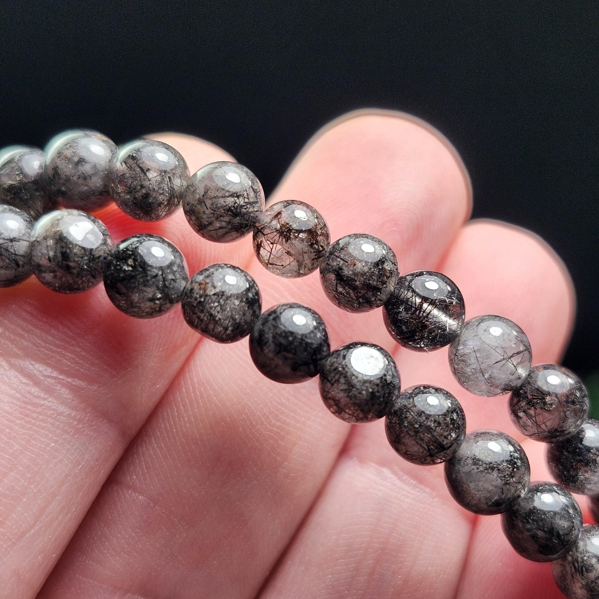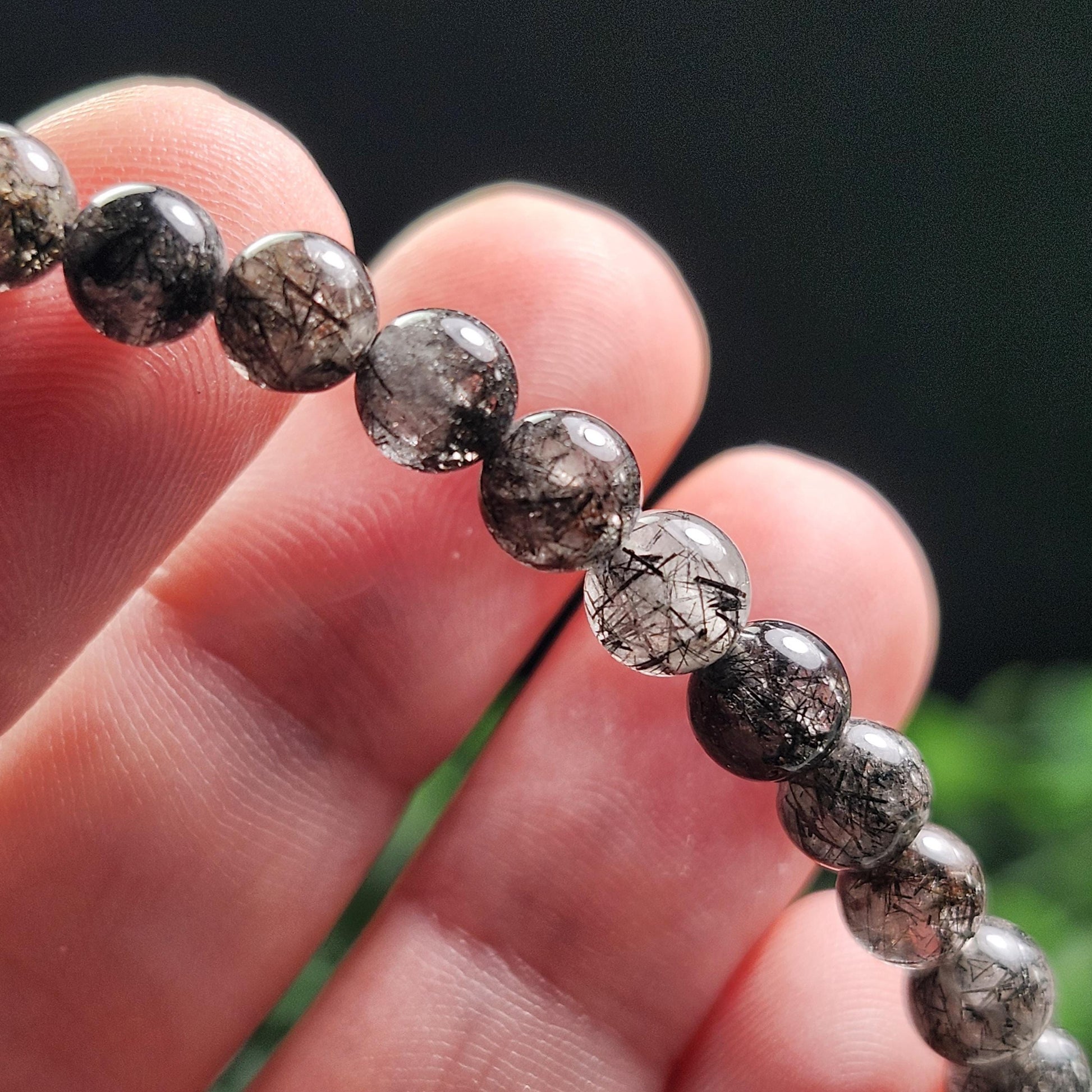 Black Rutilated Quartz Crystal Bracelet: Polished Gemstone Jewelry