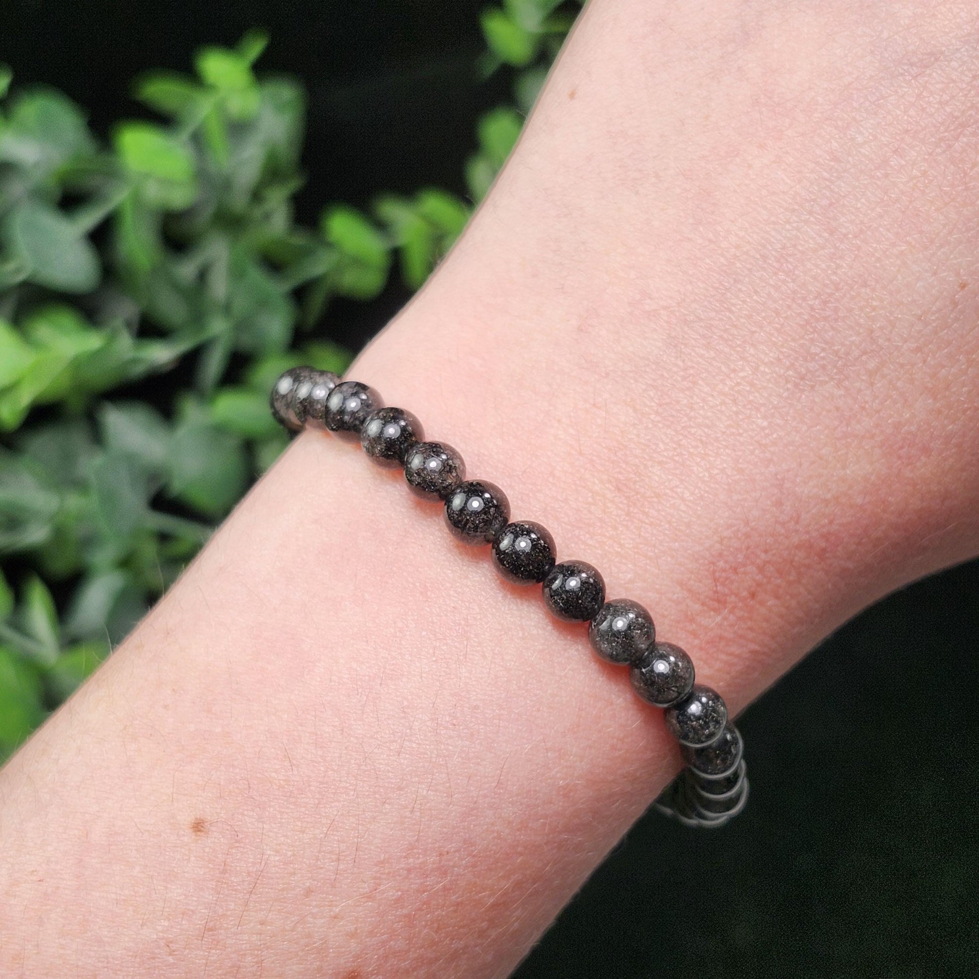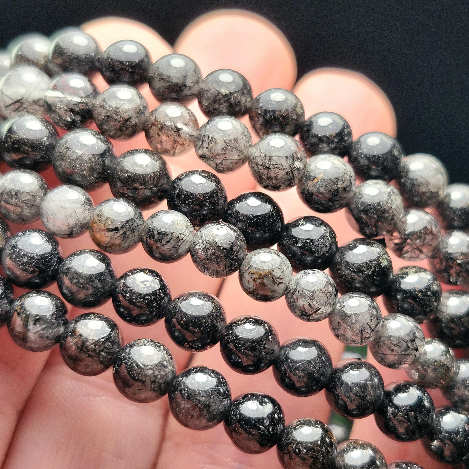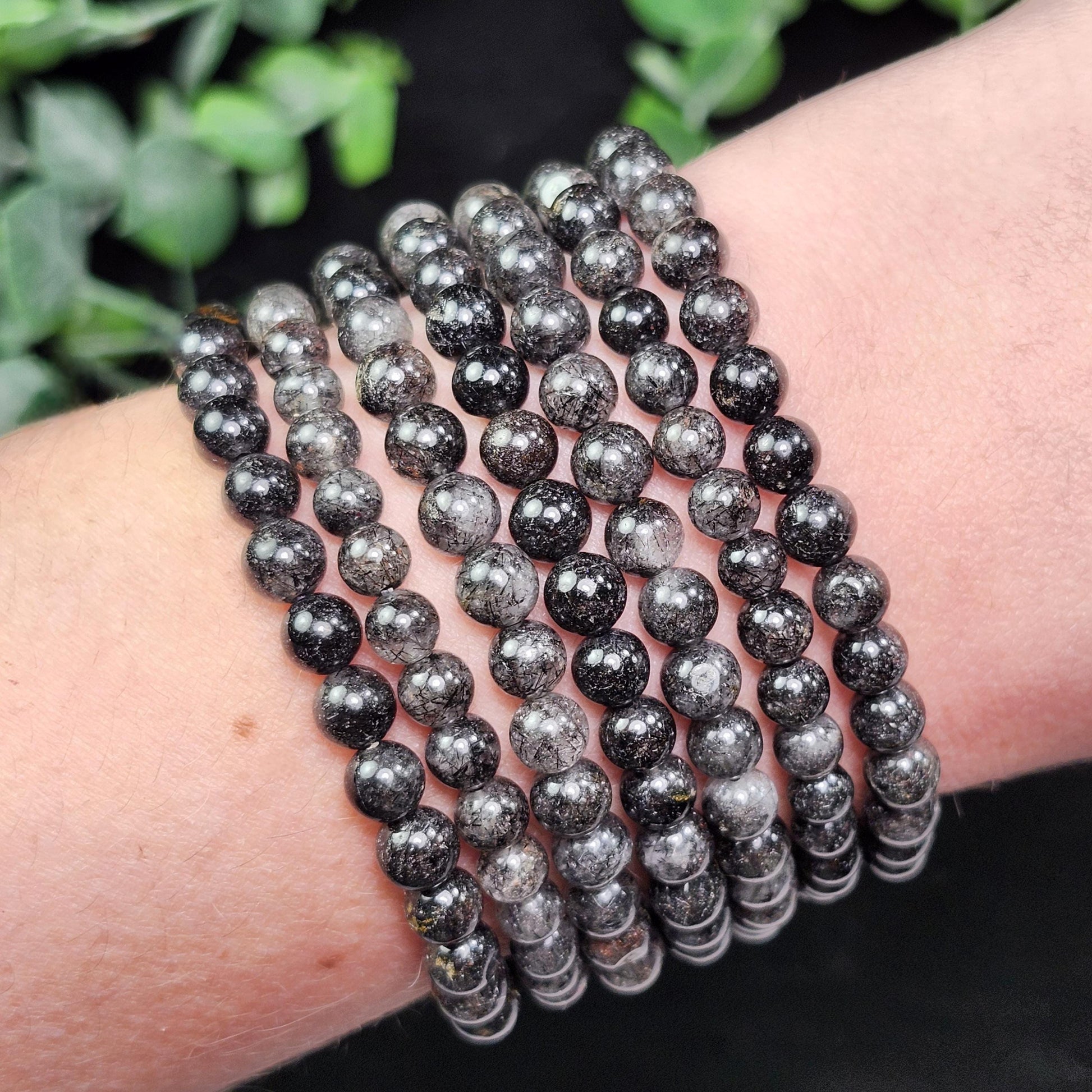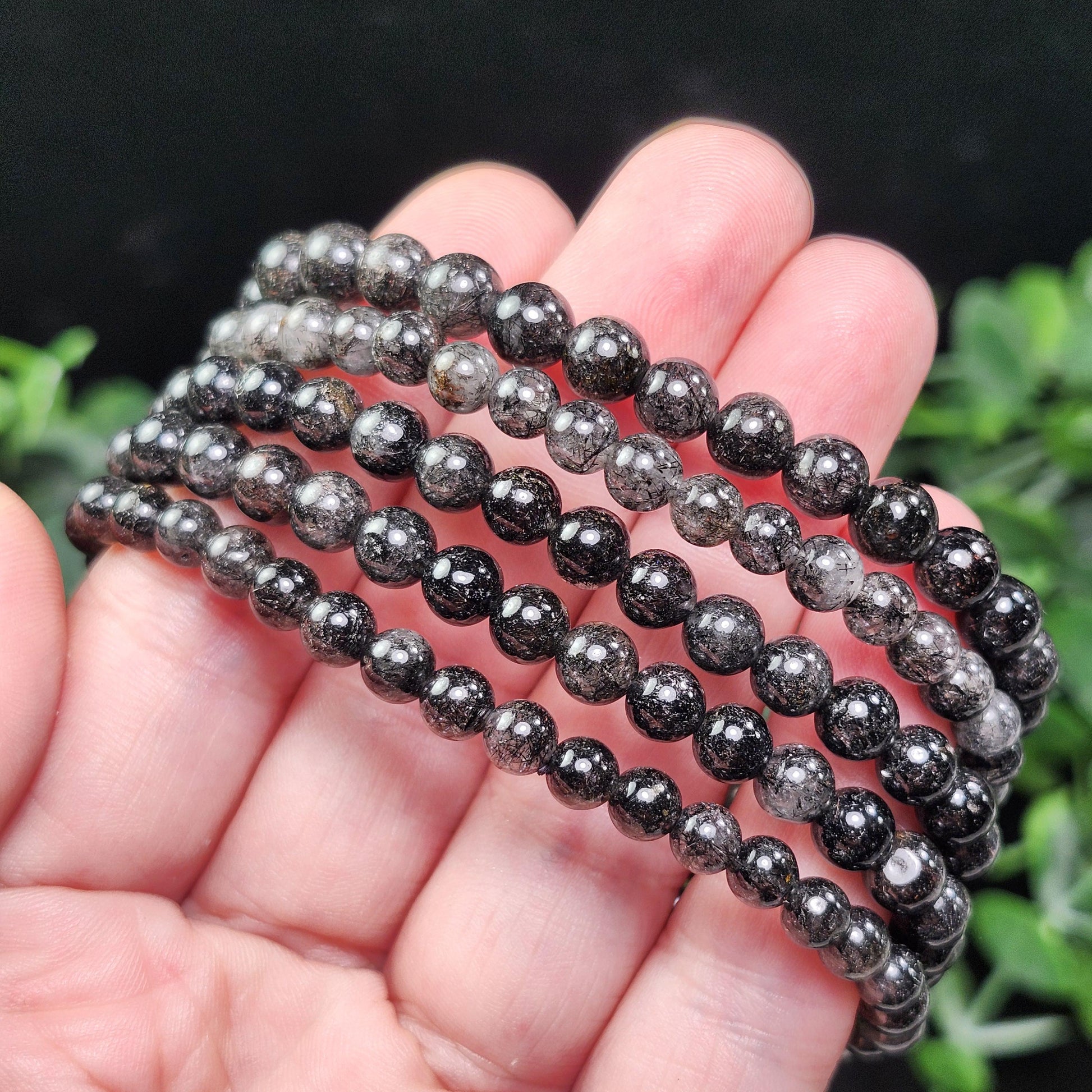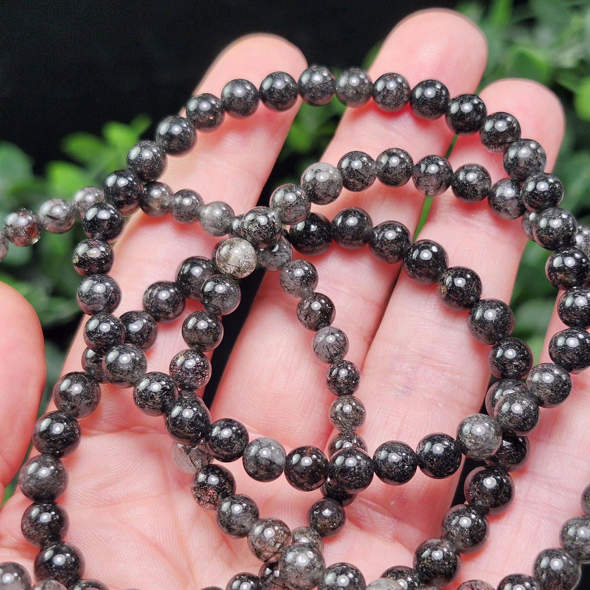 Black Rutilated Quartz Crystal Bracelet: Polished Gemstone Jewelry
