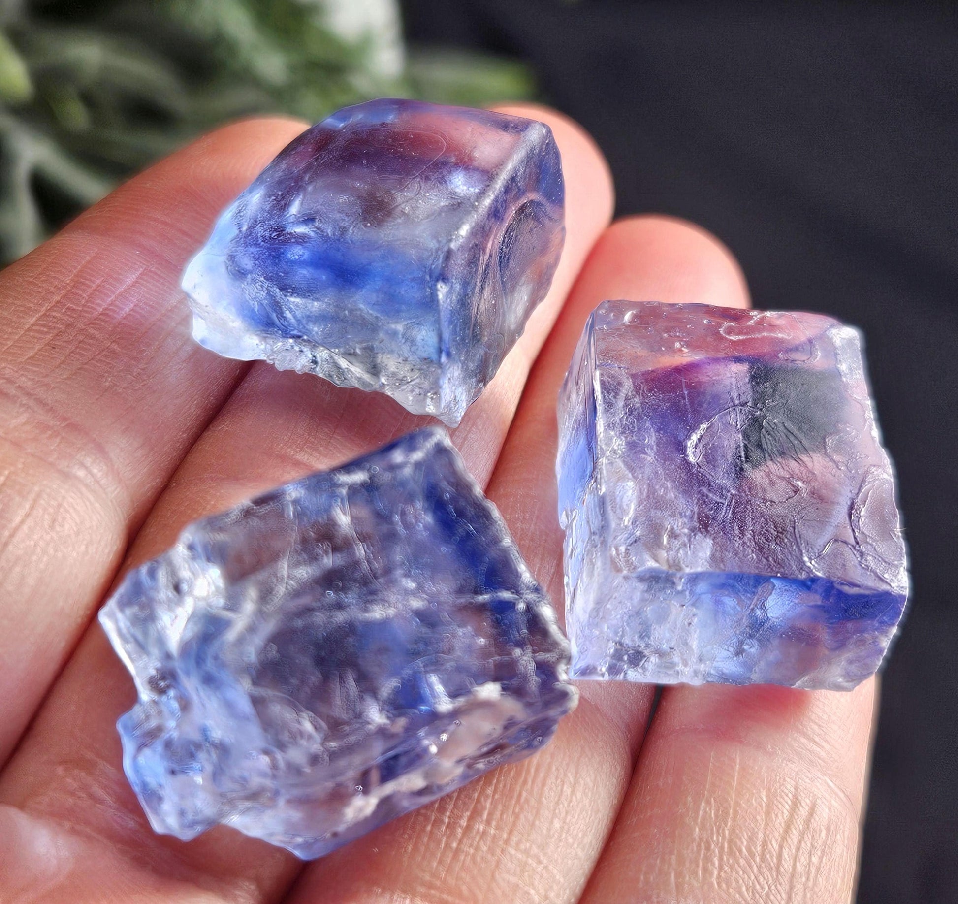 These cubic Turkish Blue Halite crystals have a striking clarity showing off the incredible blue color zoning within. Each unique crystal has a naturally high sheen, luster, and a glowing translucence. This specimen measures approximately 40mm by 35mm by 22mm and weighs 28 grams. This listing is for a single individual crystal, each with cubic and massive growth, a range of indigo blue coloring and with sides measuring between 10 and 20 millimeters with rectangular shapes.