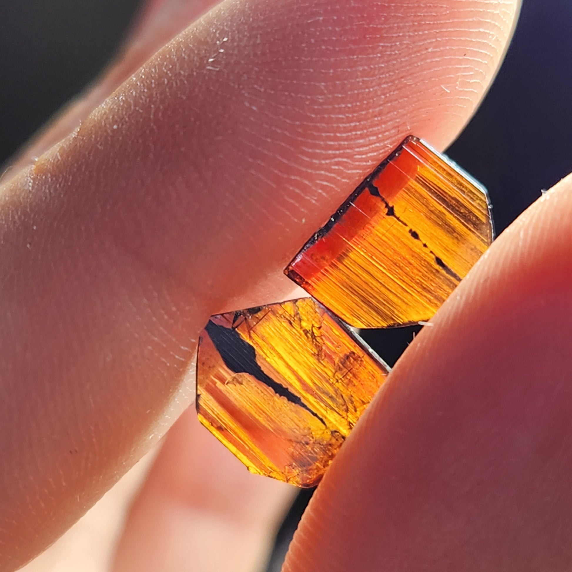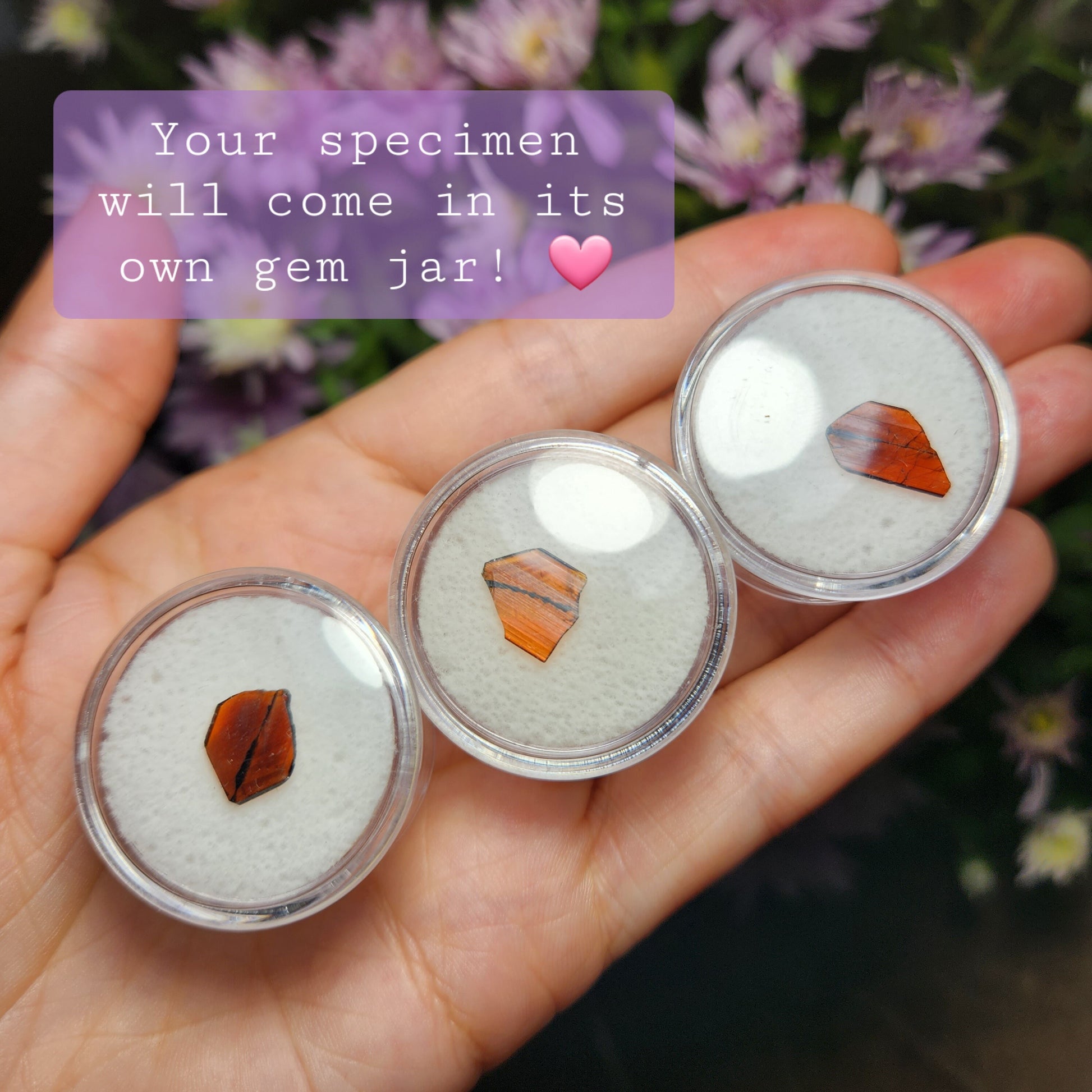 These natural Brookite blades are high quality, exhibiting clear striations, slight termination, and distinct helix growth lines running through their centers. Each specimen will arrive within a plastic gem jar to ensure its safety.