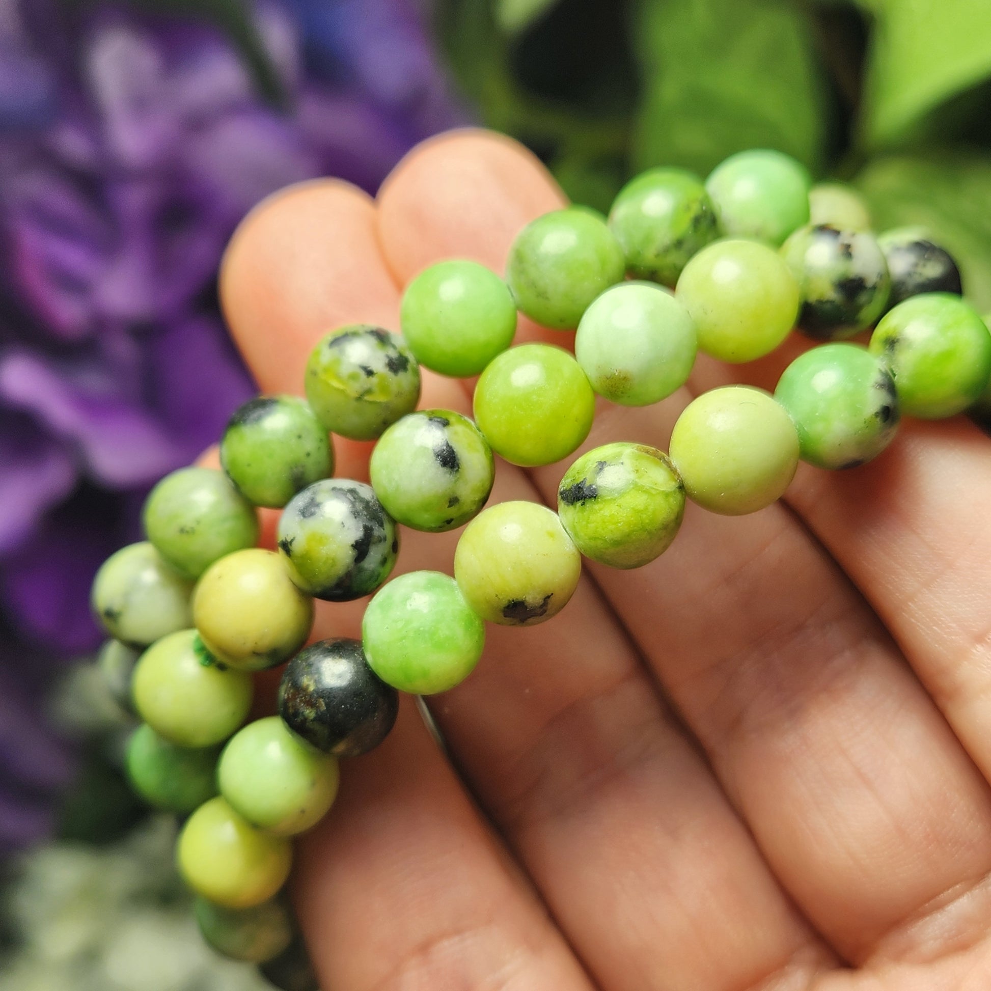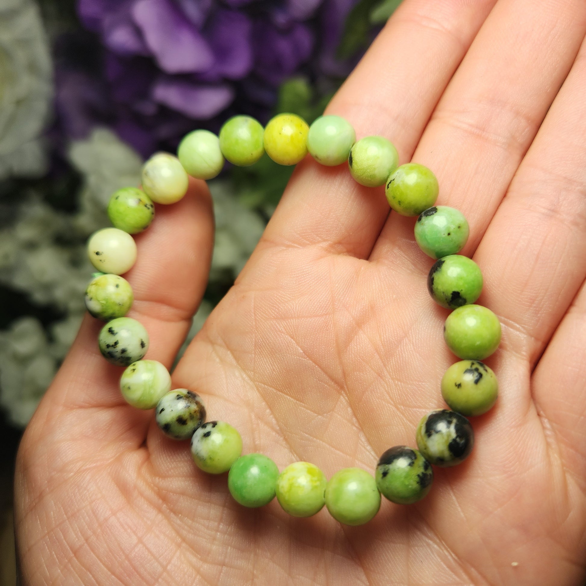 These Chrysoprase stretch bracelets are created with 8mm beads that have been polished to a high sheen. Each bracelet measures approximately 7 inches.
