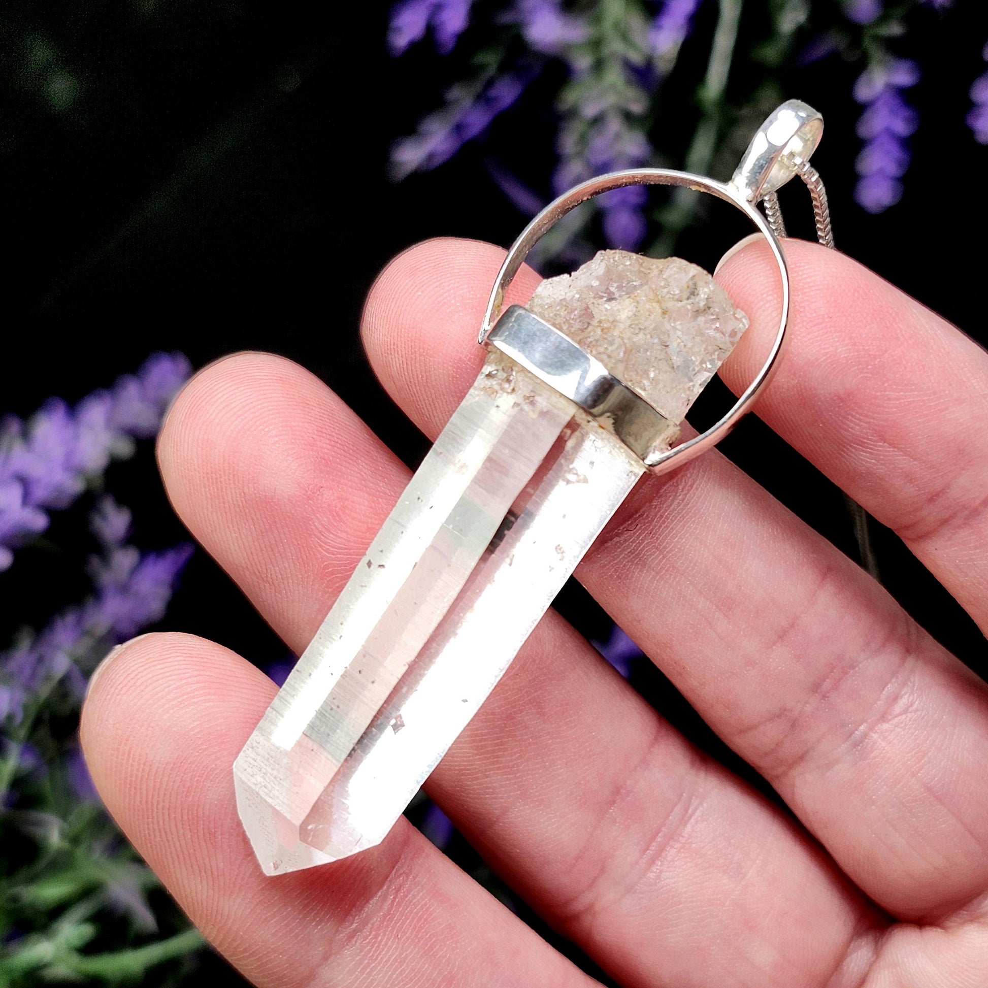 Colombian Lemurian Quartz Pendant: Sterling Silver Crystal Necklace