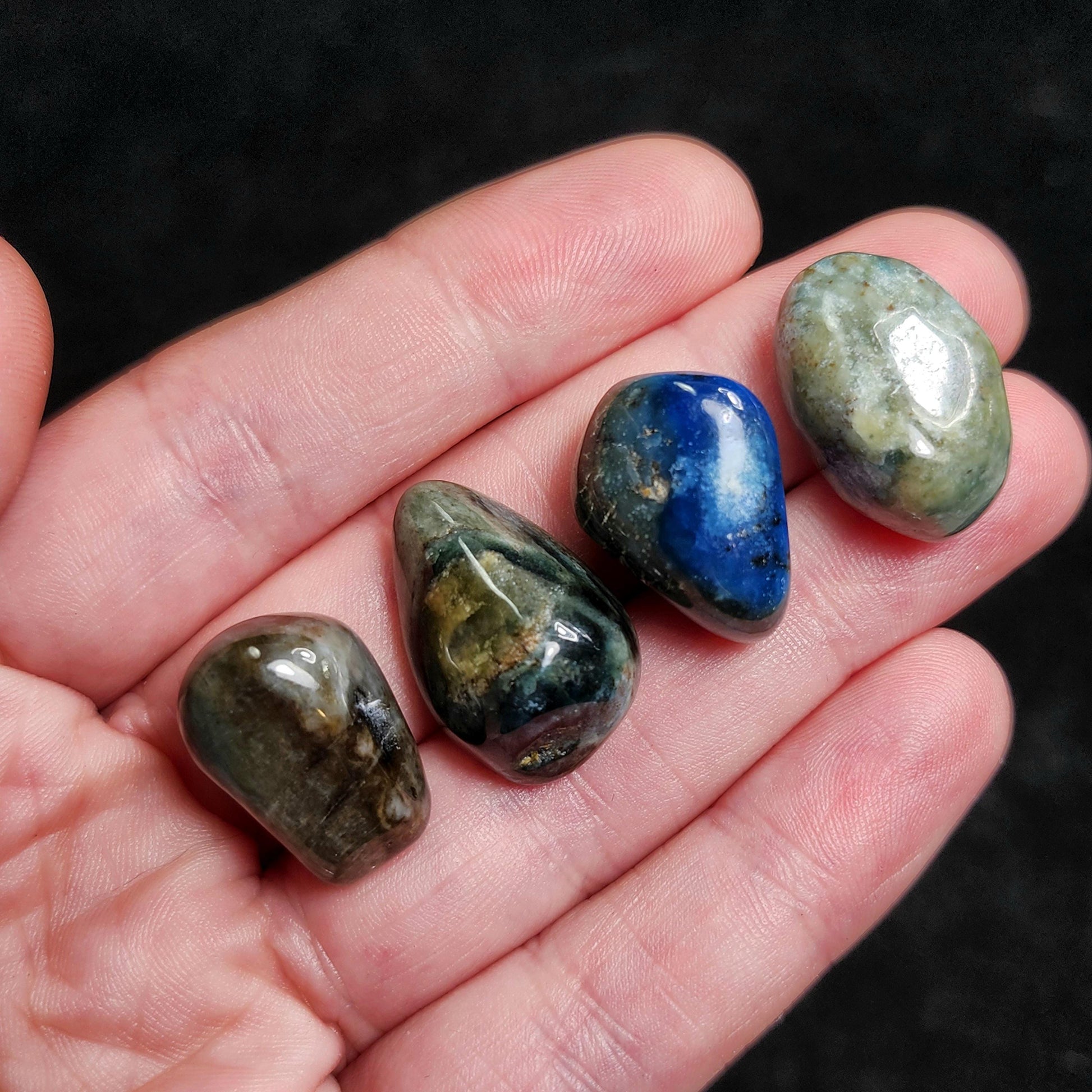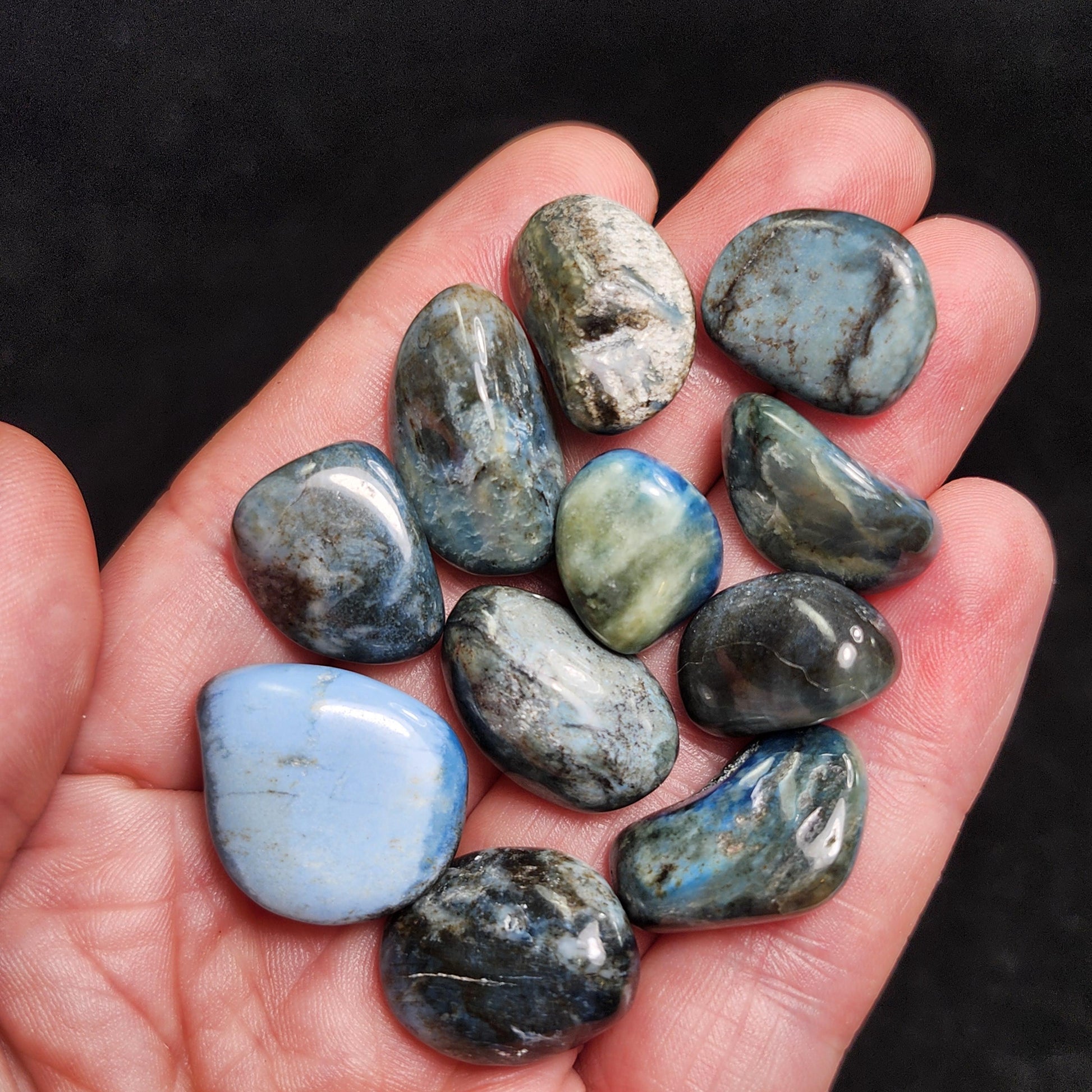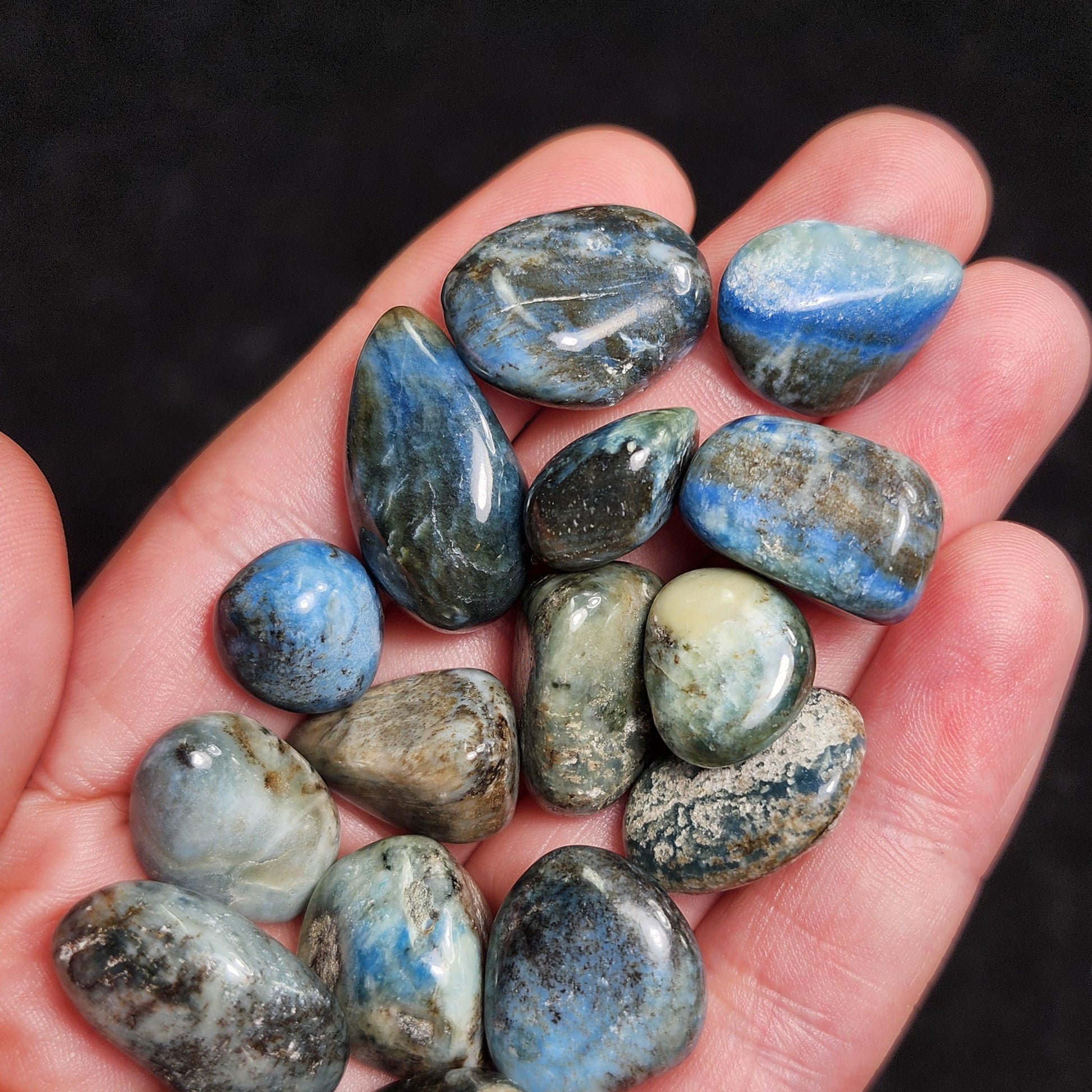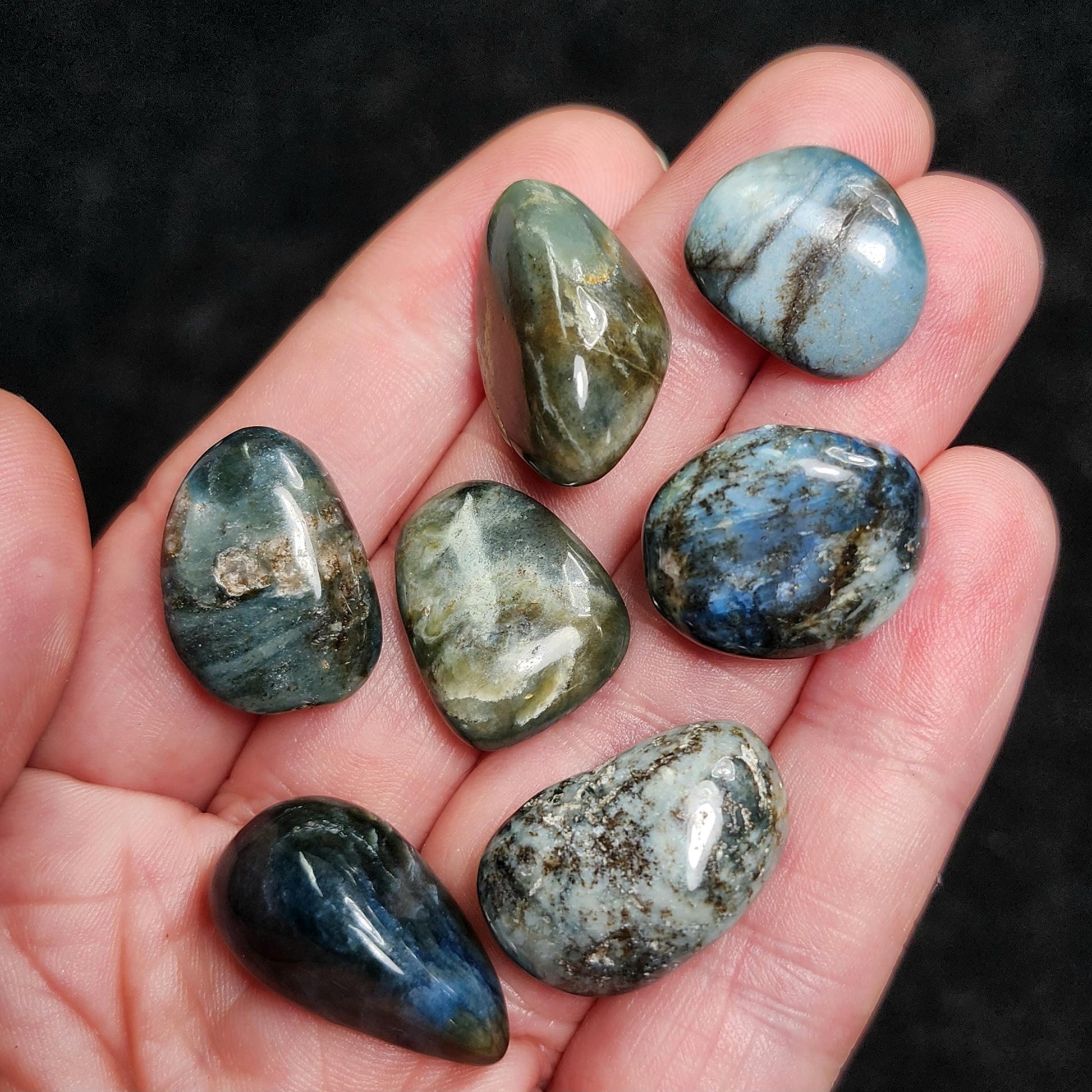 This high-graded Siberian Dianite has been tumbled to a smooth polish. Showcasing brilliant blue coloring swirled among grey and other neutral colors, each specimen has a unique pattern.