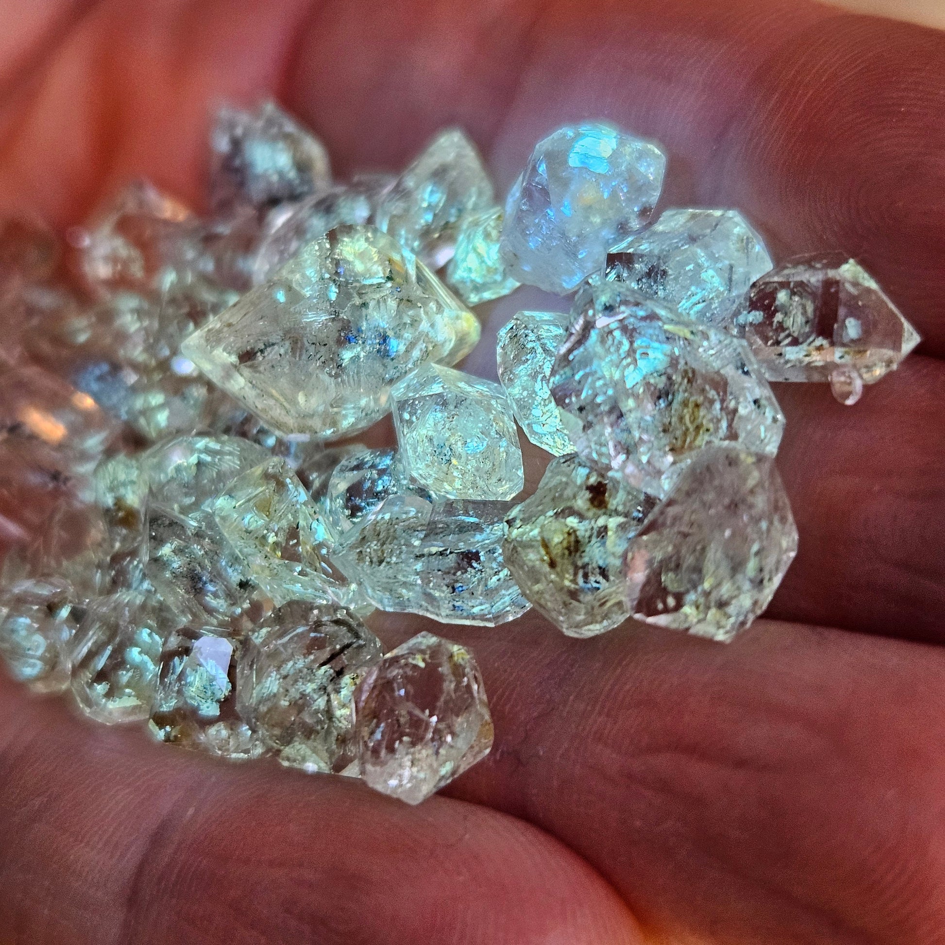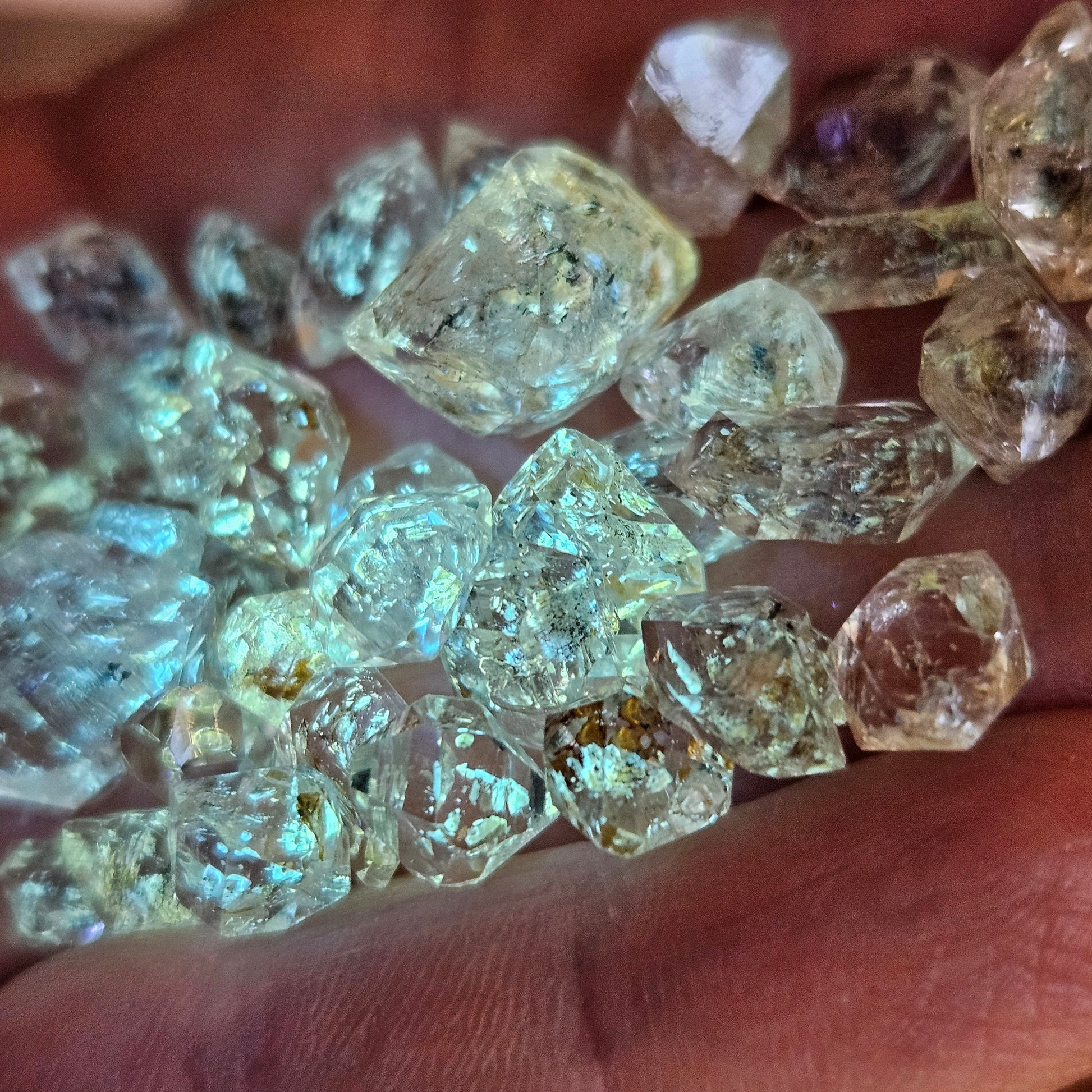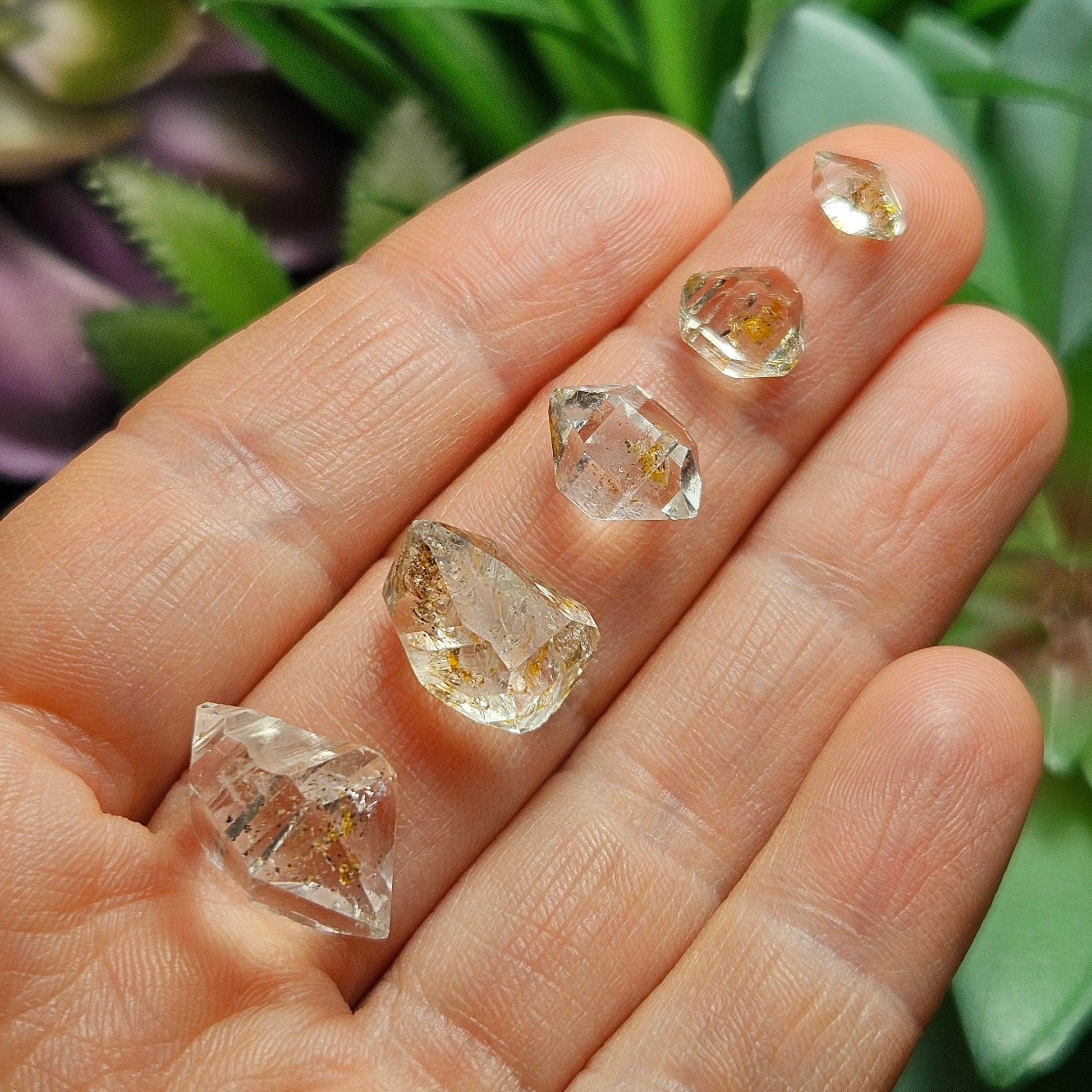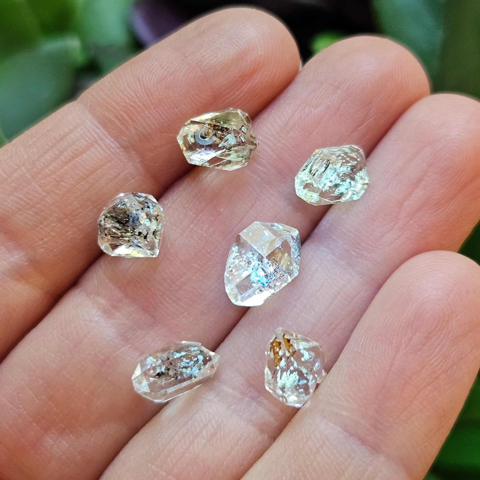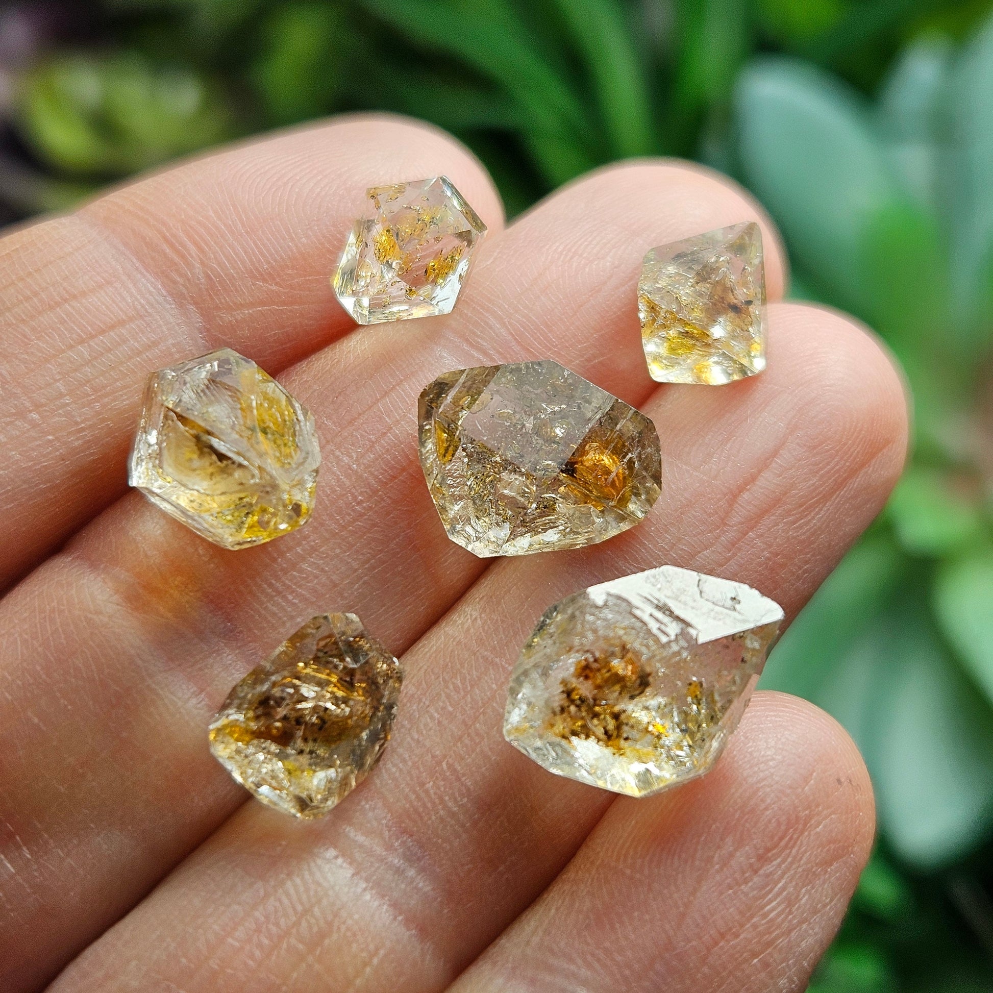 These double terminated crystals are unique from regular Quartz because they contain inclusions of 3 materials: gas, water, and oil. The petroleum contained within glows fluorescent because it is some of the purest found on Earth! These unique specimens are also Window, or FENSTER Quartz and have skeletal growth patterns on both outer surfaces and inner depths of each stone. These highly sought after crystals really capture the magic of life, as the Quartz crystal grew while trapping liquid and air inside - utilizing Water, Air, Earth, and Fire Elements to be formed.