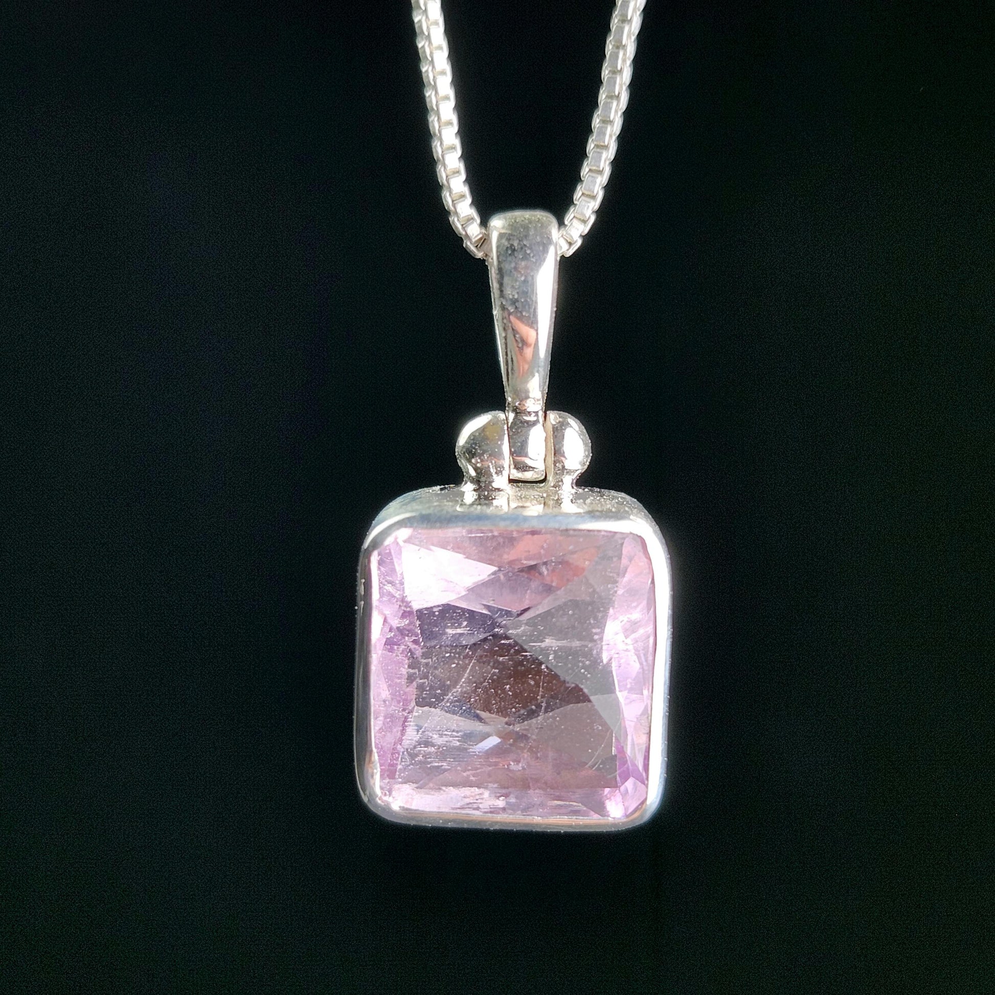 Faceted Kunzite Sterling Silver Pendant: Pale Pink Gemstone