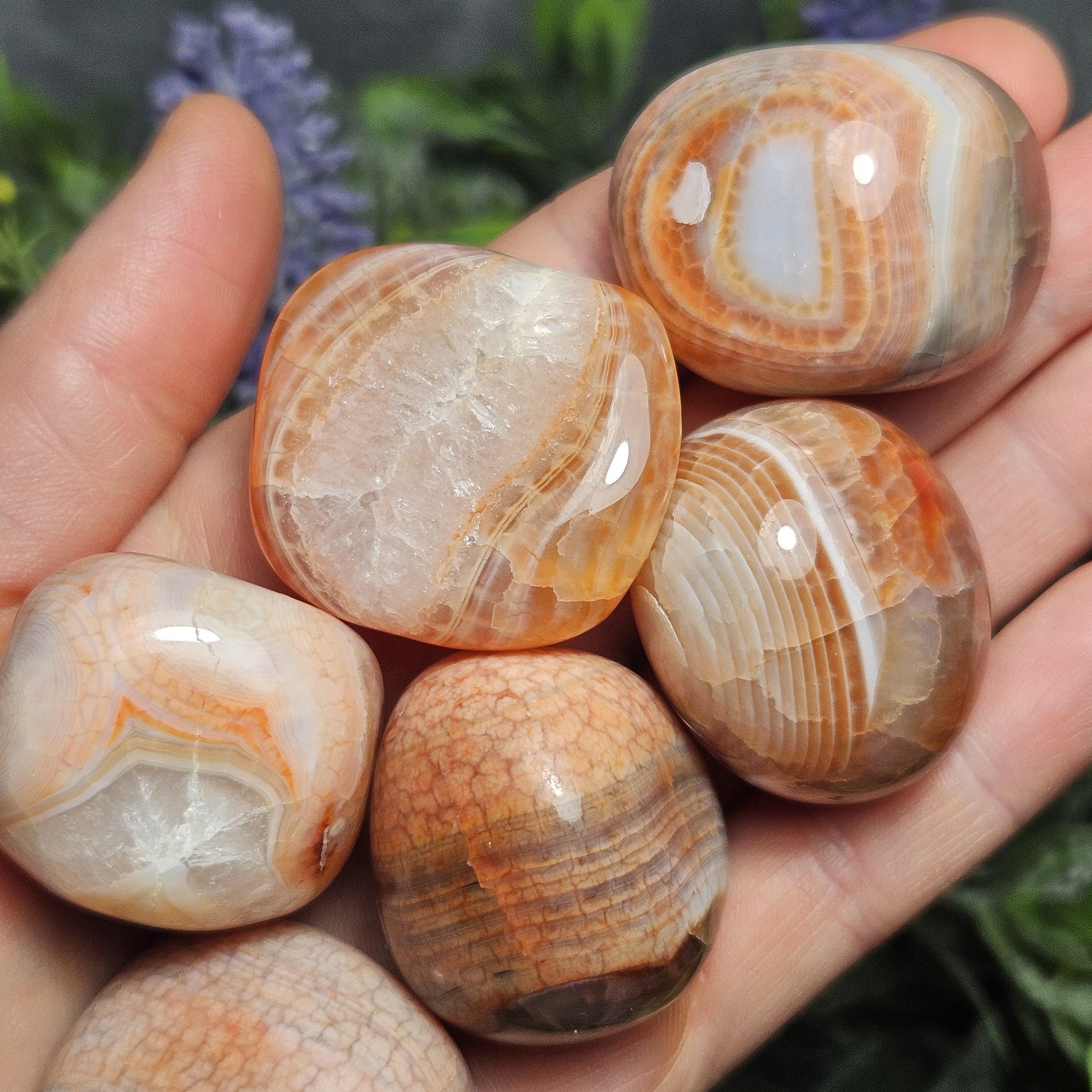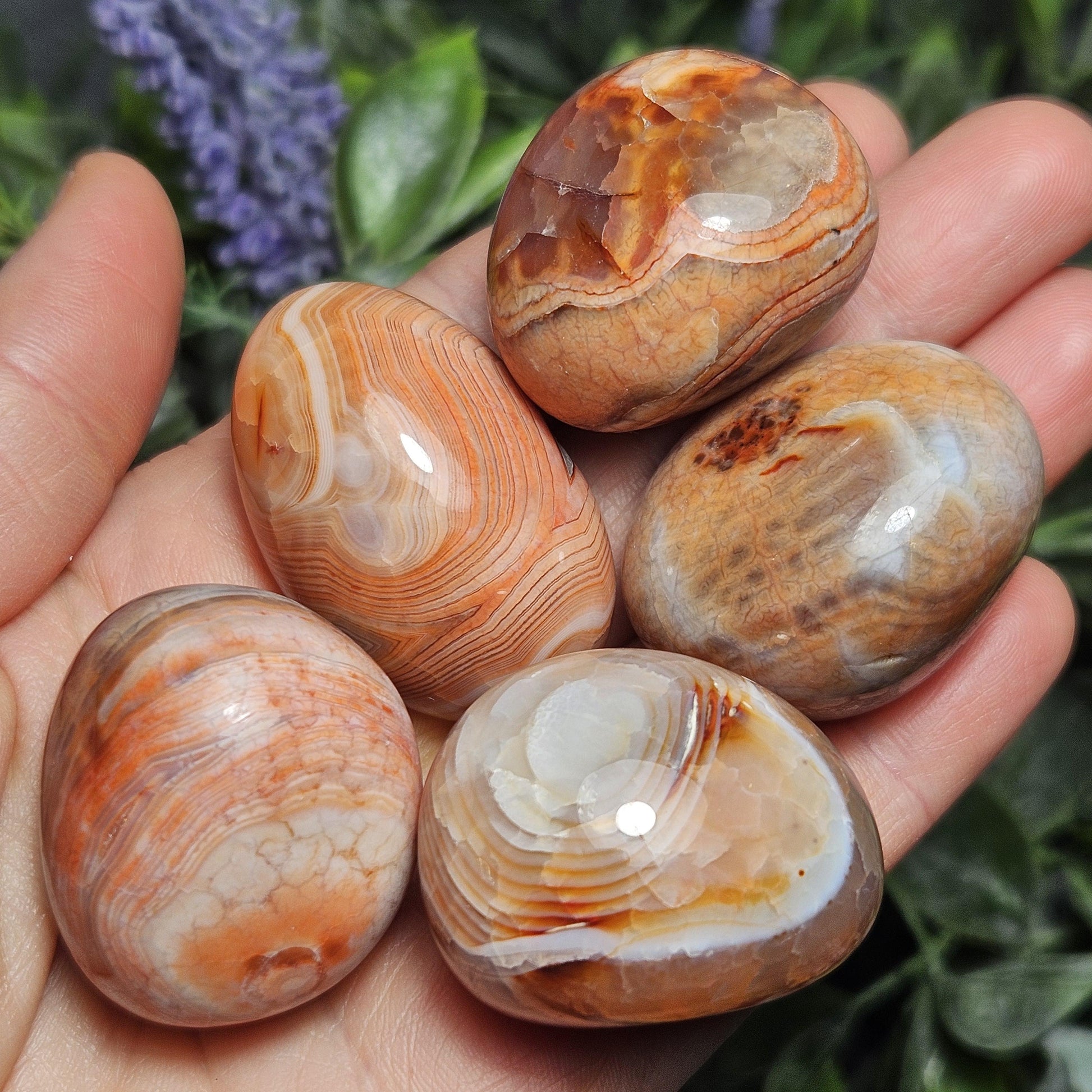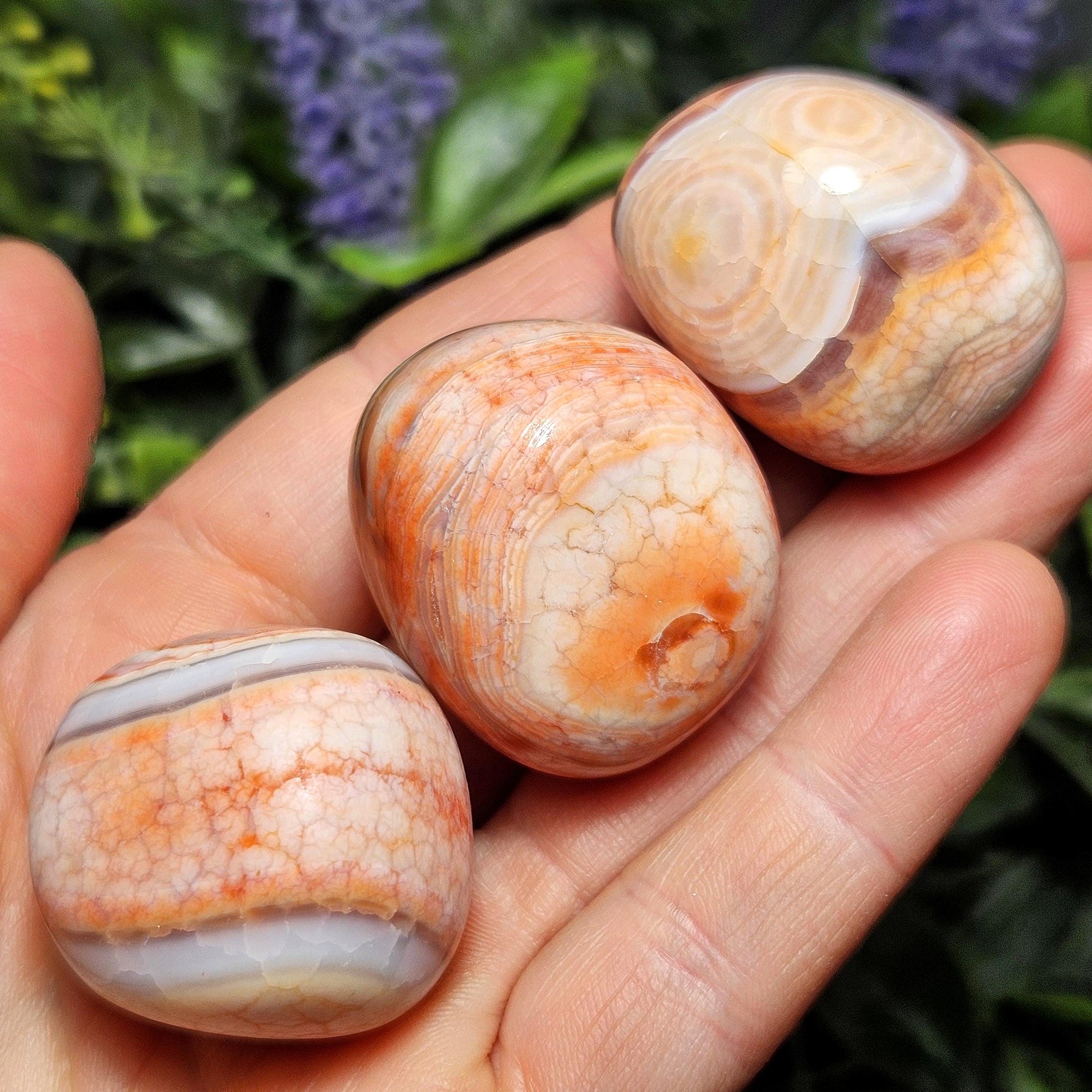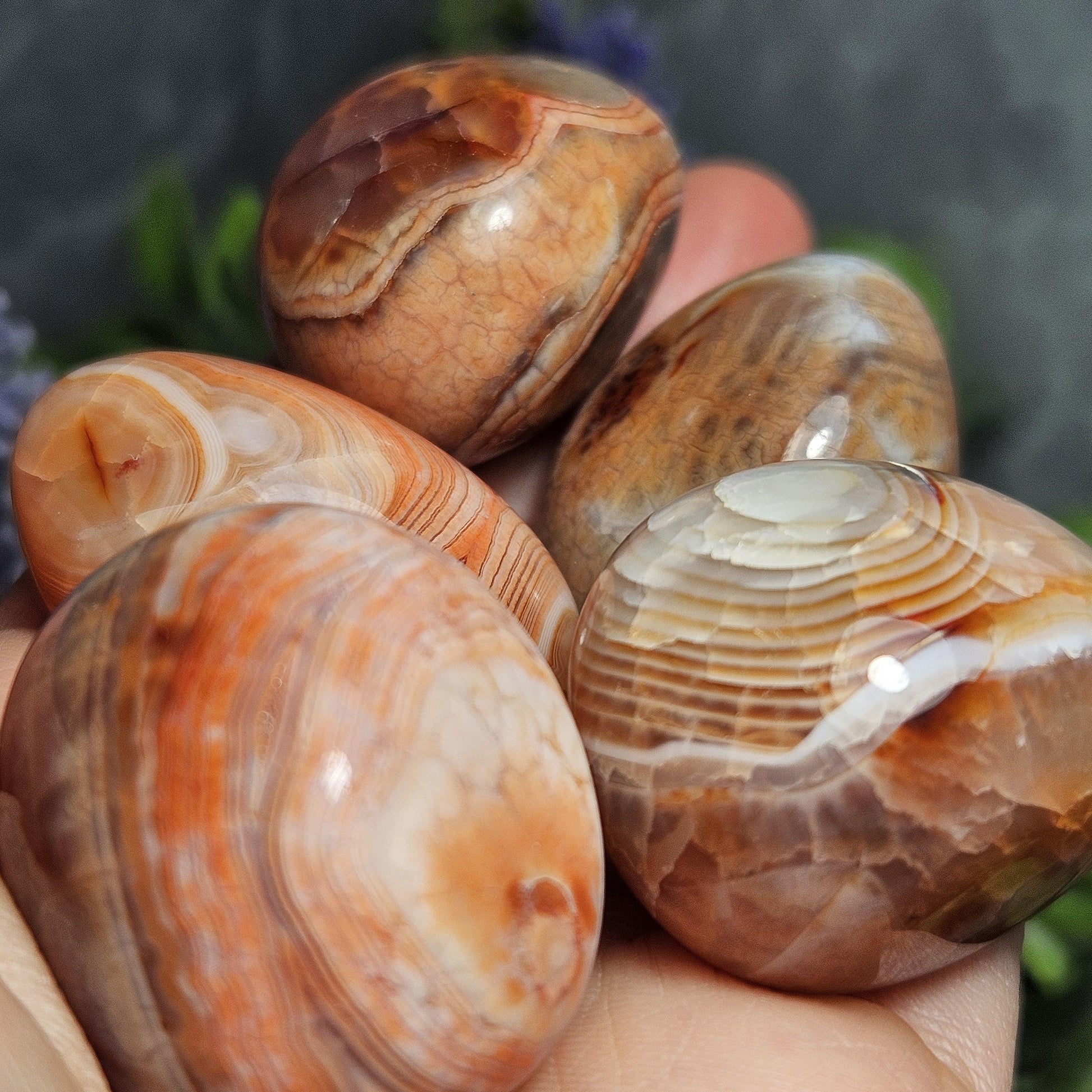 These Snakeskin Agate crystals from Brazil are large with rounded shapes and have been tumbled to a high sheen. They each show off the unique crackled markings that this material is known for, with a range of translucent to matte finishes and a wide array of color inclusions.