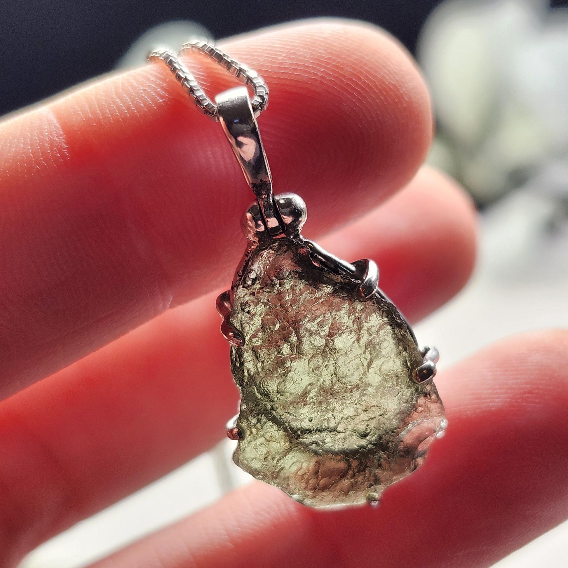 Genuine Moldavite Pendant, Sterling Silver