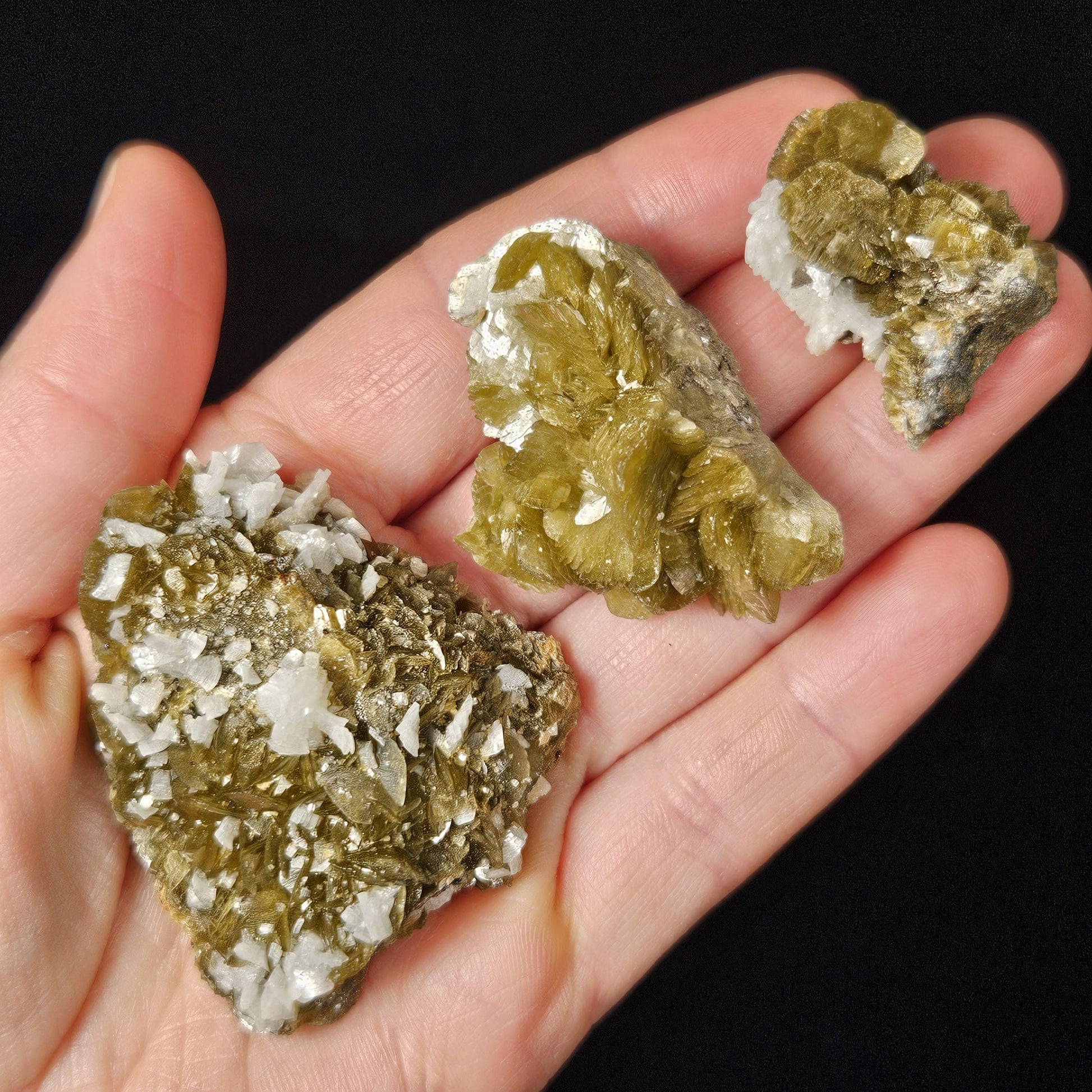 Chinese Siderite, especially with its distinctive bladed formations, is a remarkable mineral. These striking "blades" are a result of unique growth conditions and crystallization patterns deep within the Earth. These bladed Golden Siderite specimens come from the Wu Zhou, Guang Xi area of China. This area provides some of my favorite minerals in the world and this small lot of Siderite is a unique, high-grade offering. With their plated terminated formations and delicate structure, they stand out as collectible mineral specimens. Additional mineral inclusions are speckled throughout the lot.