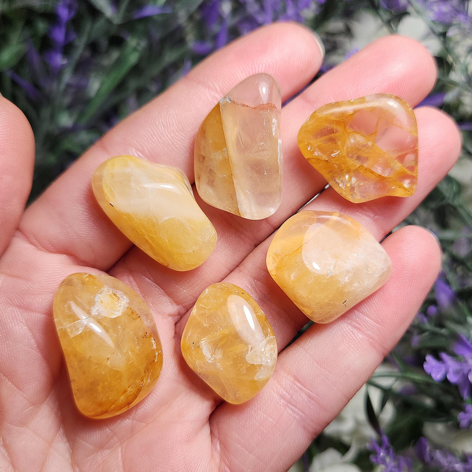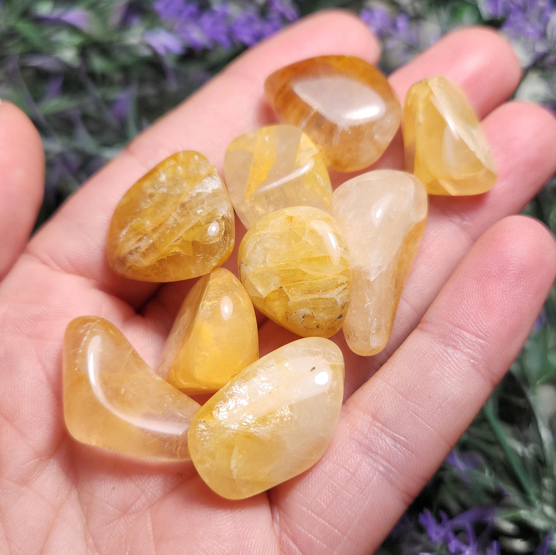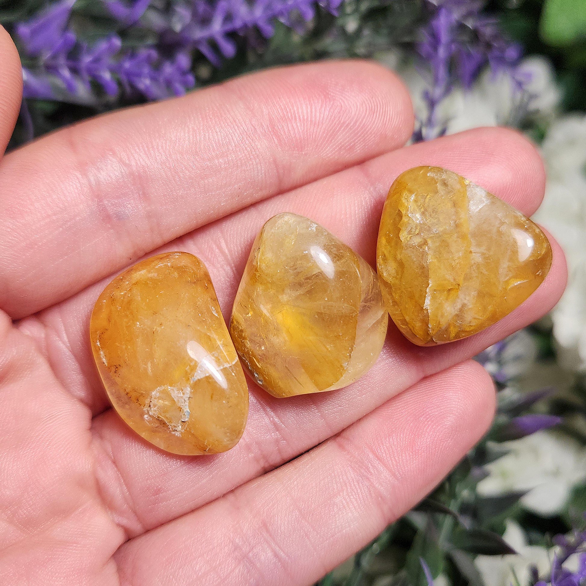 These Golden Healer Quartz crystals have been tumbled to a smooth polish and each showcase a light golden hue. Each specimen measures between .5 and .75 inches in size.
