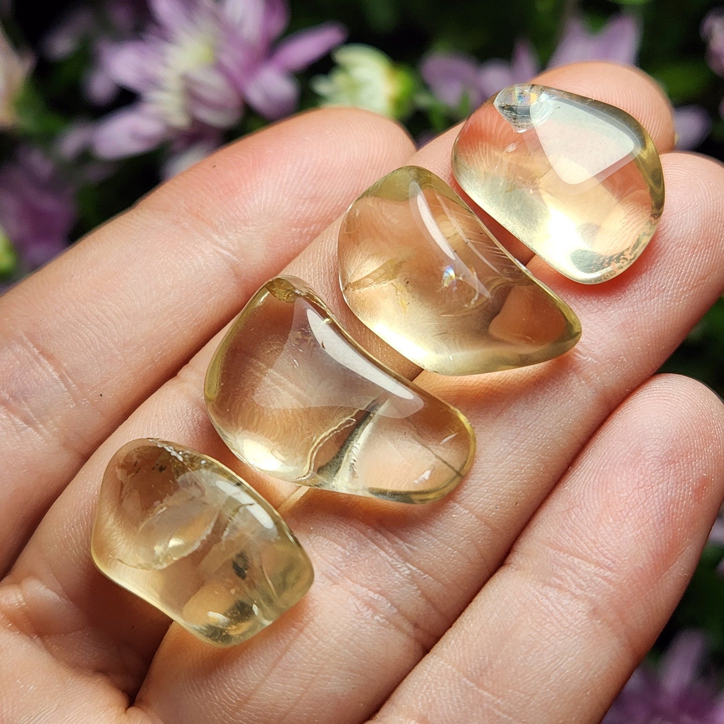 These Golden Labradorite, or Bytownite, from Brazil chave ben tumbled to a high sheen and exhibit a warm, glowing translucence. Each has its own unique freeform shape.
