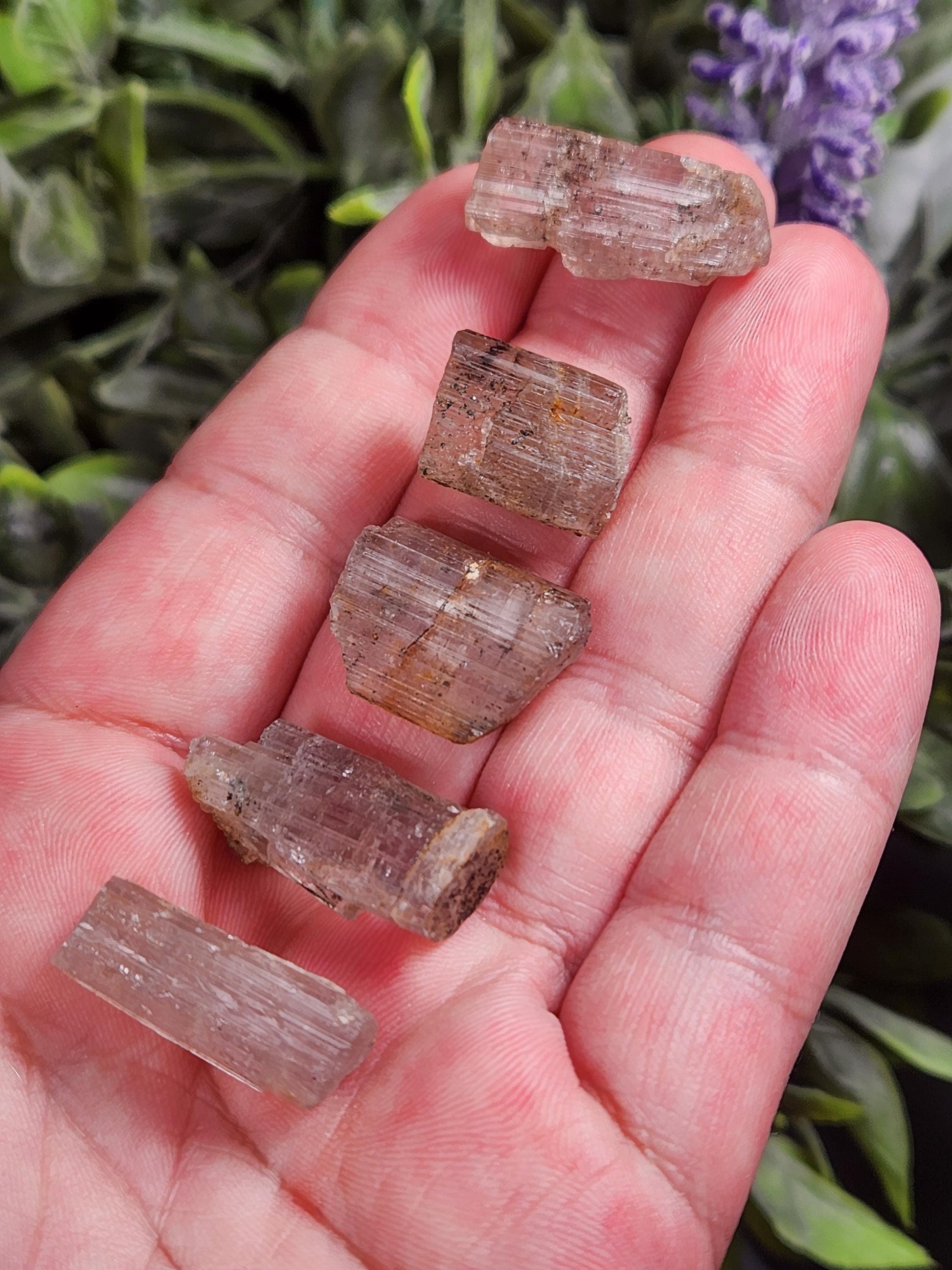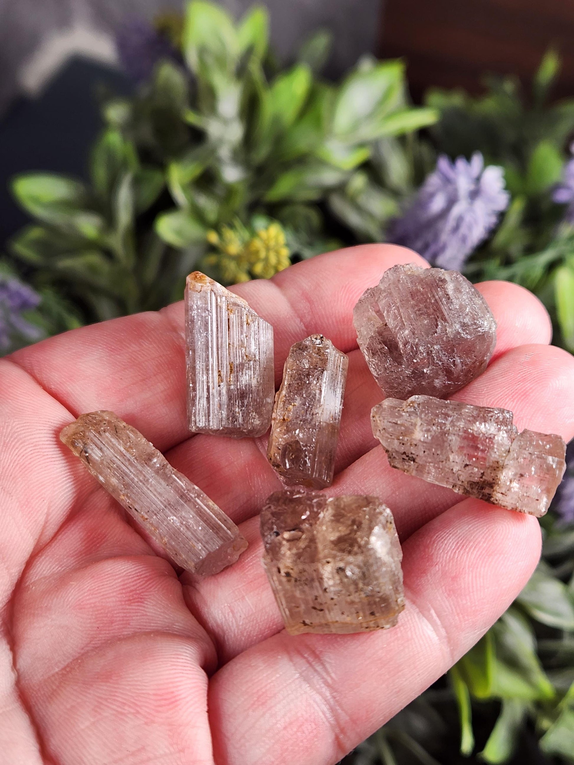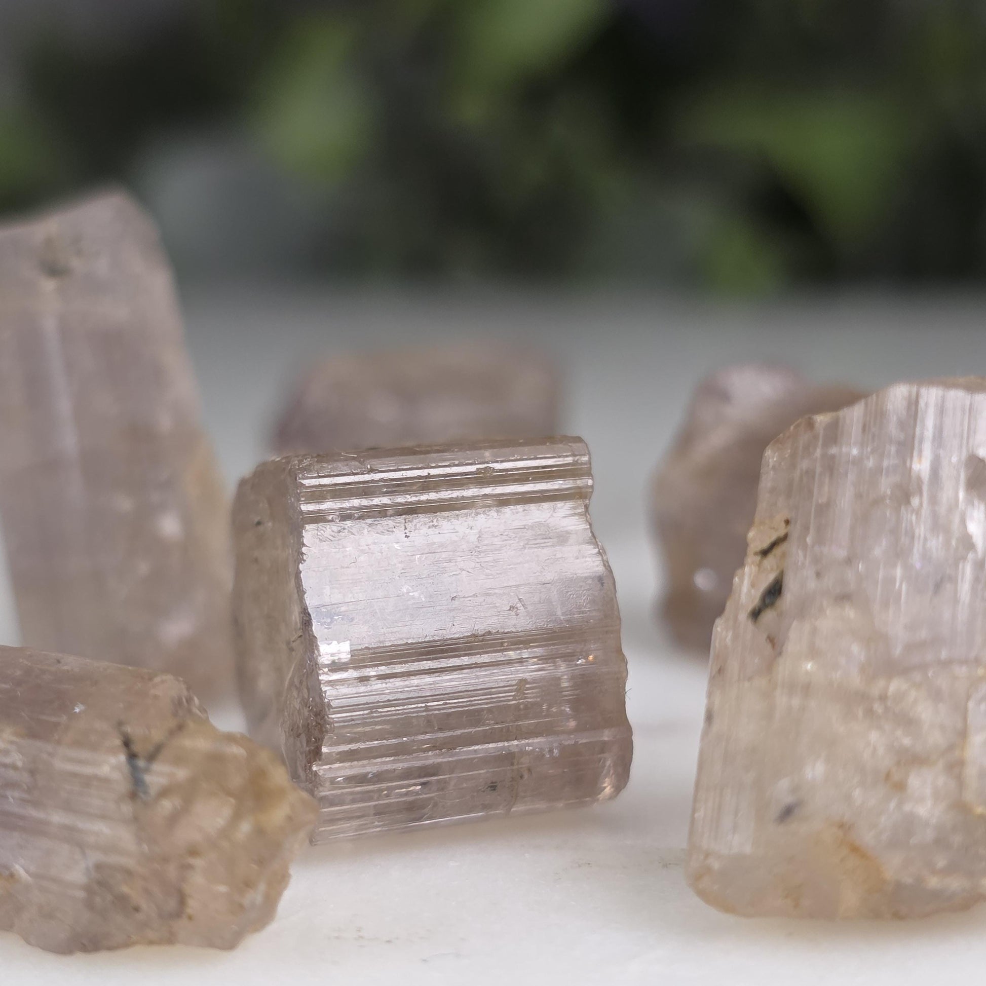 This rare variety of Scapolite displays a captivating blend of golden tones with delicate lavender hues, creating a subtle yet ethereal glow. Sourced from the majestic Hindu Kush mountain range, these crystals are born from ancient tectonic forces and high-altitude metamorphic activity, making them both visually and geologically unique . Each specimen weighs between 4 grams and 6 grams.