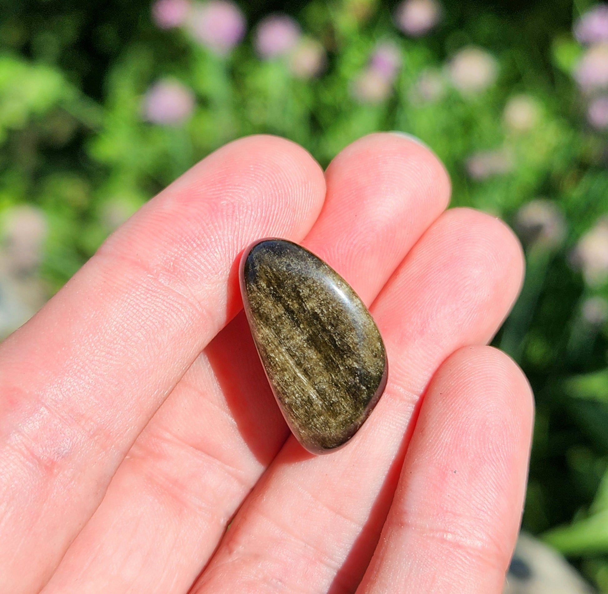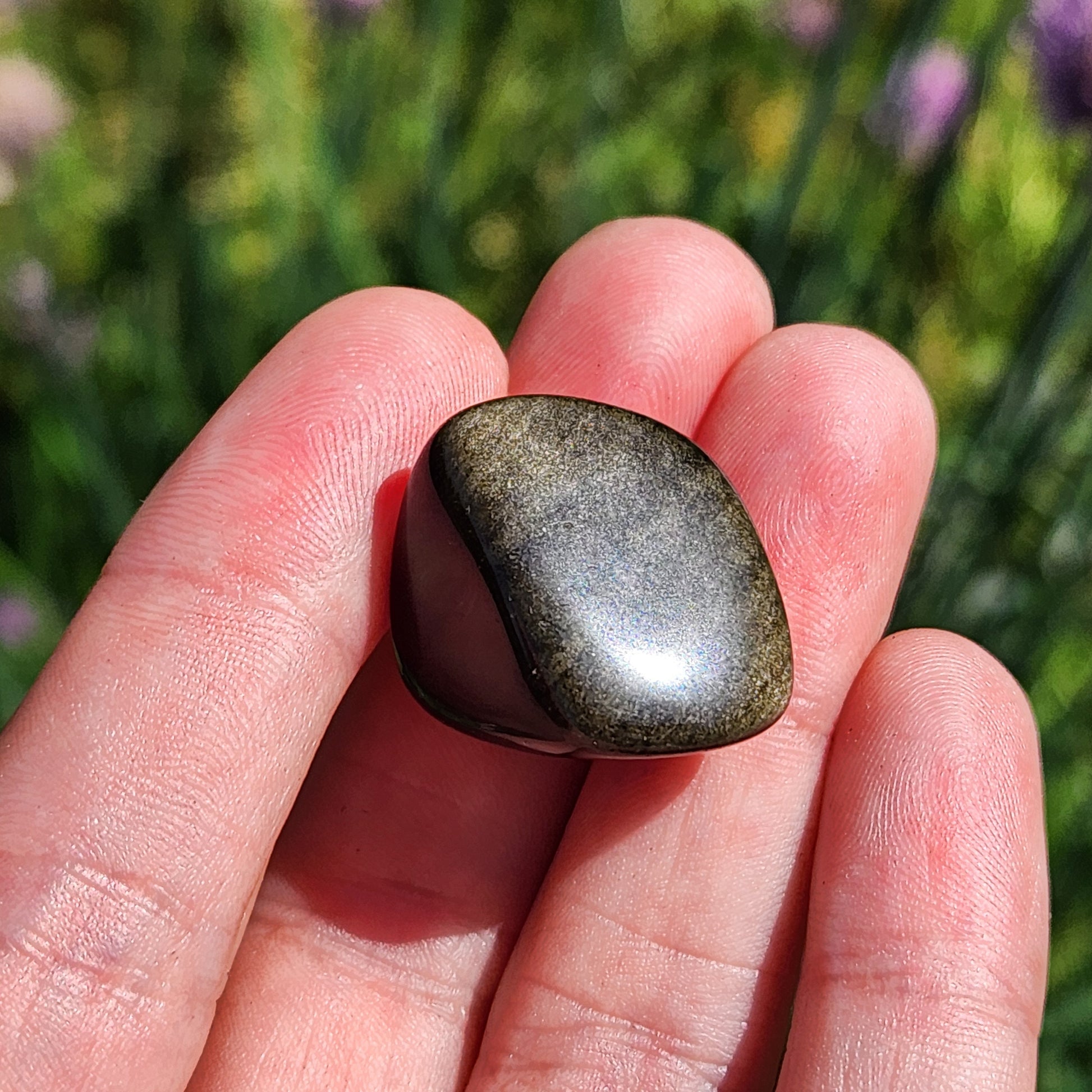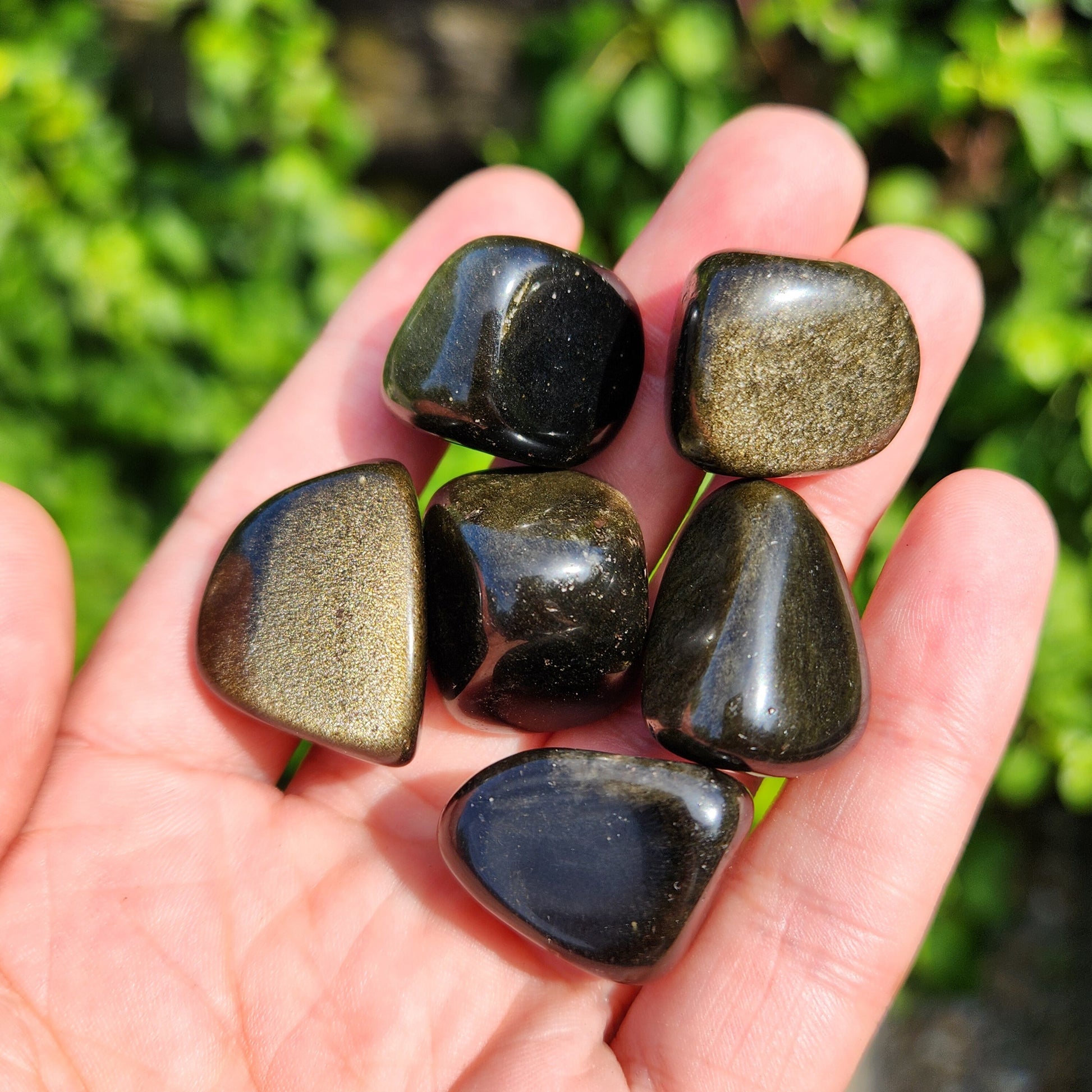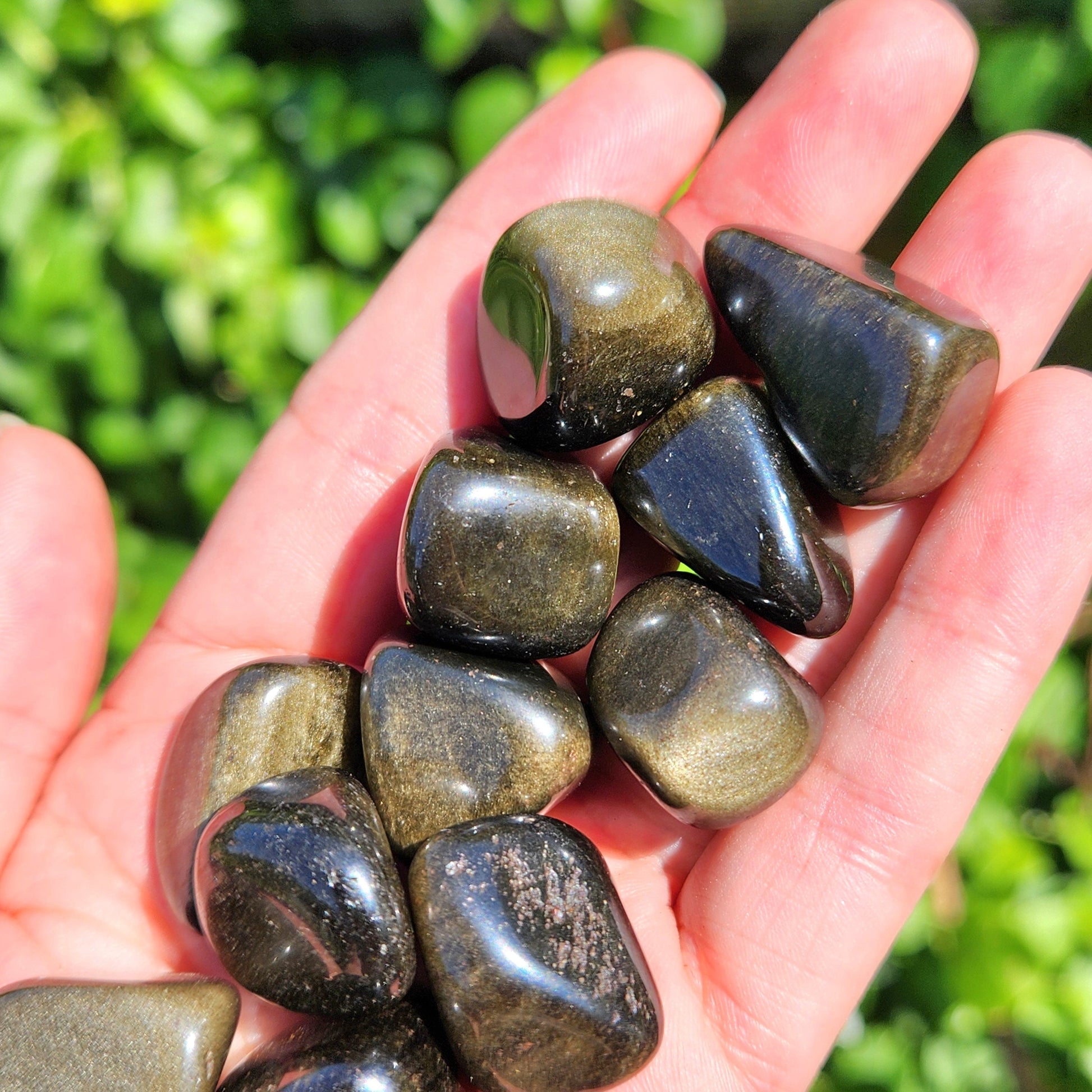 These polished Obsidian crystals from Mexico are black with a shimmering gold sheen. Each unique specimen measures between .5 and .75 inches, weighing between 6 and 10 grams.