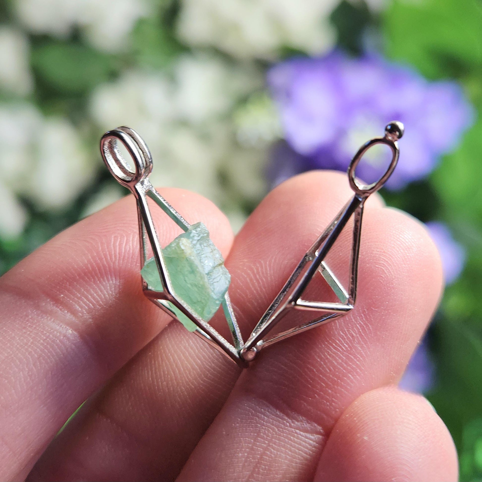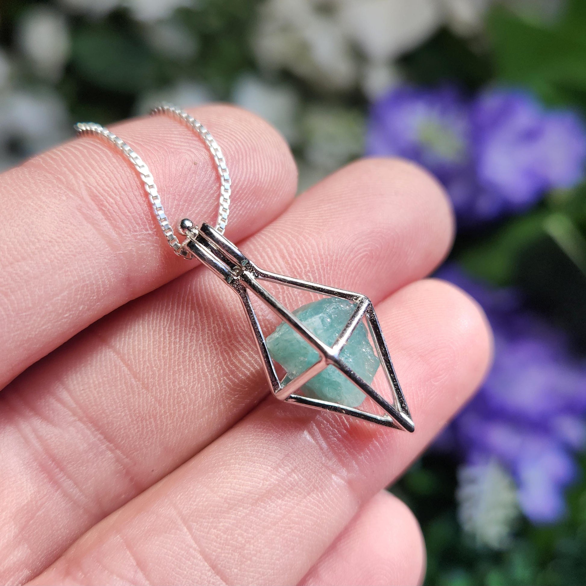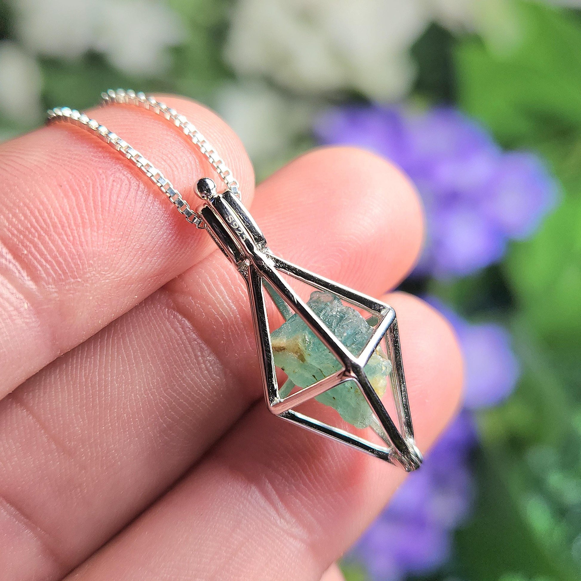 These rare Grandidierite crystals are in their raw, natural form. They exhibit a slightly translucent blue coloring with a greenish hue and have a sheen on their surface. I will hand select a crystal and nestle it inside of a stamped .925 Sterling Silver cage. Each pendant measures approximately 25mm by 12mm.