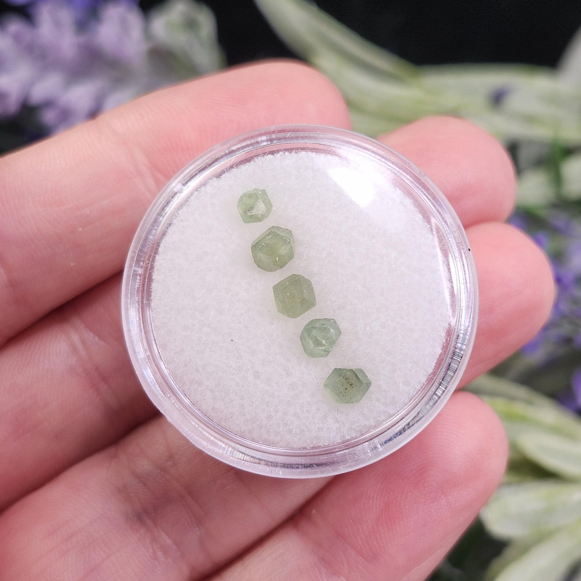 Green Demantoid Garnet Dodecahedron Crystals (Set of 5)