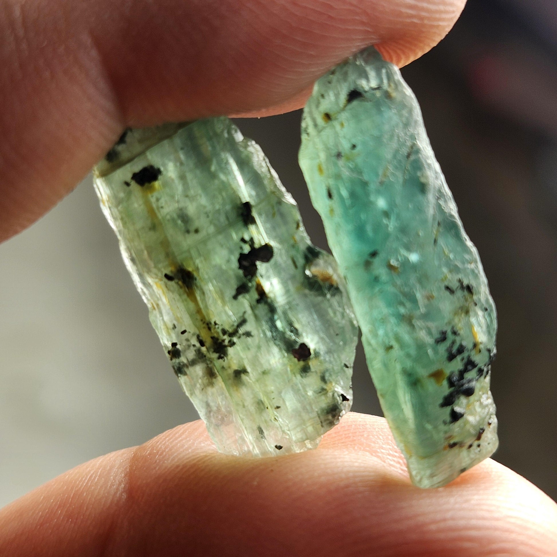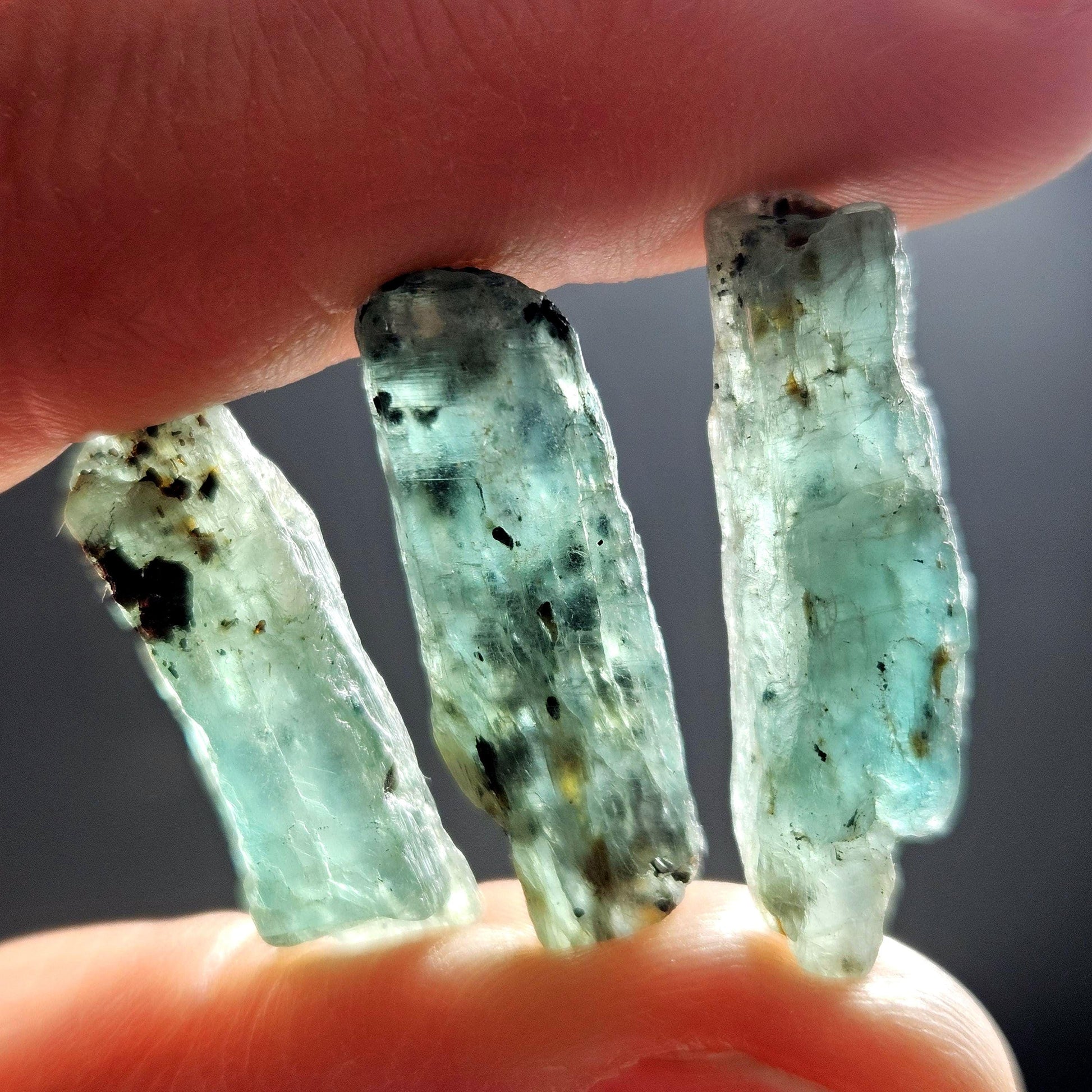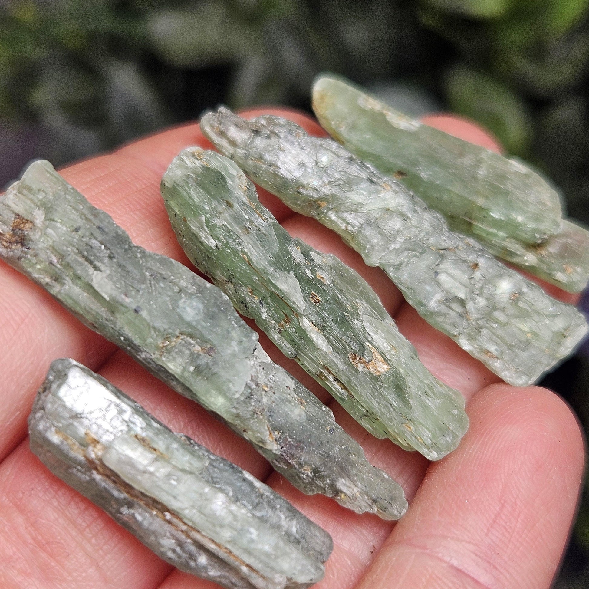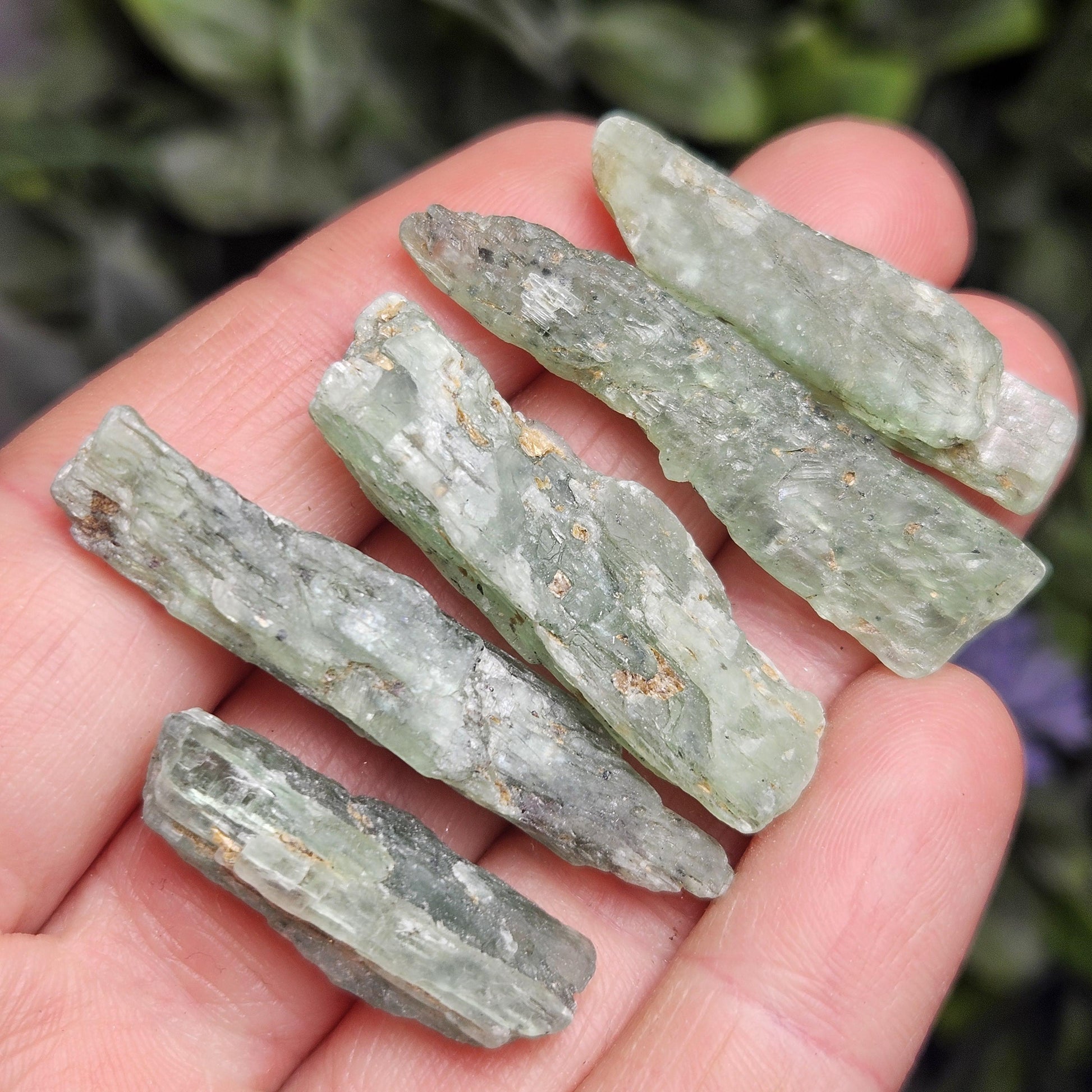 These Tanzanian Kyanite crystals have visible striations and a range of teal-green shades with partial translucence. Each piece has its own character, natural inclusions, and a range of freeform shapes.