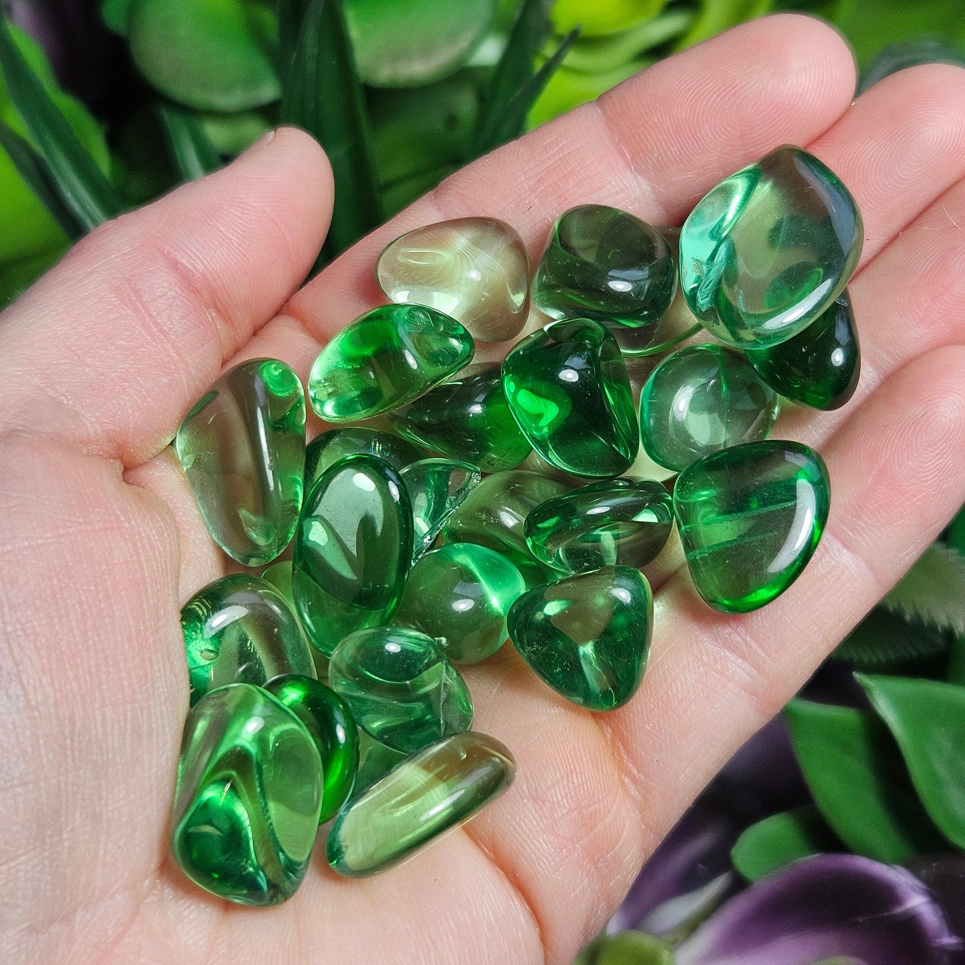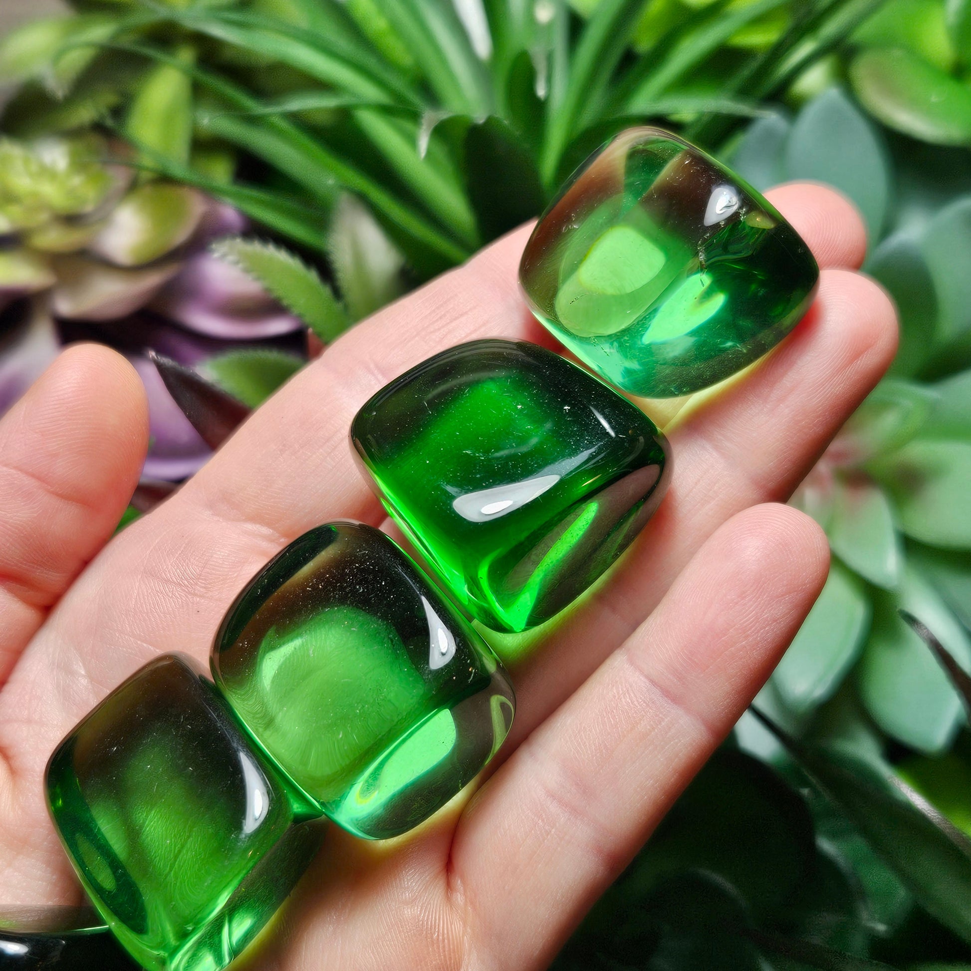 These Green Obsidian crystals have been enhanced and polished to a high sheen. We also offer many natural Obsidian options in the shop but love to include these colorful, lab replicated Obsidian for their color energy and ritual purposes.