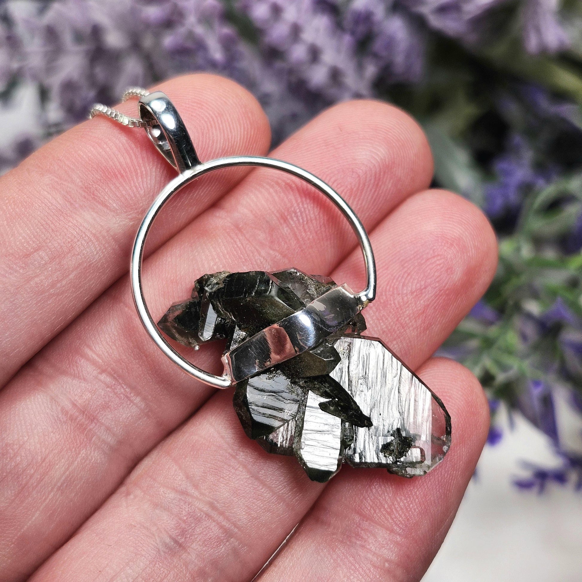 This Alpine Quartz crystal from the sacred Himalayan Mountain range exhibits multi-termination and a dark green Chlorite phantom within its translucence. This crystal has been custom created into a sturdy piece of jewelry using .925 Sterling Silver. This pendant measures approximately 46mm by 25mm. The silver chain used in the photos is to help envision how this pendant will look while adorned but is not included in the listing.
