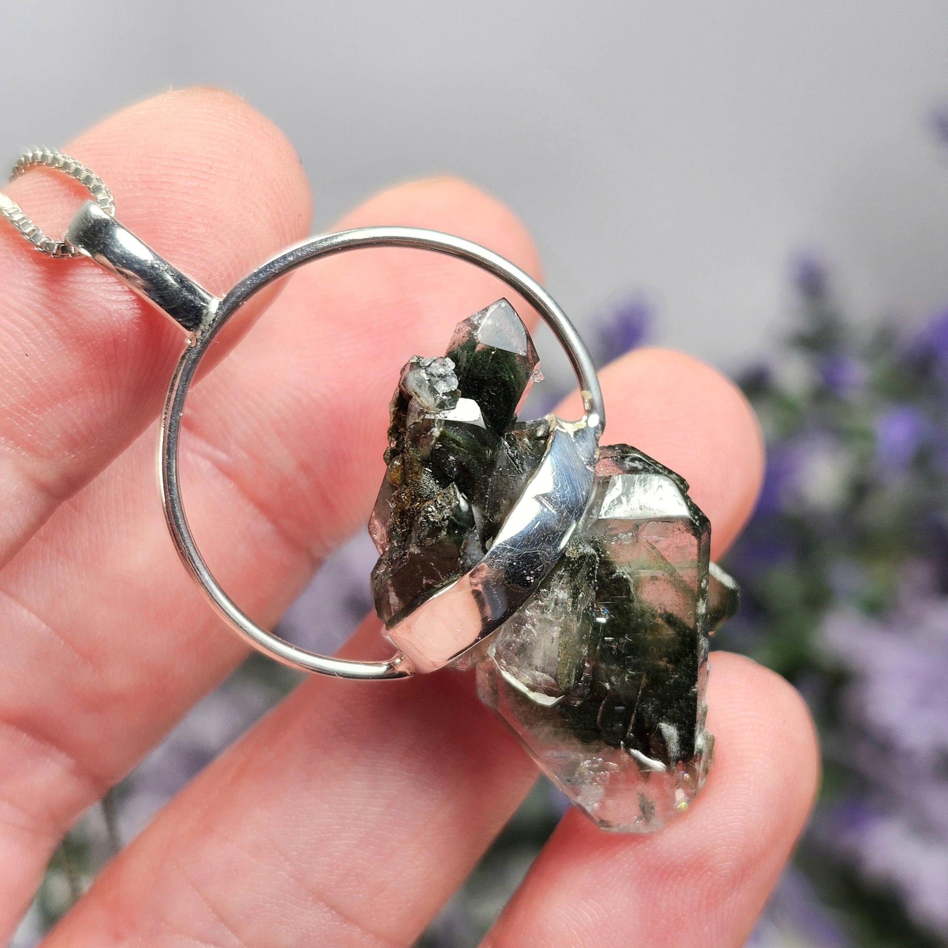 Sacred Chlorite Phantom Quartz Sterling Silver Pendant ~