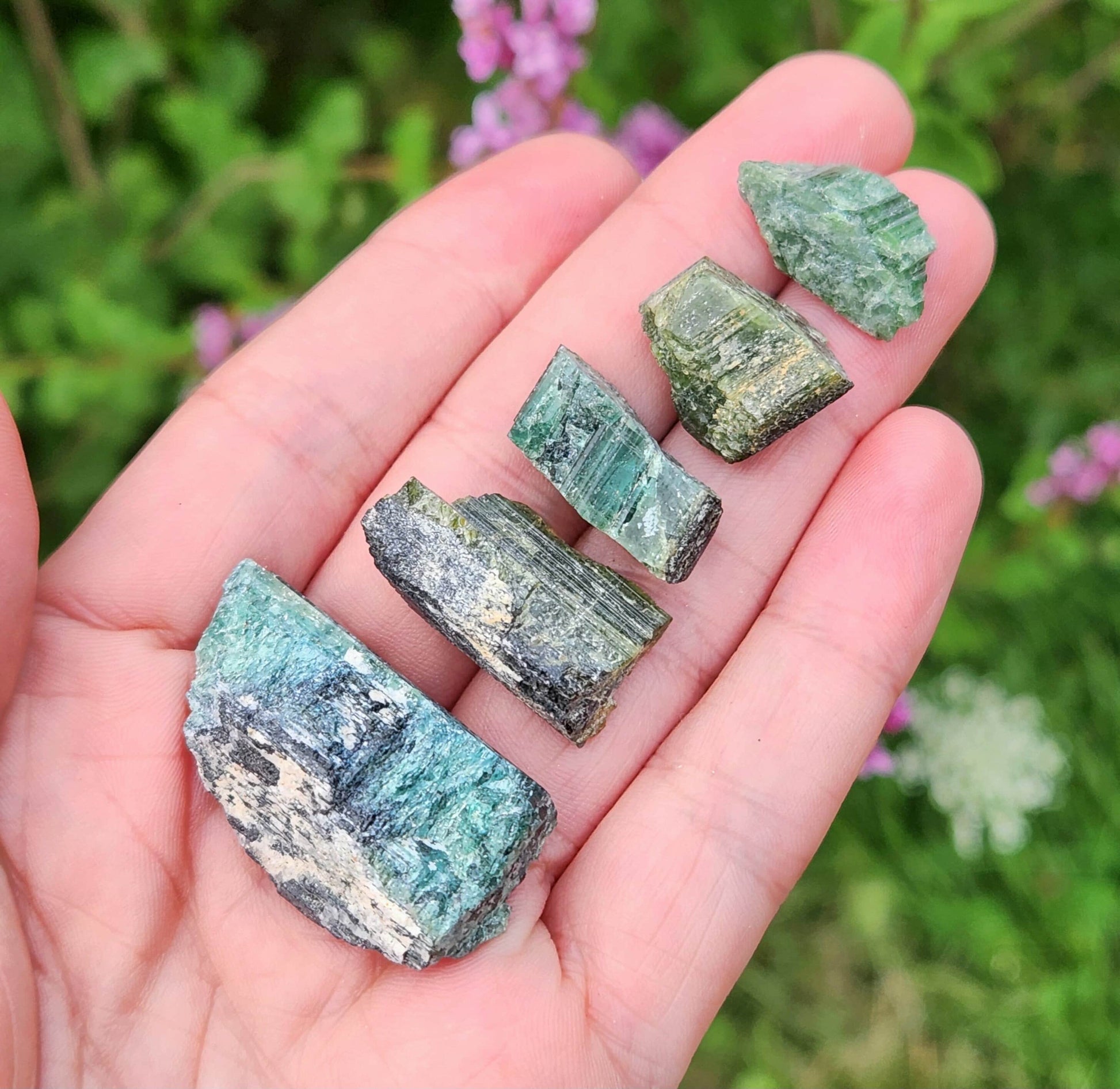 Green Tourmaline is all about connection with nature and the heart. It can aid with increasing communication with plants, elements, and other earth energies. It naturally dissolves energy blockages and negativity of all kinds - instantly grounding and transmuting. Just placing this crystal in your living space can help to create an amazing barrier and grounding energy around you and your home!