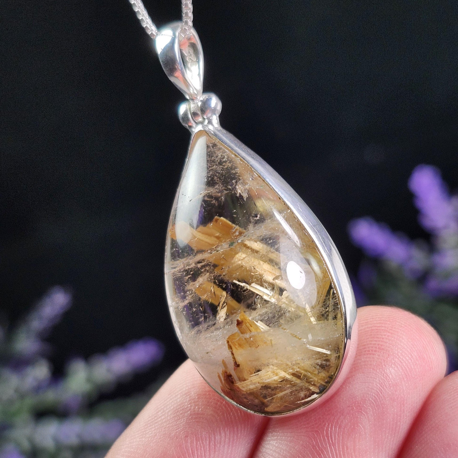 Rutilated Quartz Sterling Silver Pendant ~