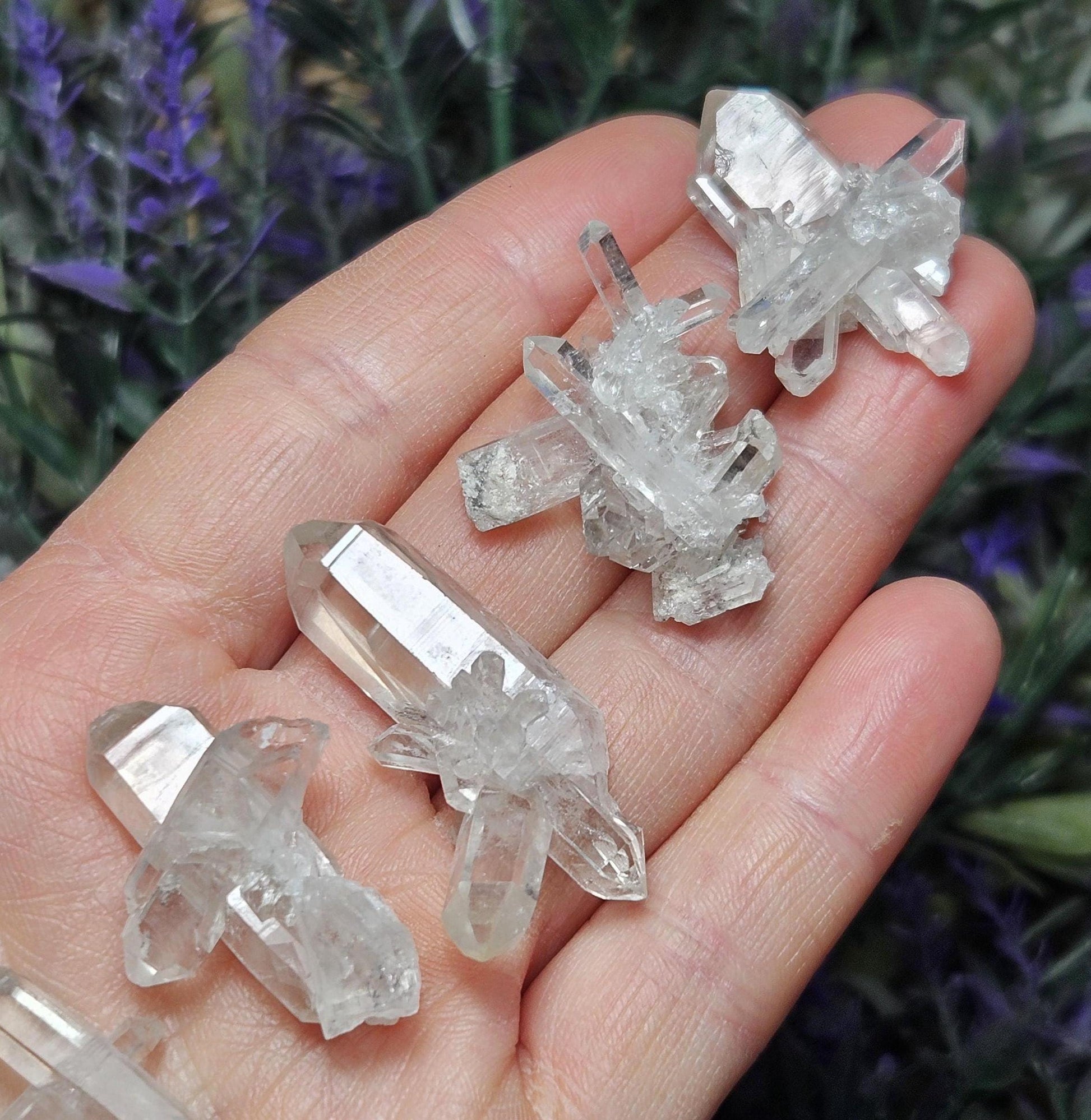 These raw crystals, from the Skardu region at the tip of the Himalayan Mountain range, exhibit terminated points, manifestation crystal inclusions growing within other crystals, and distinct milky "Faden" lines within. Each one has unique multi-facets and many showcase growth lines and tabular growth, classic to this high energy crystal. Some of these have a smoky hue, and many are clear - with all of them having distinct translucence.