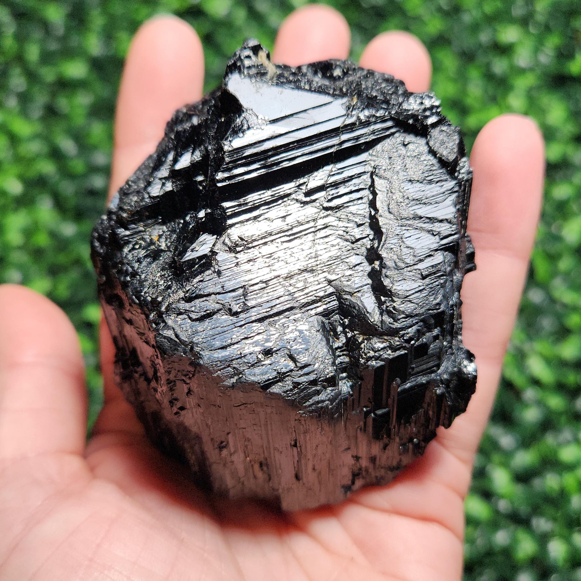 These Black Tourmaline stone are in their raw, natural form. These chunky stones exhibit distinct striations that catch and reflect light, creating a magnificent shine. Each specimen weighs between 300 grams and 400 grams.