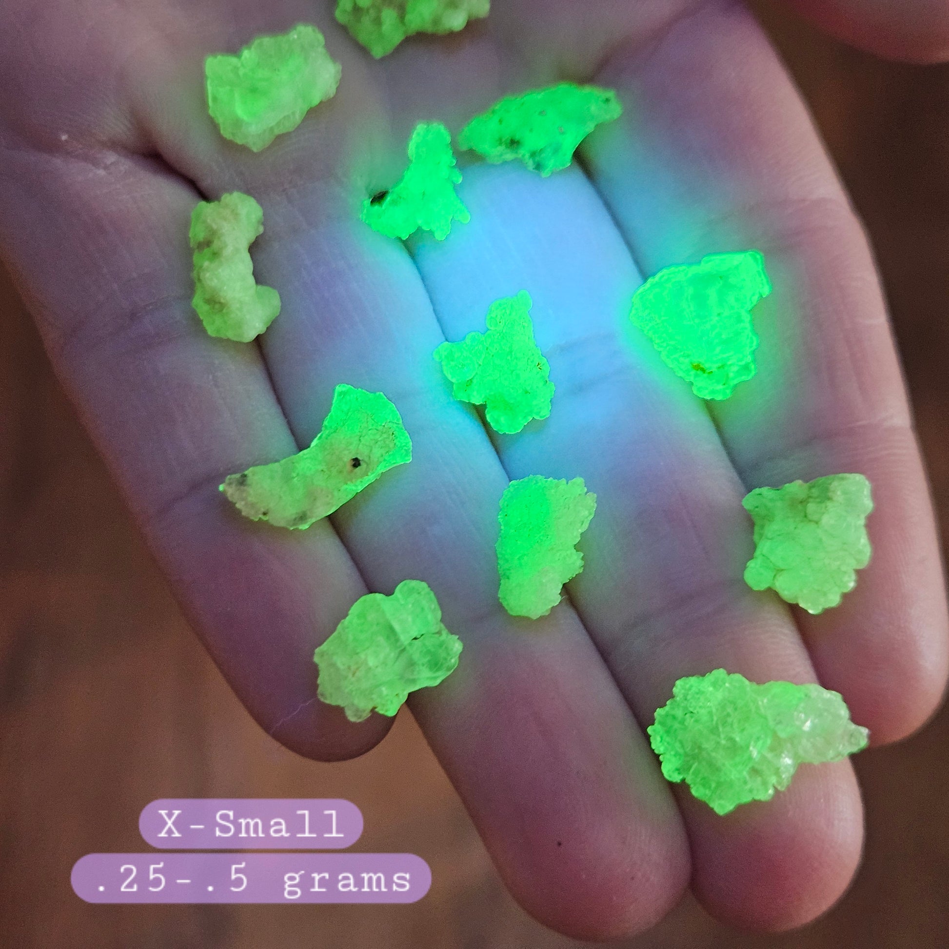 Hyalite is a special, colorless variety of Opal that grows in volcanic formations! Although these stones do not show typical opalescence, they have their own unique trait - fluorescence! Hyalite contains trace amounts of uranium within its silica structure, causing it to have a bright fluorescent glow.