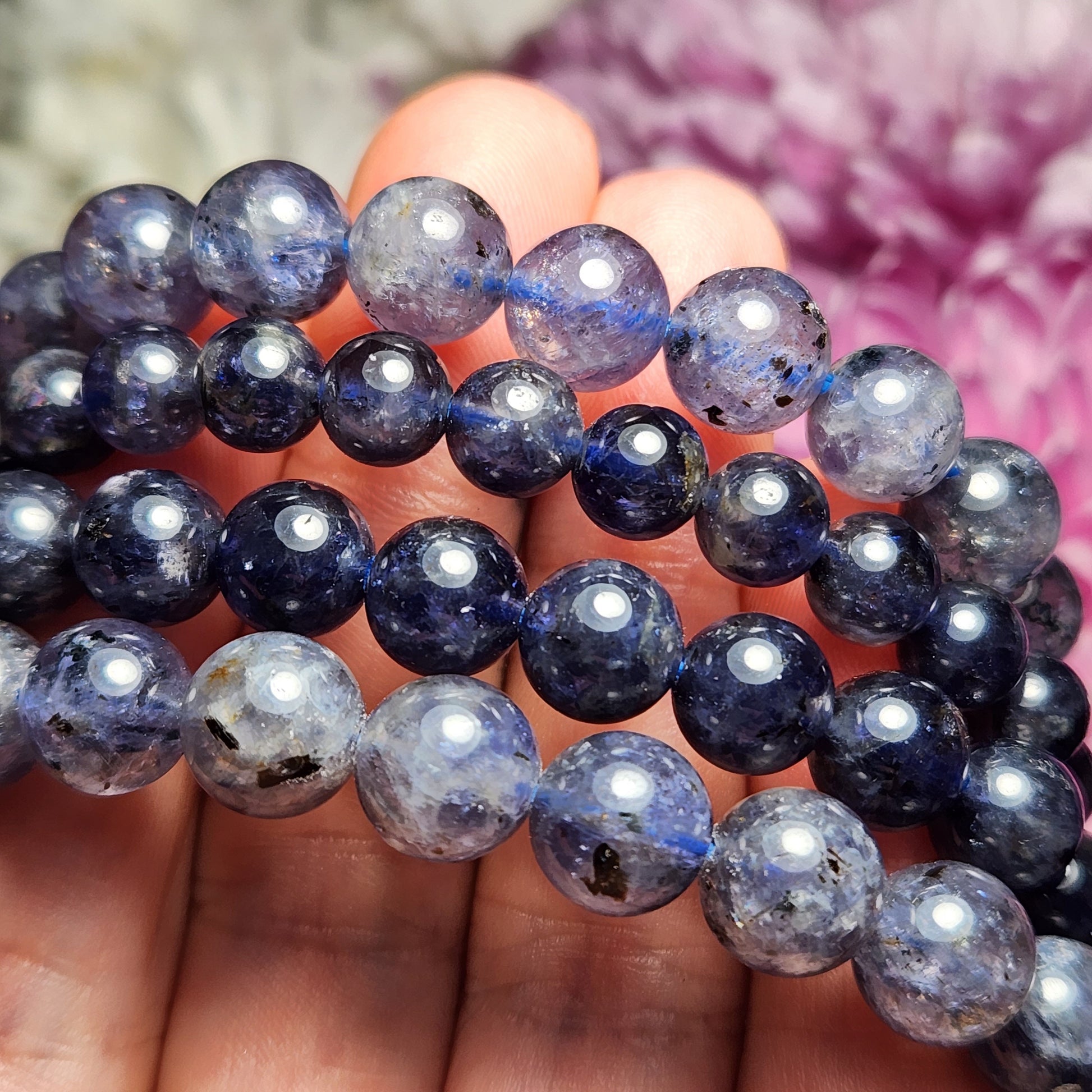 These Iolite stretch bracelets are created with 5-6mm beads that have been polished to a high sheen. Each bracelet measures approximately 7 inches.
