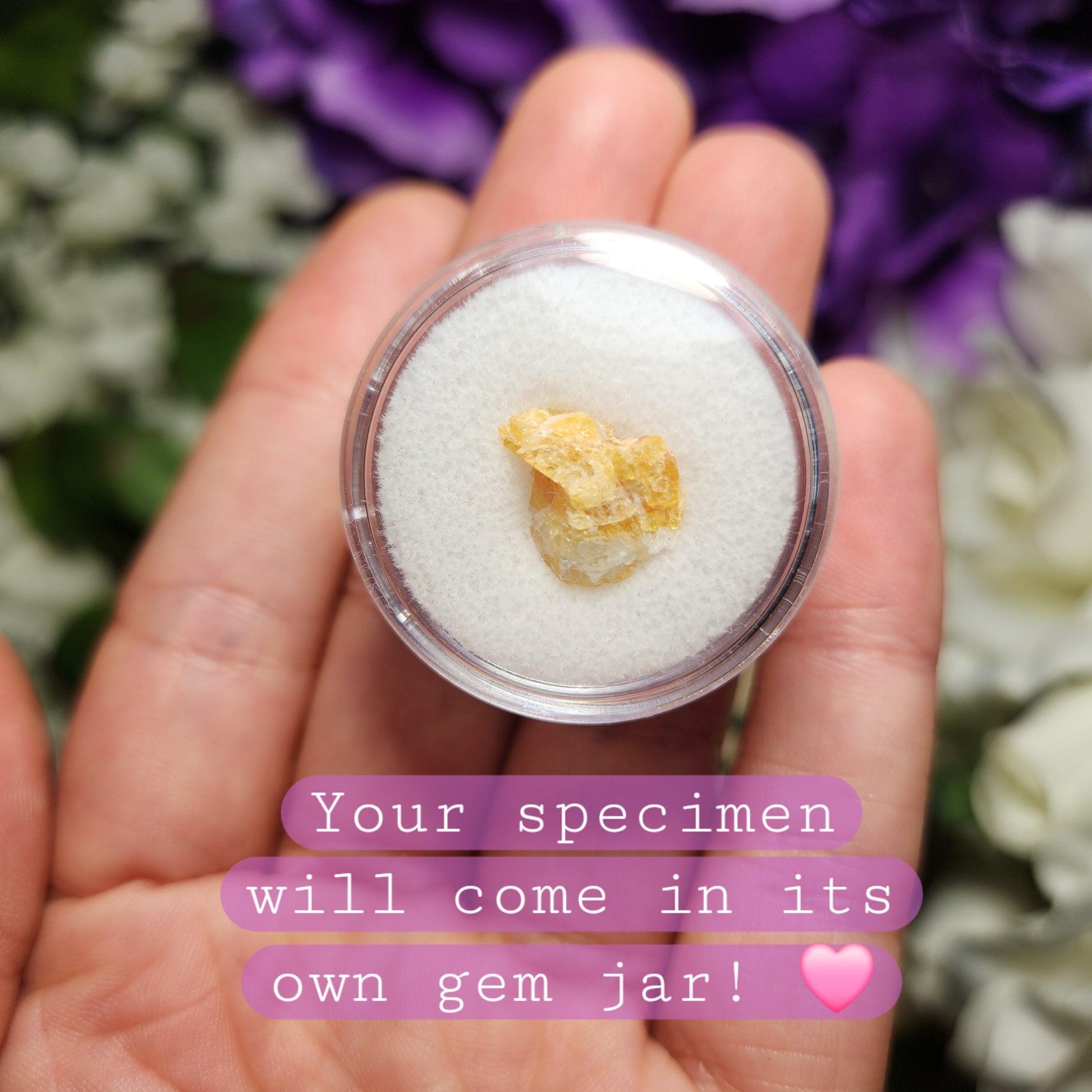 Johachidolite is an extremely rare mineral, found exclusively in Myanmar (formerly known as Burma). These specimens are raw and exhibit a creamy, light golden and milky white coloring. Johachidolite sometimes glows with a colorful, saturated brilliance when under a black light - a rare quality in the mineral kingdom, and some of these rare crystals may exhibit that trait! Your specimen will arrive within a plastic gem jar to ensure its safety.