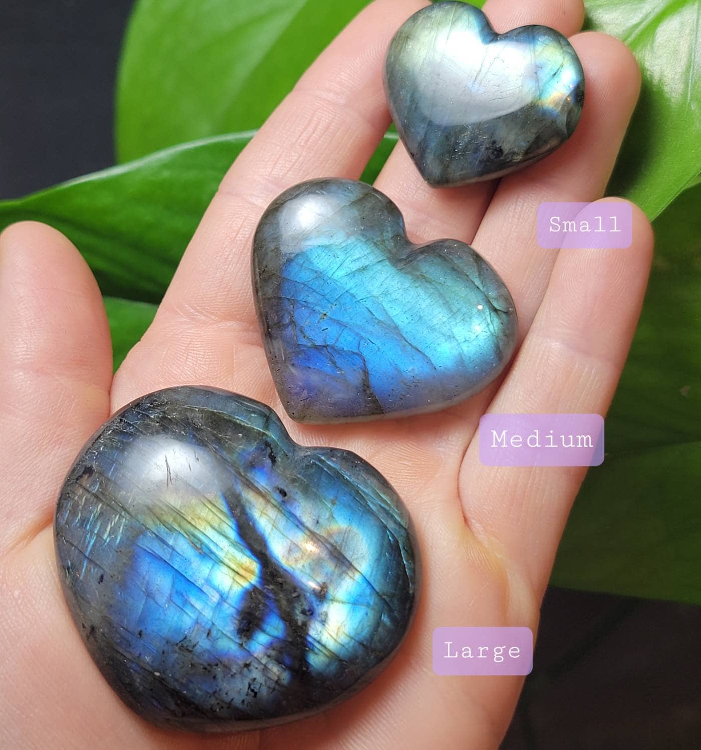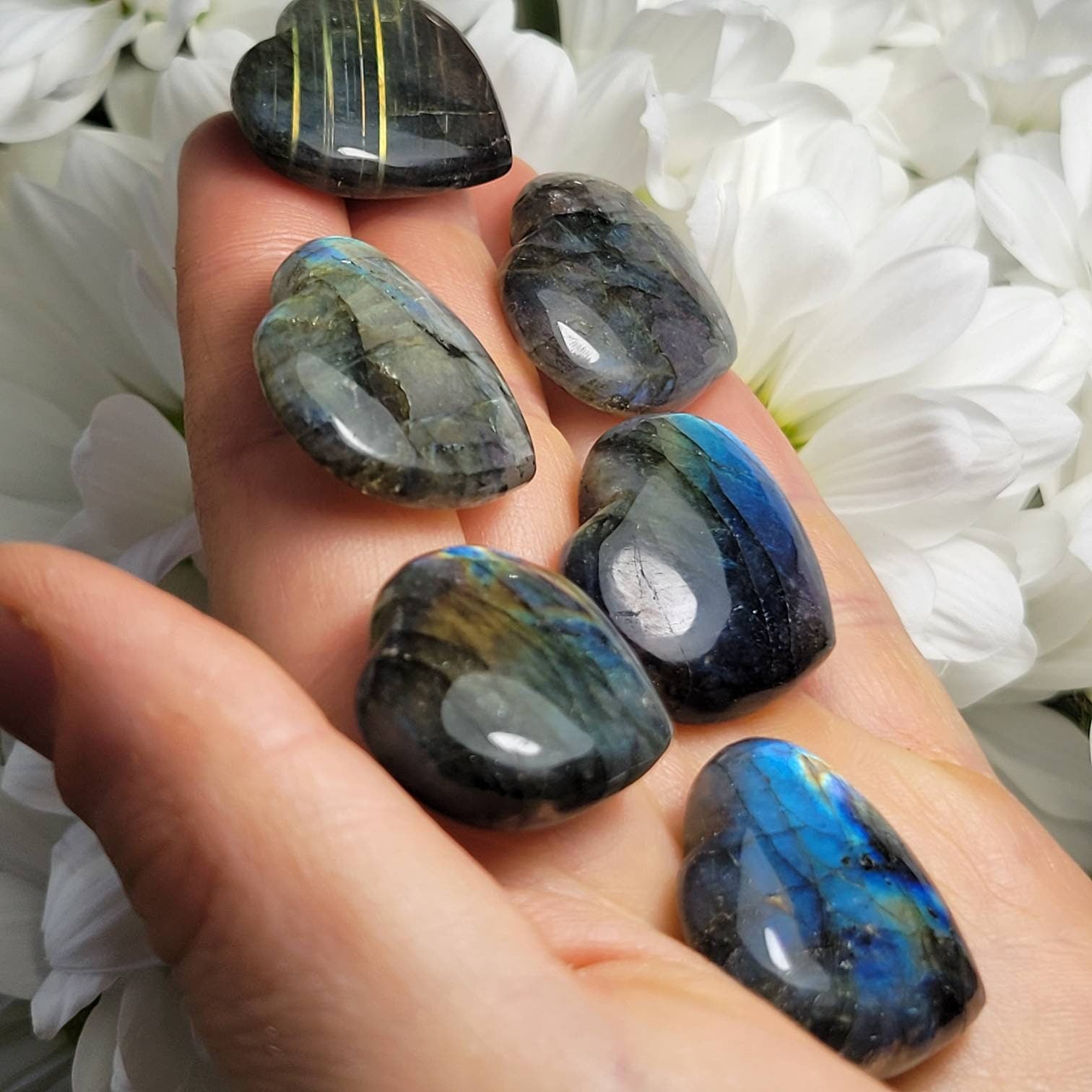 Each MEDIUM Labradorite heart carving measures 1 to 1.25 inches.