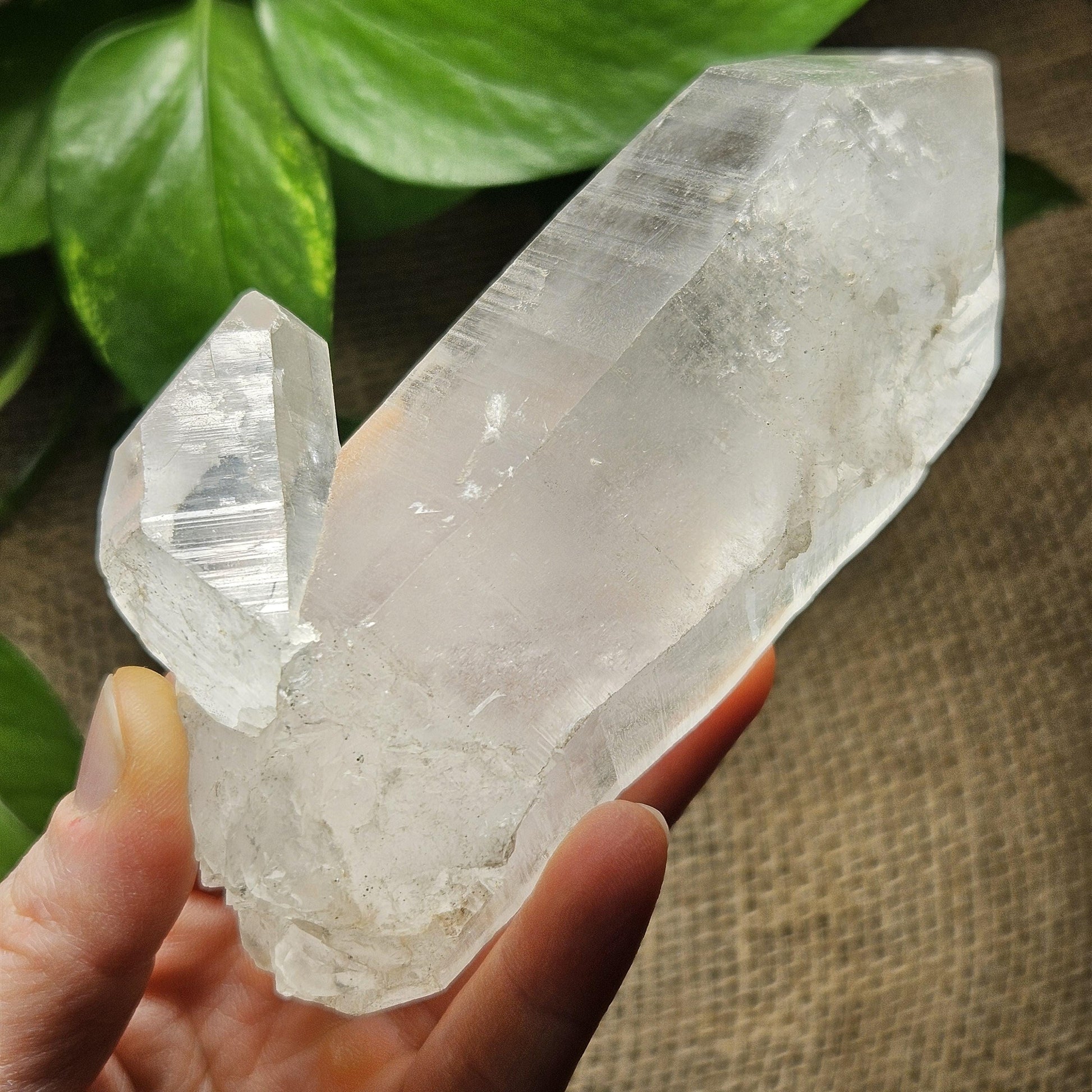 Lemurian Quartz Crystal (420g), Brazilian Quartz with Barcode Striations and Double Termination