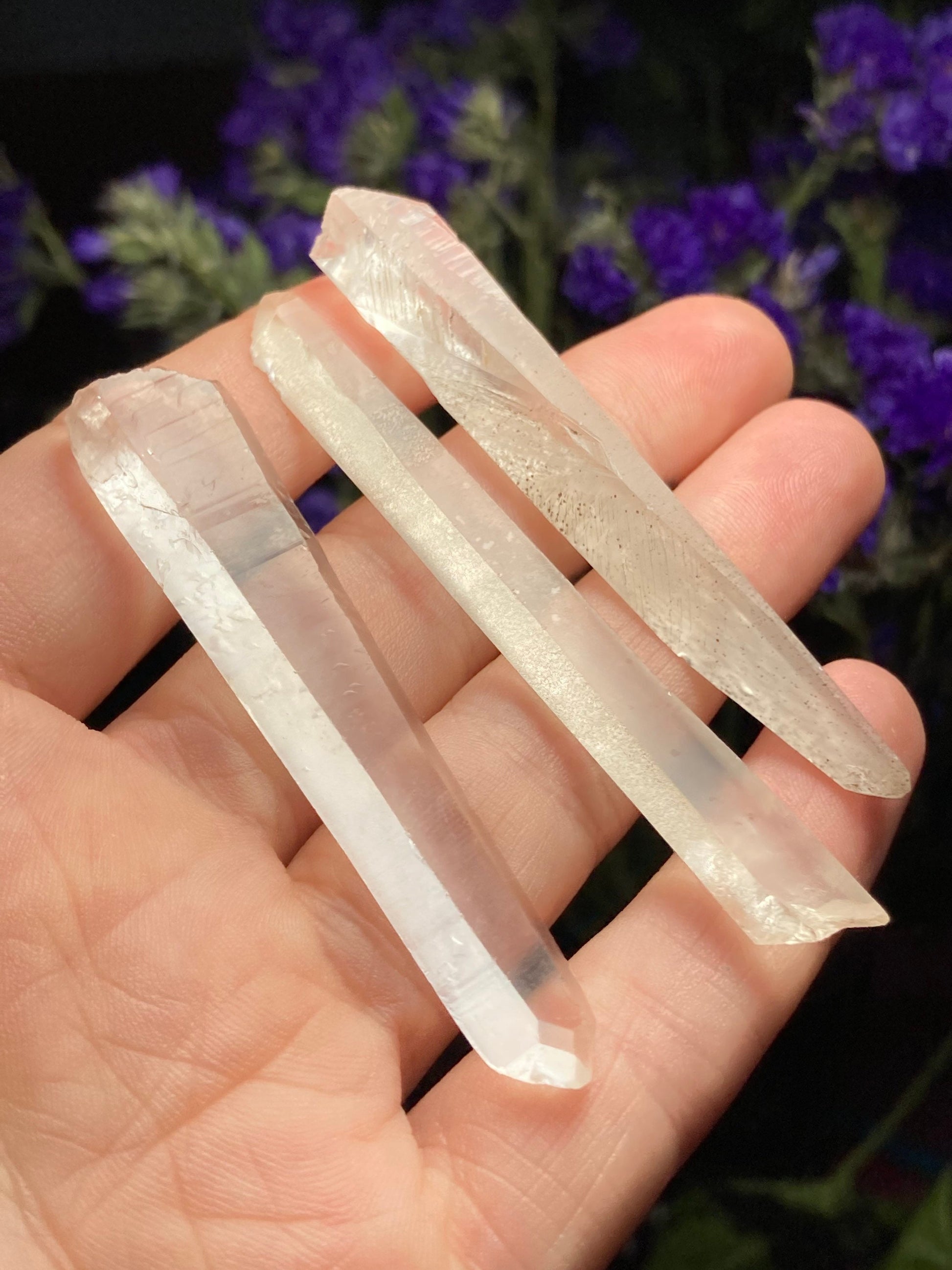 These Brazilian Lemurian Seed Quartz crystals display classic etchings and have beautiful clarity. These crystals have terminated points and may contain some light abrasions from the mining process.