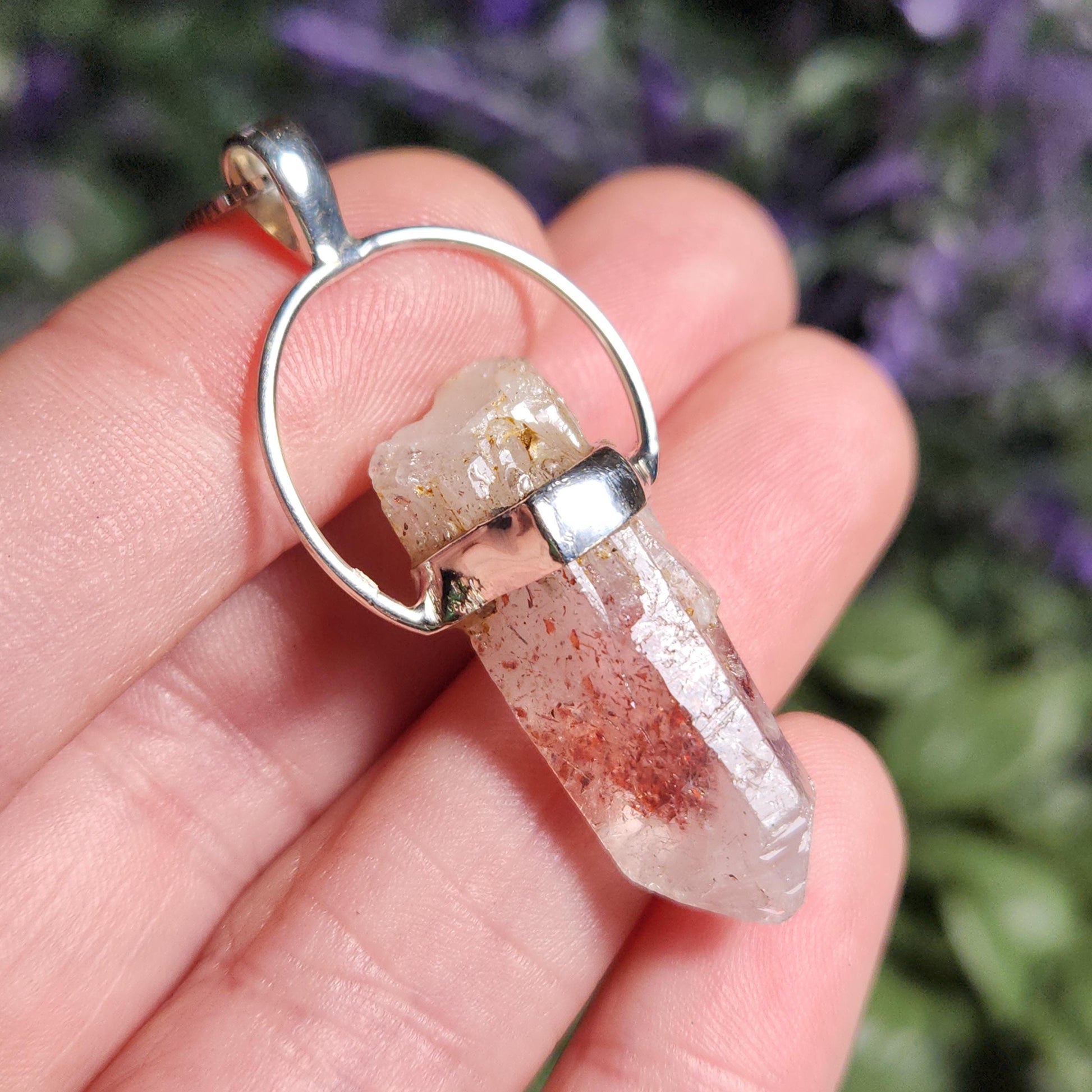 These Disco Fire Quartz crystals have a crisp translucence that showcase the Lepidocrocite and Hematite inclusions within. They have partial to full terminations and may contain abrasions on their raw surfaces. Each crystal has been custom created into a sturdy piece of jewelry using .925 Sterling Silver. Each pendant measures approximately 35mm by 15mm - these measurements are meant to give a general idea of size; the actual dimensions of the pendant you receive may vary slightly. The silver chain used in the photos is to help envision how this pendant will look while adorned but is not included in the listing.