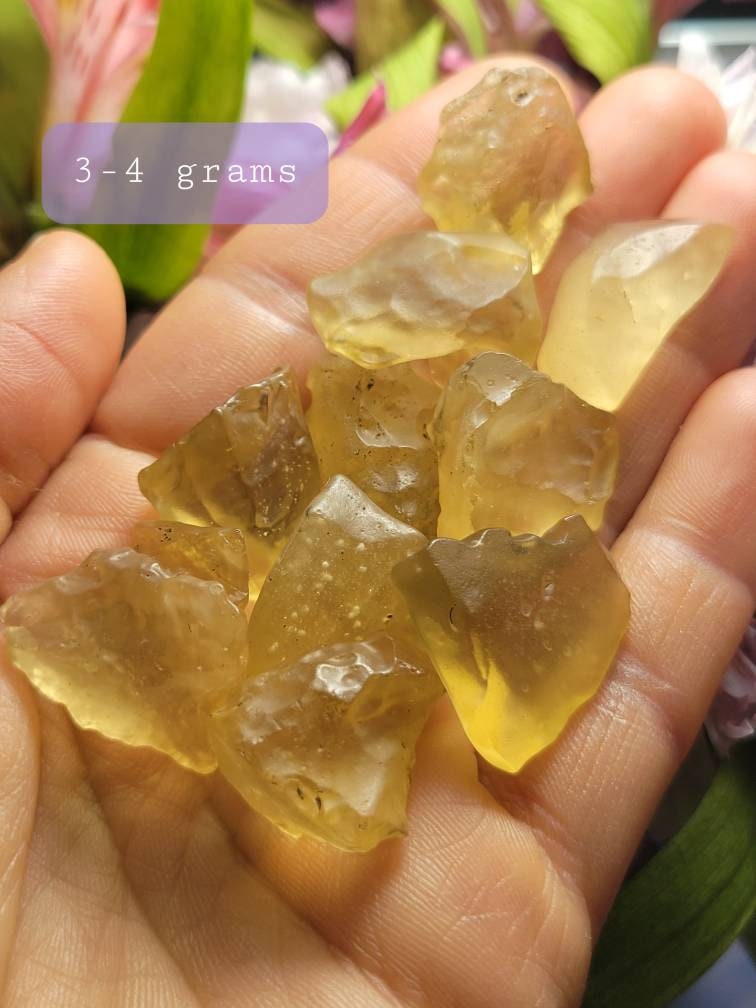 These Libyan Desert Glass tektites have natural pitted terminated surfaces. I will intuitively select a tektite by the gram weight and quality of your choosing from the menu above. These fantastic specimens range in size and shape and are each unique and individual pieces. The unique range of characteristics in the mineral world are to be celebrated!