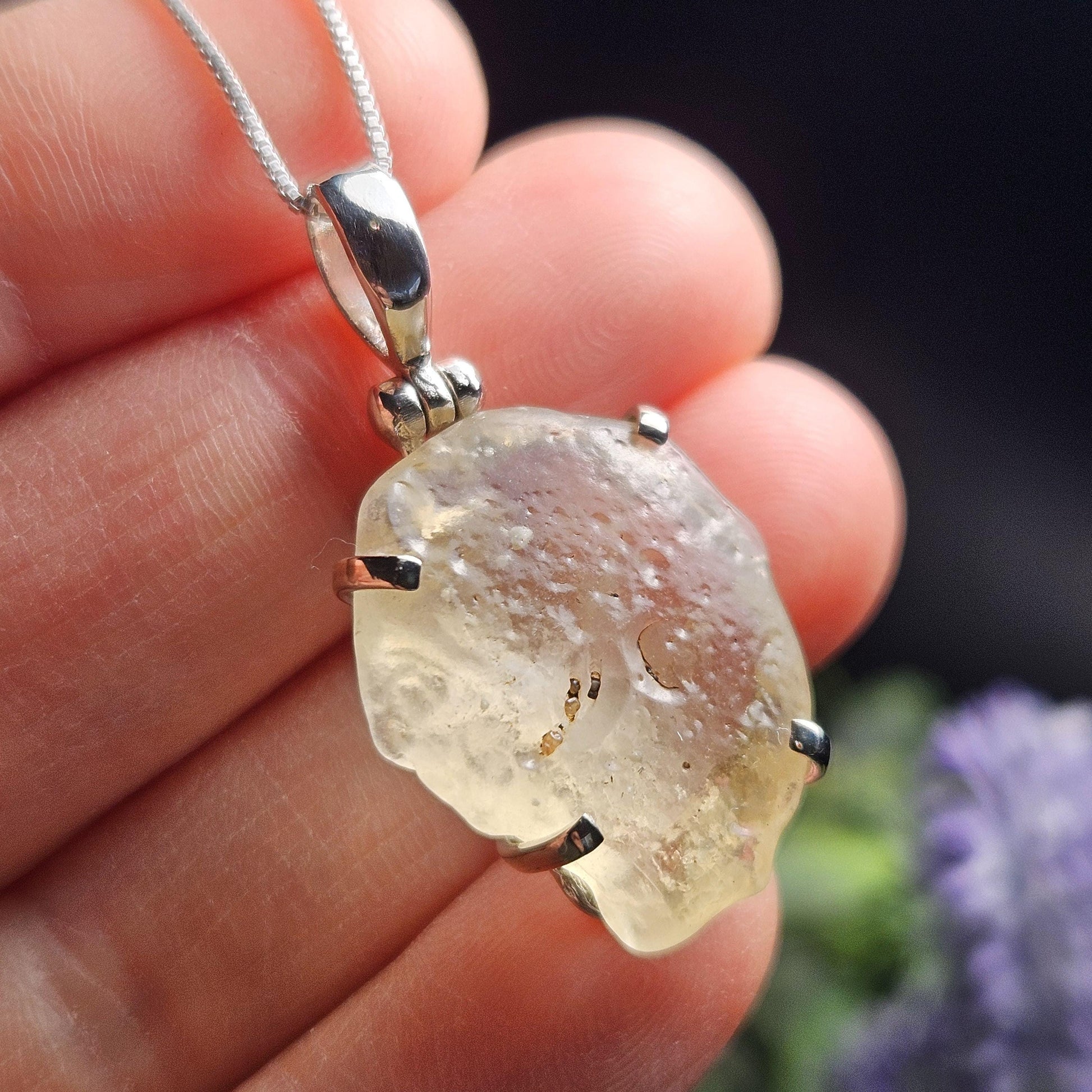 Libyan Desert Glass Crystal Pendant, Libyan Desert Glass Sterling Silver Necklace