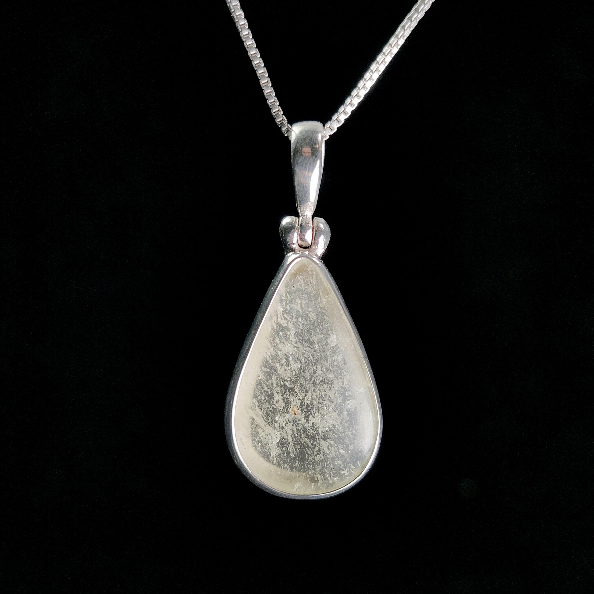 This polished Libyan Desert Glass cabochon displays a light golden coloring with a cloudy translucence. This tektite has been custom created into a sturdy piece of jewelry using .925 Sterling Silver. This pendant measures approximately 34mm by 14mm. The silver chain used in the photos is to help envision how this pendant will look while adorned but is not included in the listing.