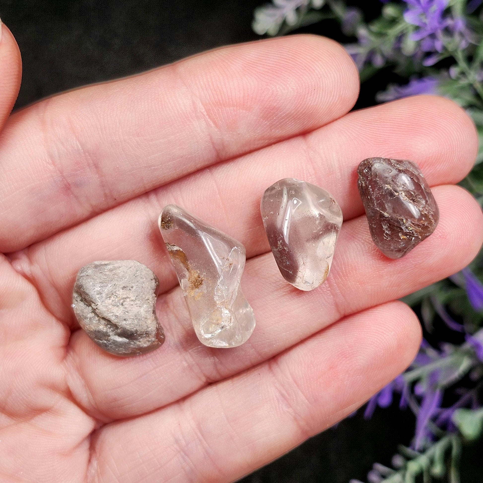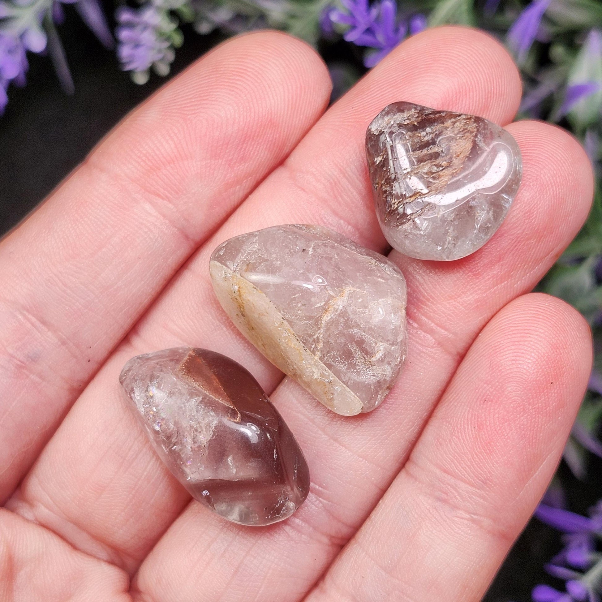 These polished Lithium Quartz crystals showcase a range of translucence to opaqueness, with a possible hint of calming mauve coloring. Each piece has a unique look, with different amounts of inclusions from excellent clarity to completely saturated.