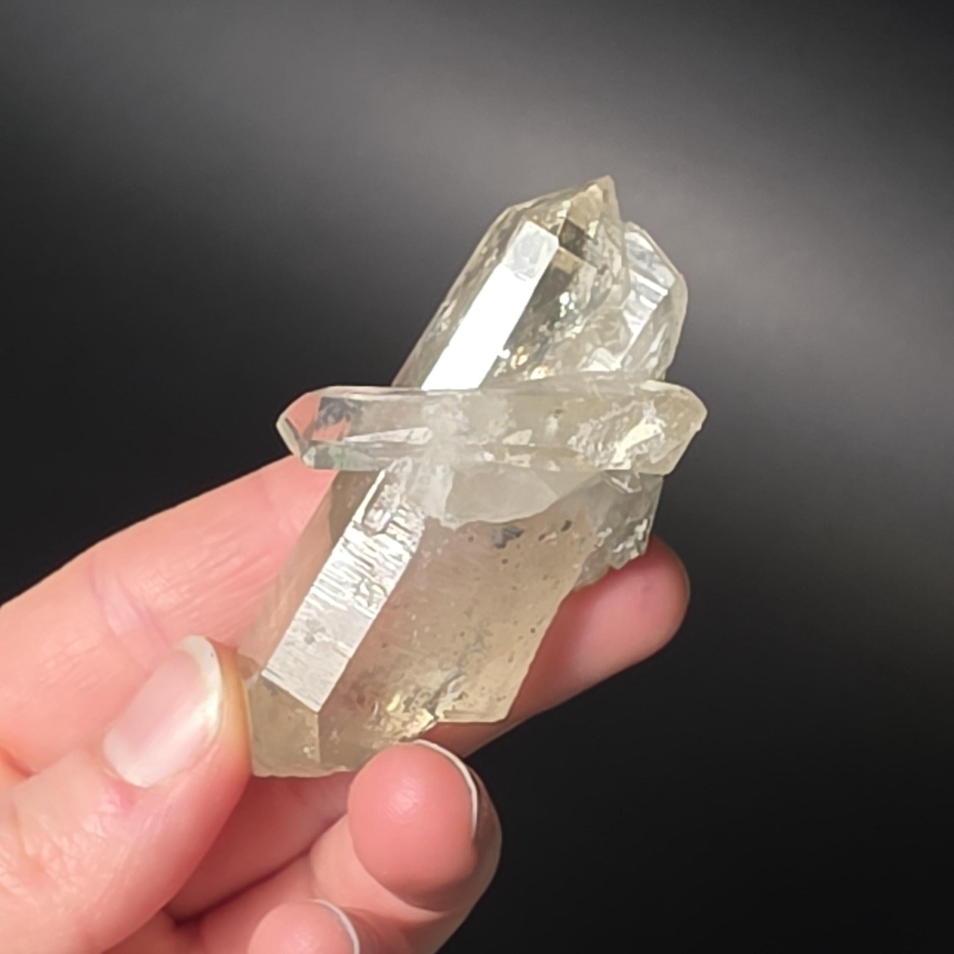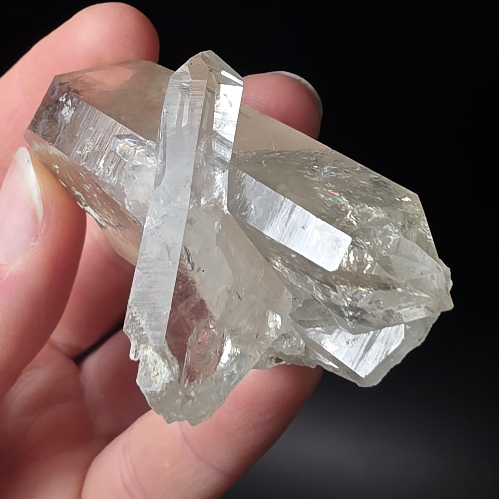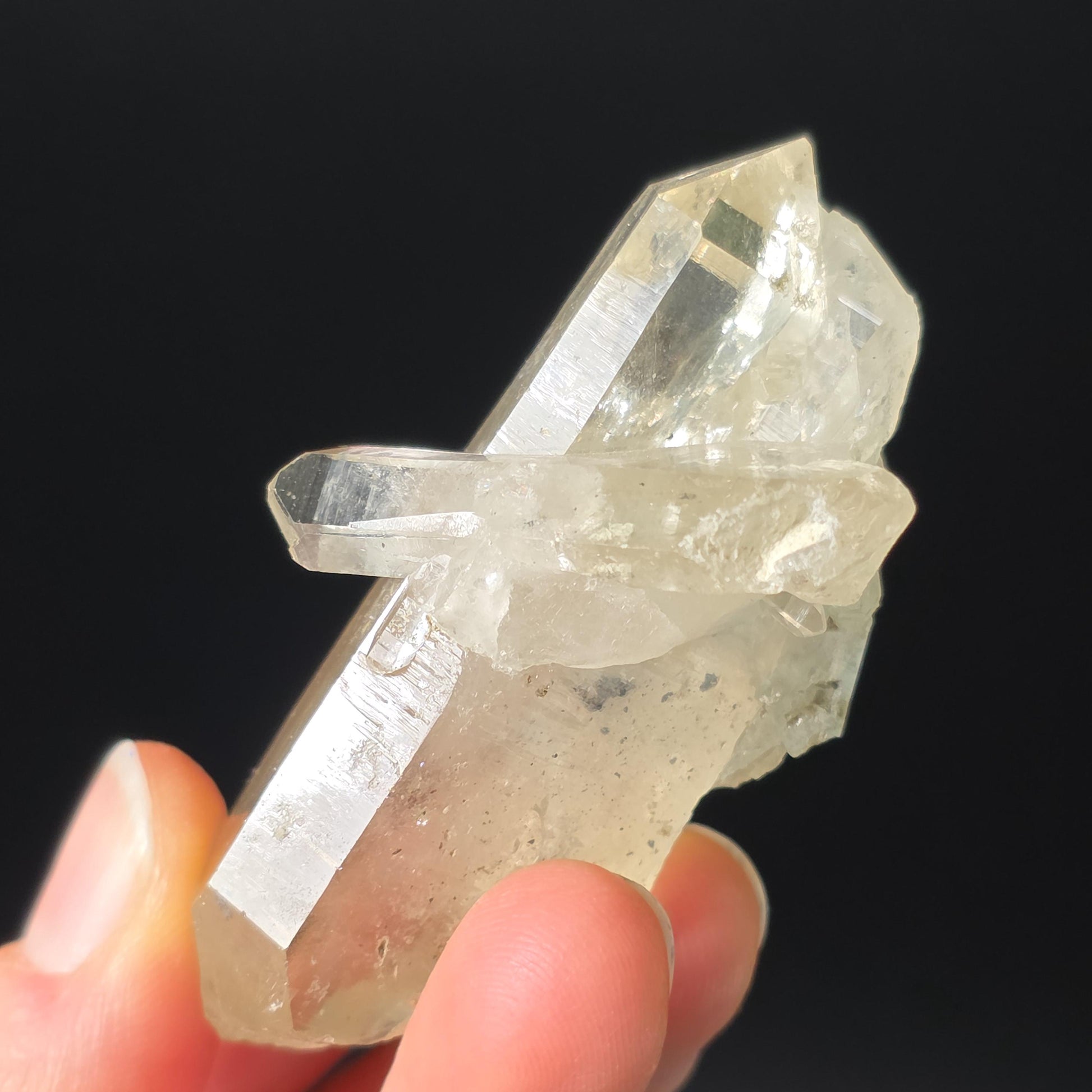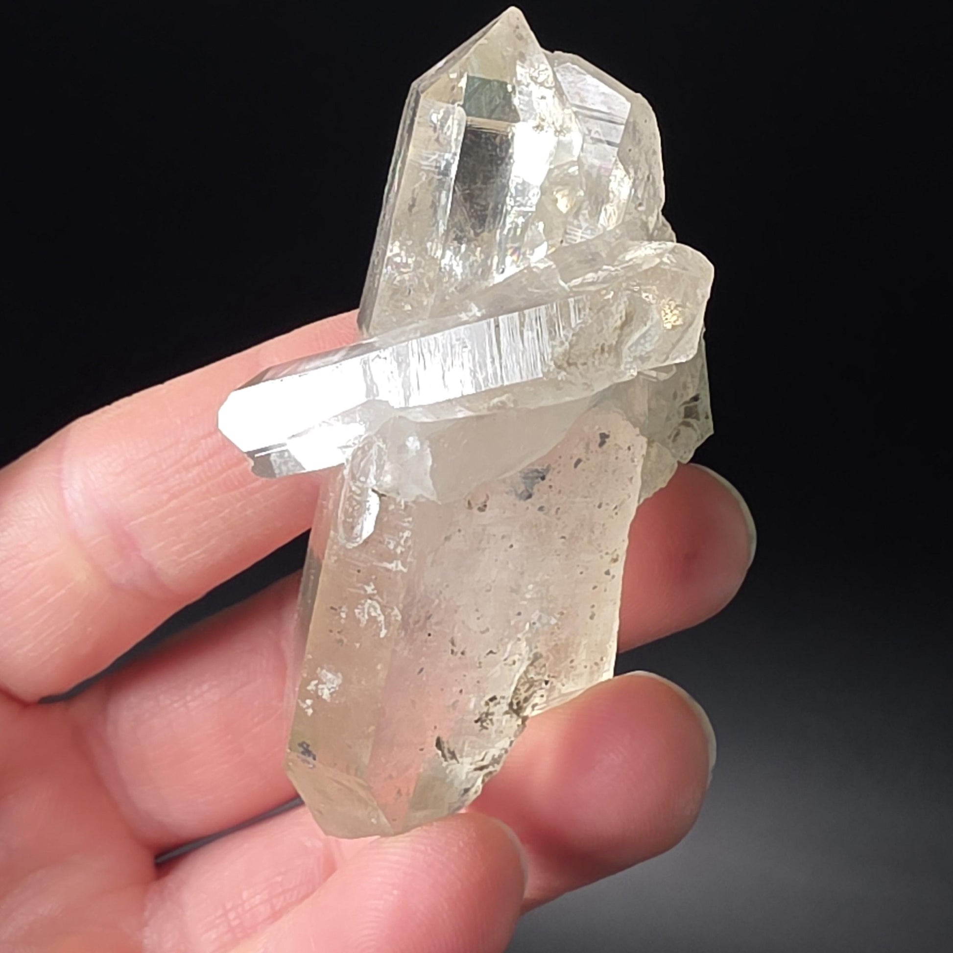 This raw Faden Quartz from the base of the Himalayan Mountain range in Pakistan displays a cloudy translucence and a unique bridge inclusion. It is well terminated with some abrasions at the side of attachment. This specimen measures 65mm by 30mm by 30mm and weighs 59 grams.