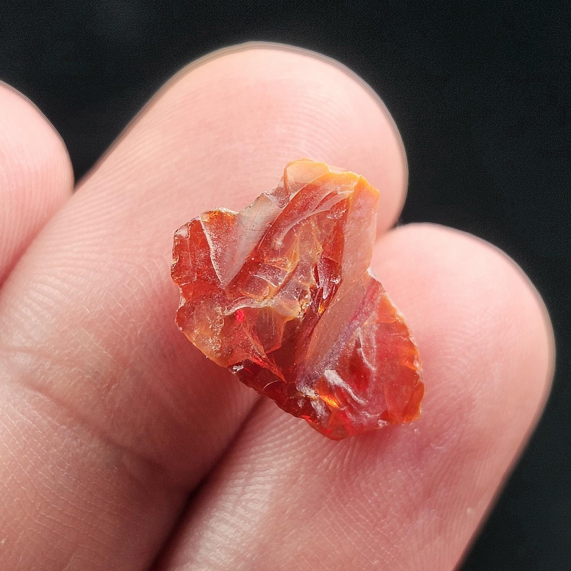 These high graded, old stock Fire Agate stones from Mexico were hand-selected from a small collector's lot. They are in their raw form, exhibiting a range of fiery oranges and reds with possible hints of flashes within their depths. They have freeform shapes, each one completely unique.