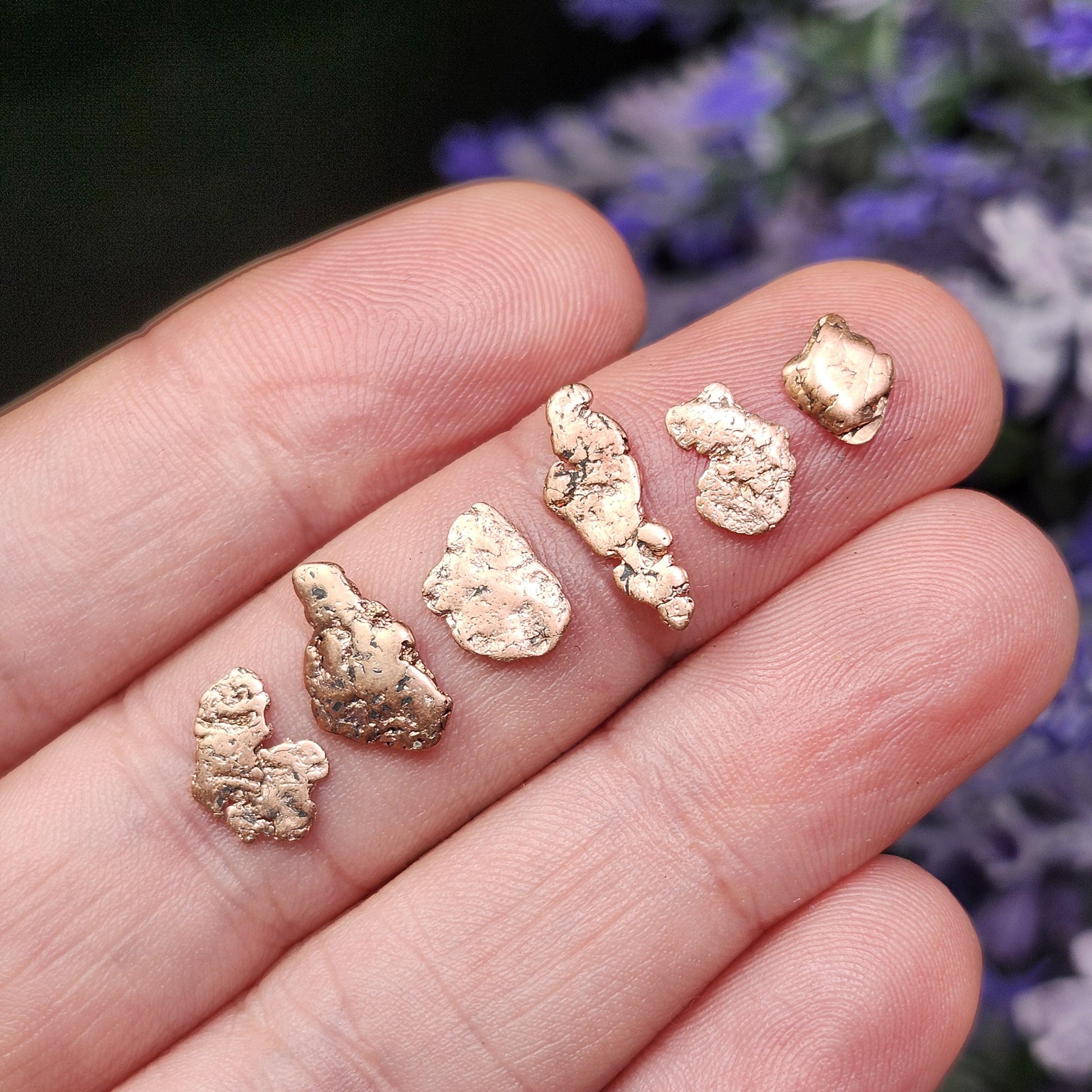 These raw Copper nuggets from Michigan have freeform, flattened shapes and exhibit classic coloring. Each specimen measures 5mm and up and the lot weighs 5 grams in total.