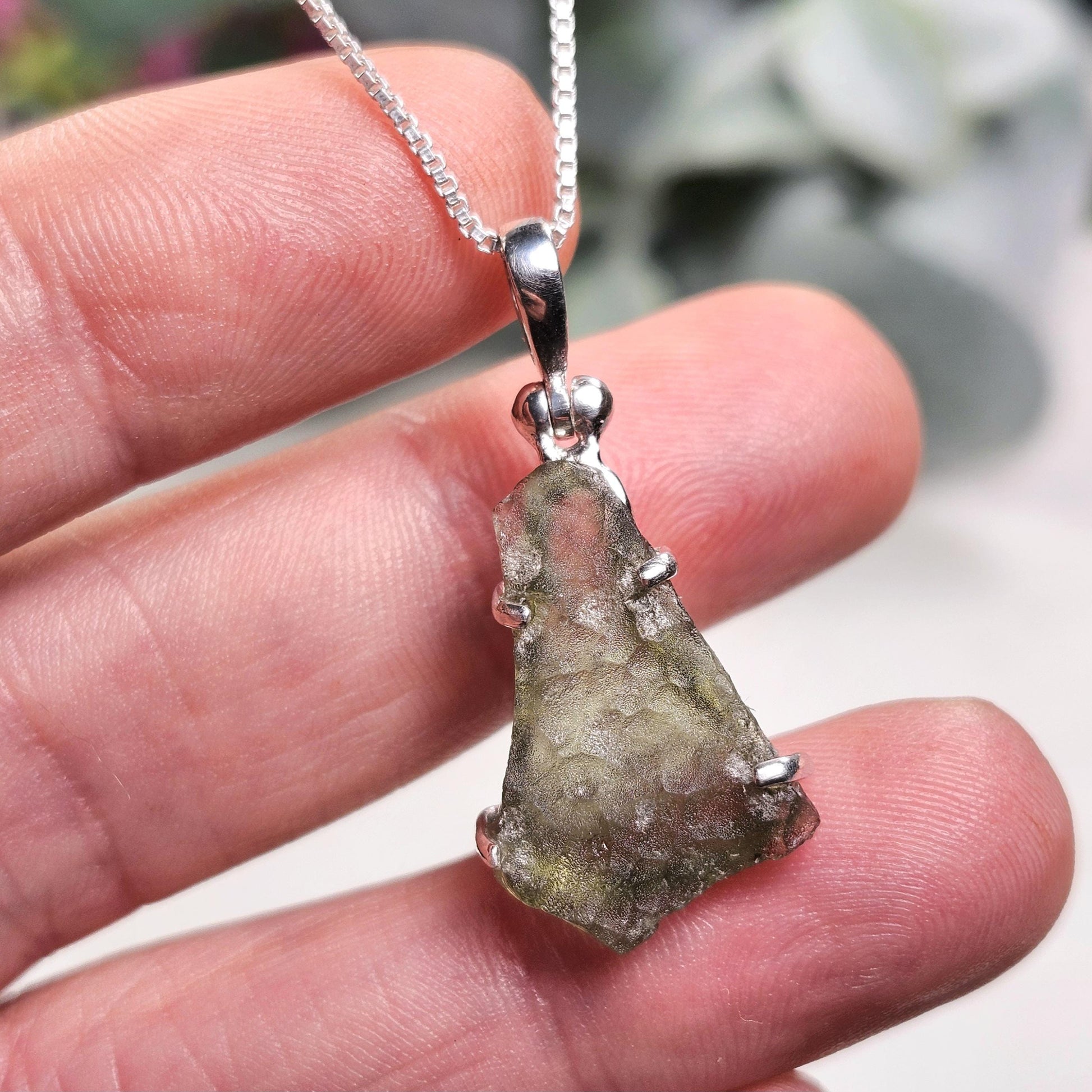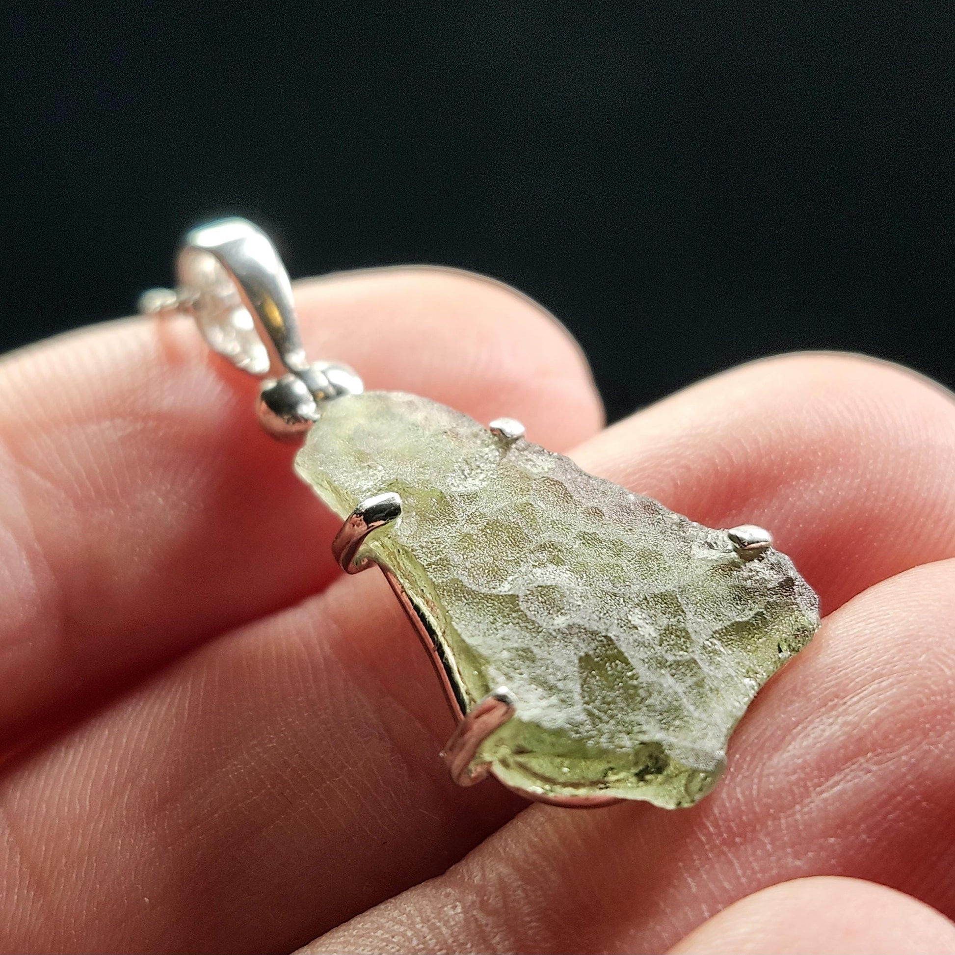 Moldavite Pendant, Authentic Sterling Silver Moldavite Necklace, Genuine Moldavite